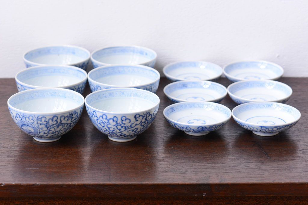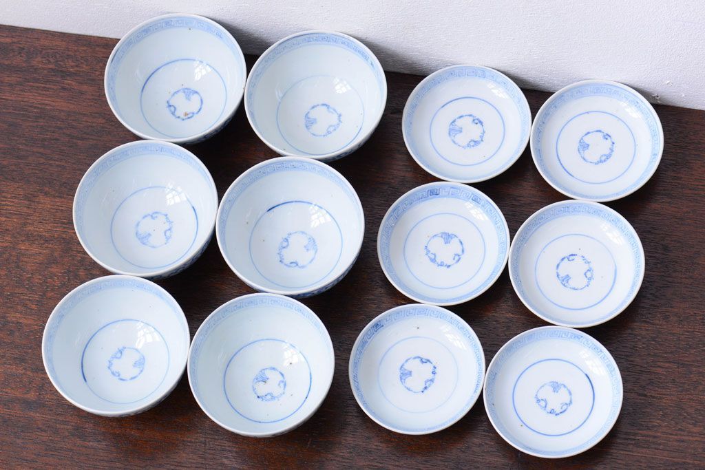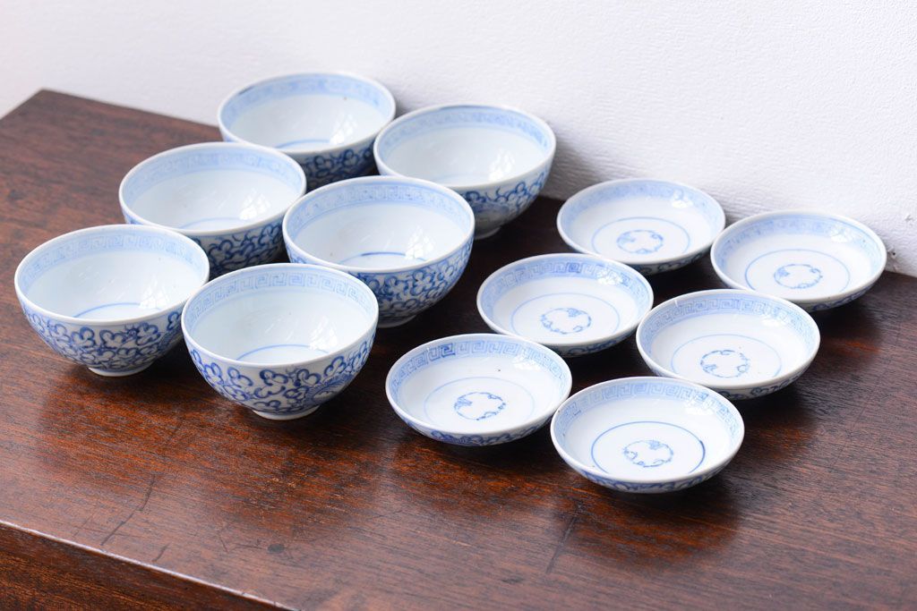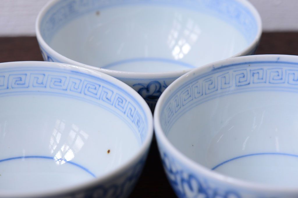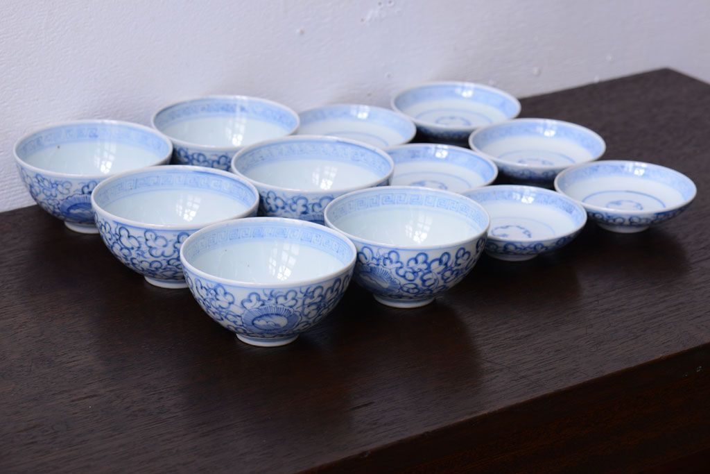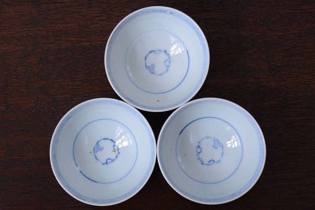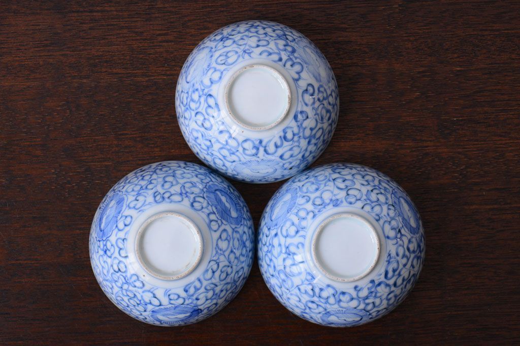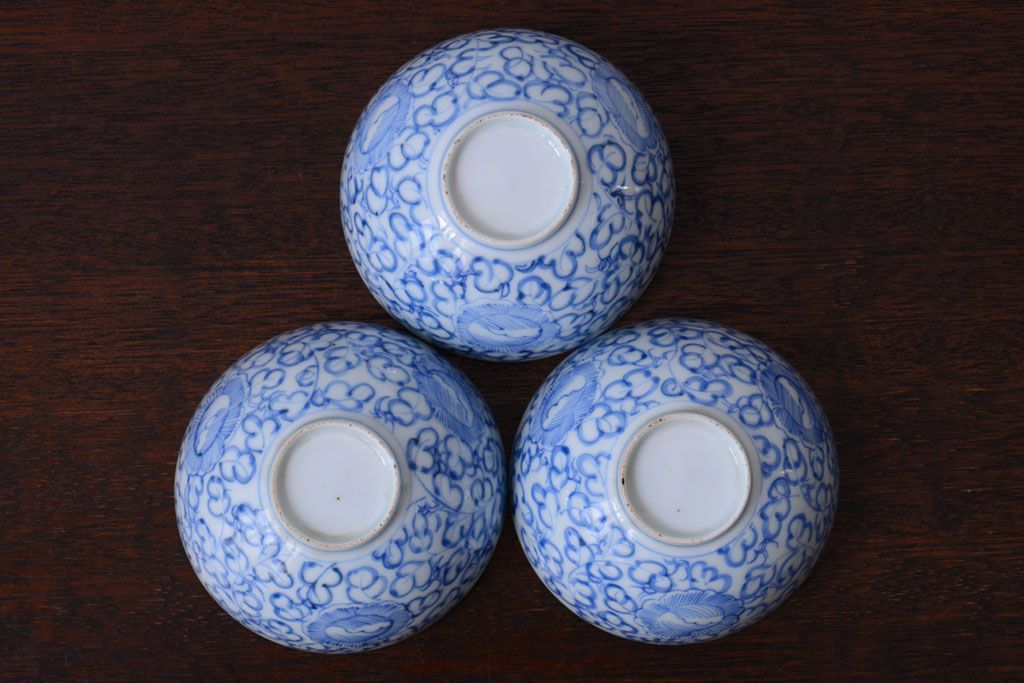 アンティーク雑貨 古民具・骨董 幕末〜明治 綿描き蓋茶碗6客(伊万里)