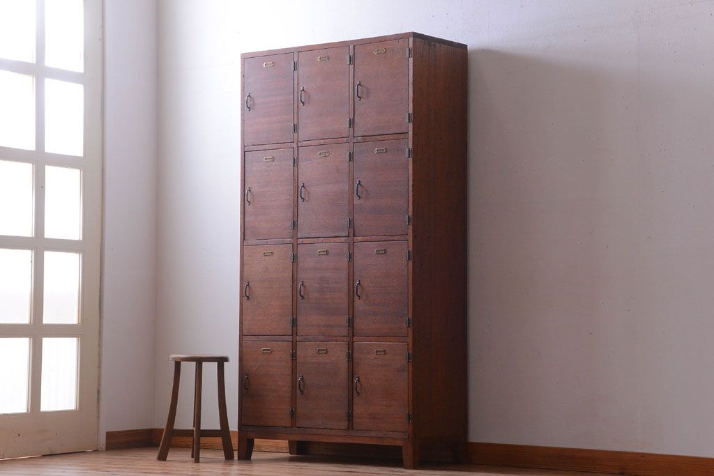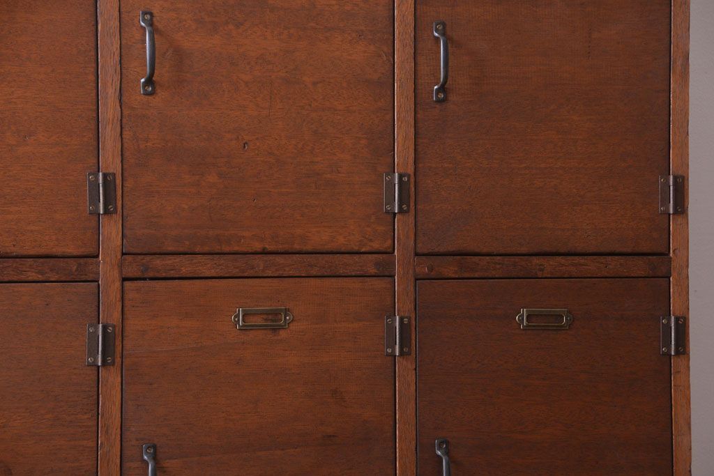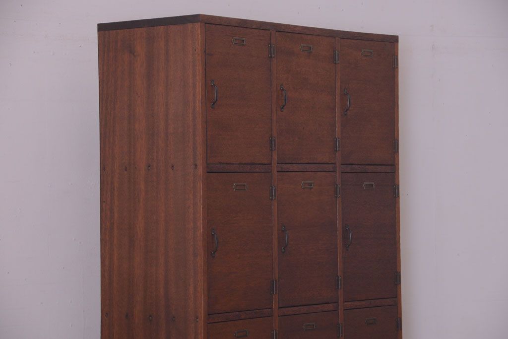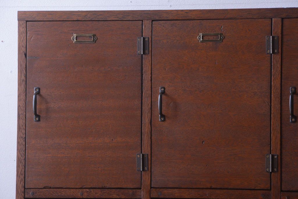 昭和レトロ 古い木製のネームプレート付き縦型ロッカーです。