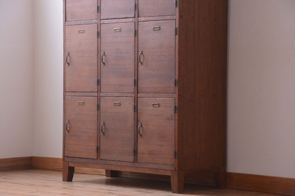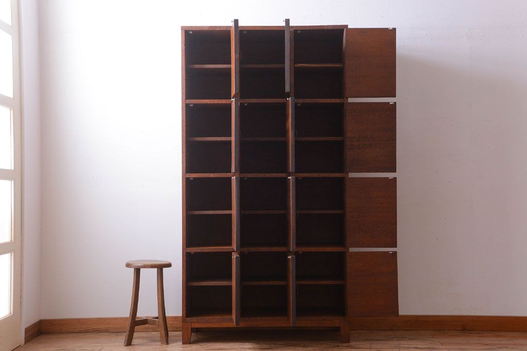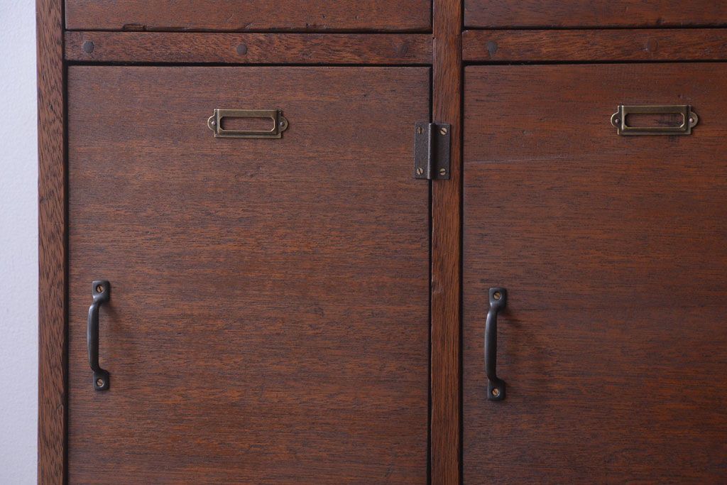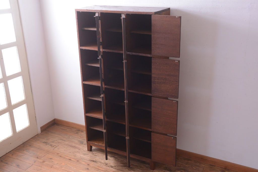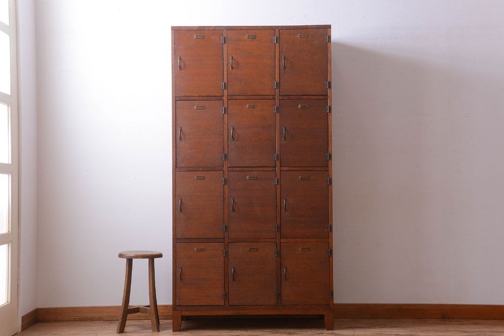 昭和レトロ 古い木製のネームプレート付き縦型ロッカーです。