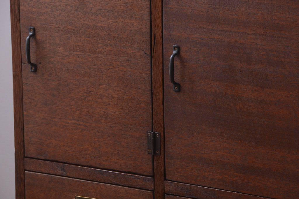 レトロ家具 昭和レトロ 古い木製のネームプレート付き縦型ロッカー
