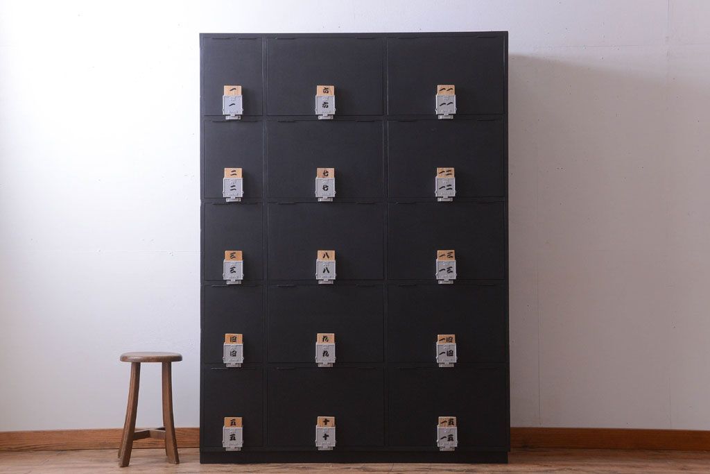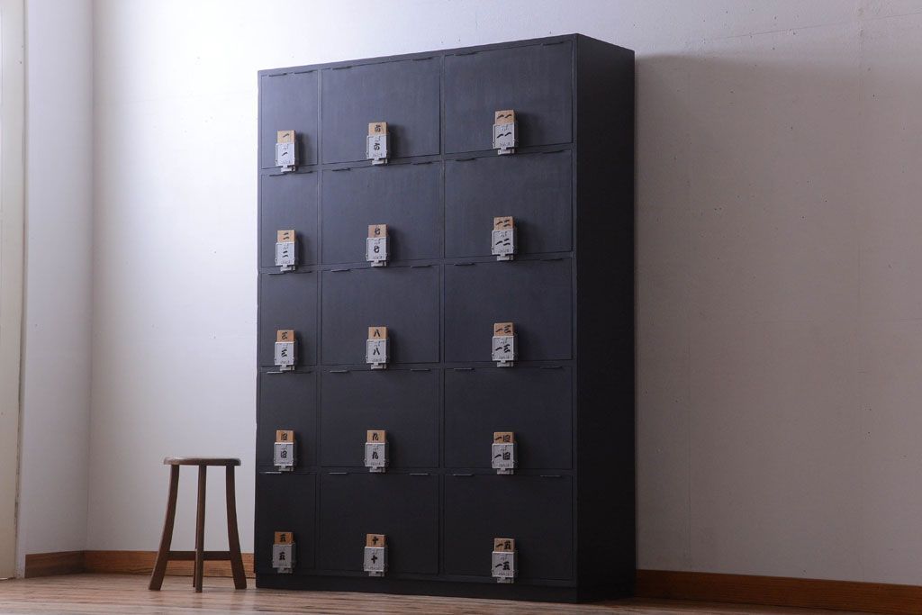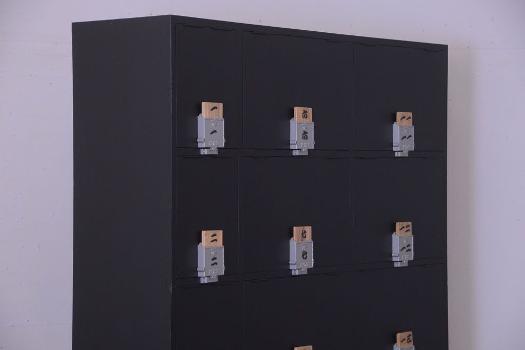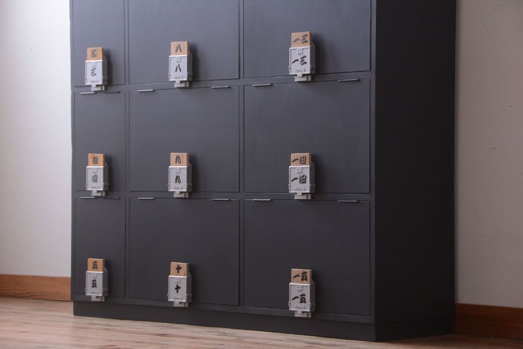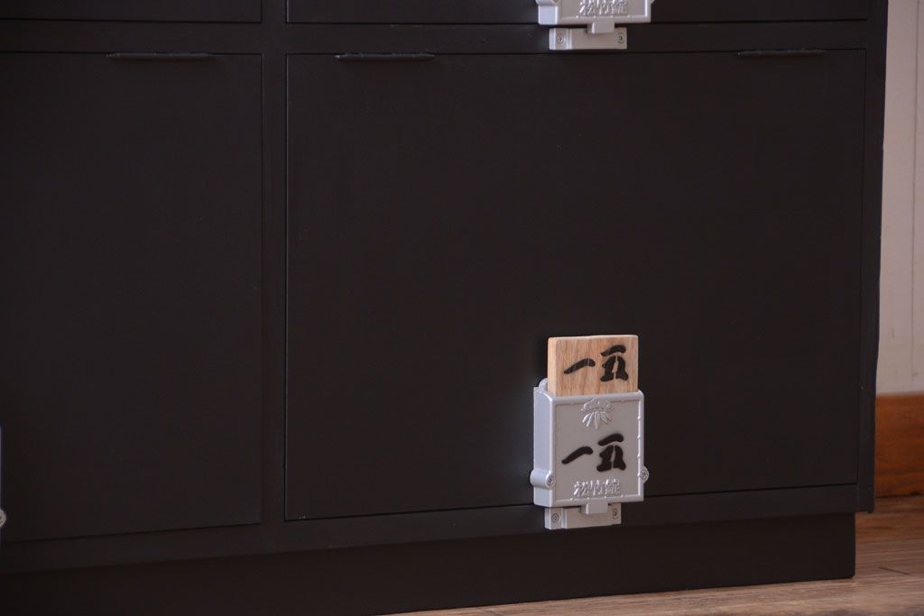 アンティーク家具 アンティーク シックなブラックペイントの鍵付きロッカー