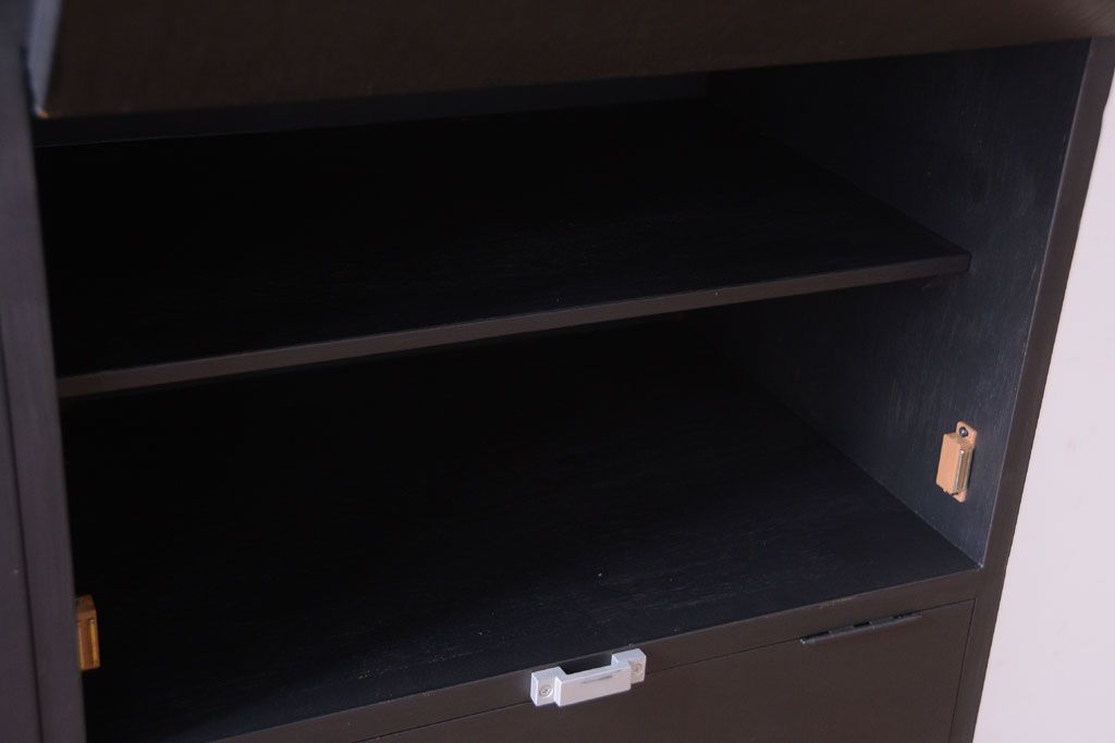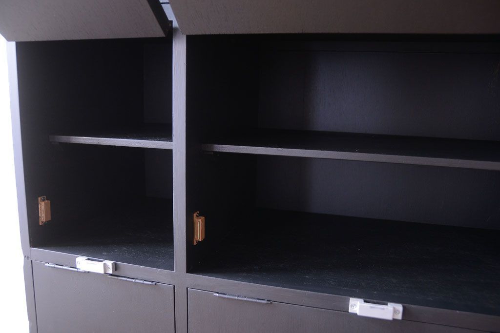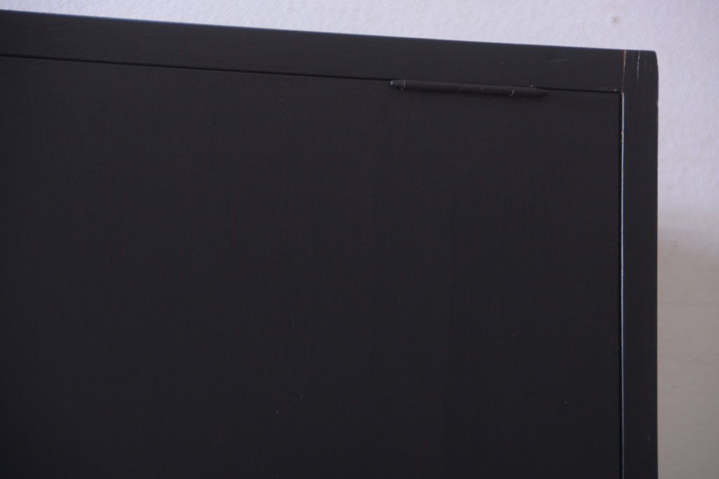 アンティーク シックなブラックペイントの鍵付き下駄箱です。