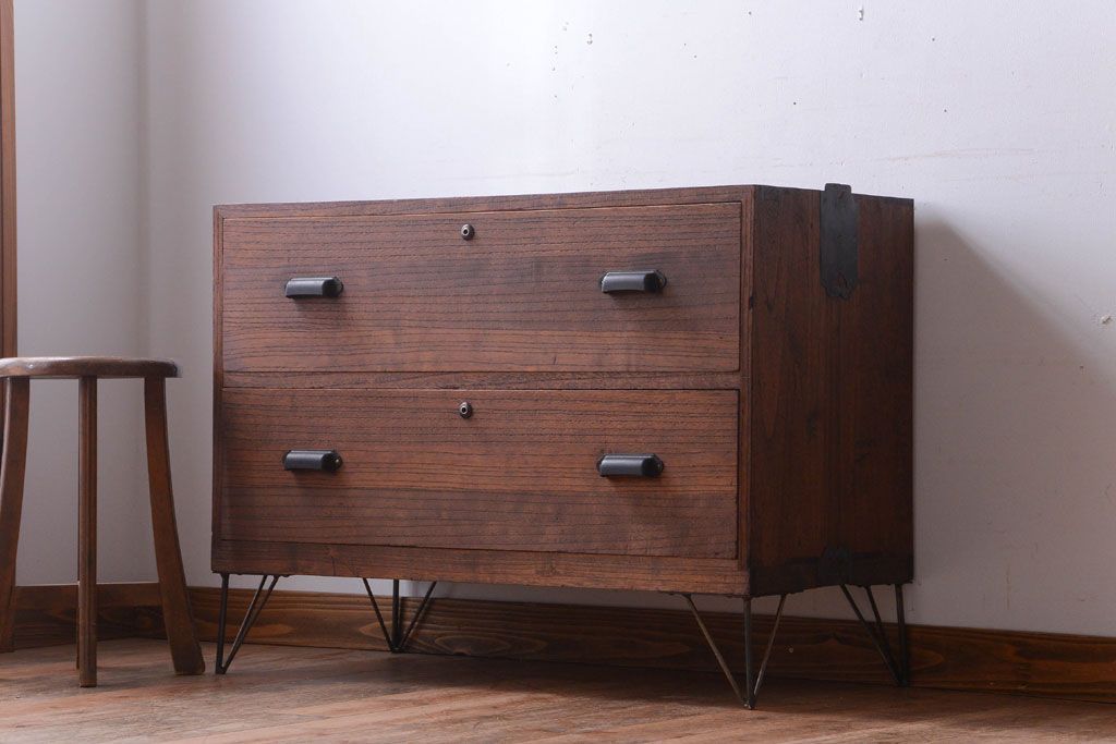 アンティーク家具 和製アンティーク 桐材製!鉄脚付き衣装箪笥ローボード