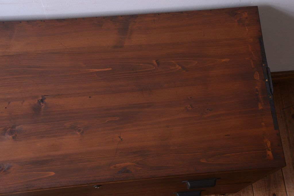 ラフジュ工房> キャビネット・戸棚> テレビ台・ローボード > アンティーク家具 和製アンティーク 桐材製!鉄脚付き衣装箪笥ローボード
