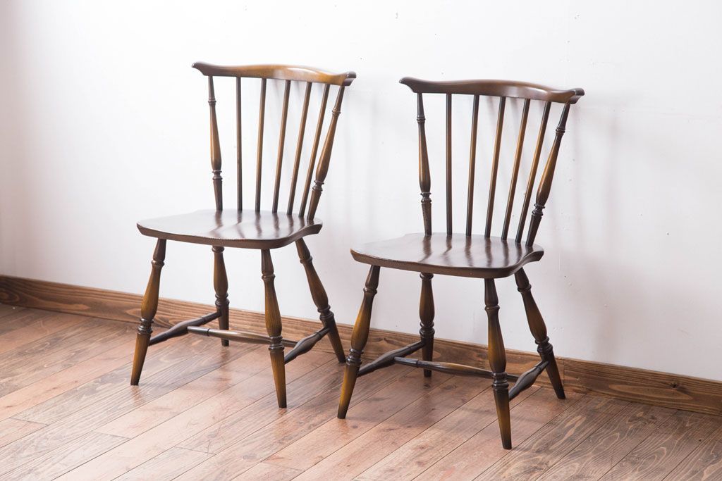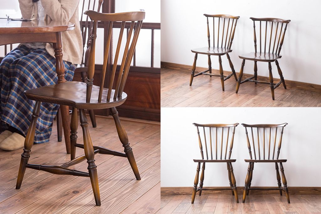 アンティーク家具 イギリスアンティーク アーコール スティックバックチェア2脚セット