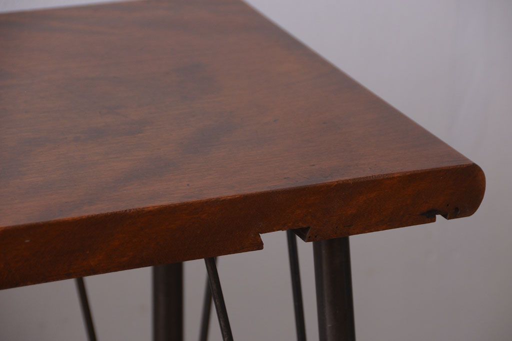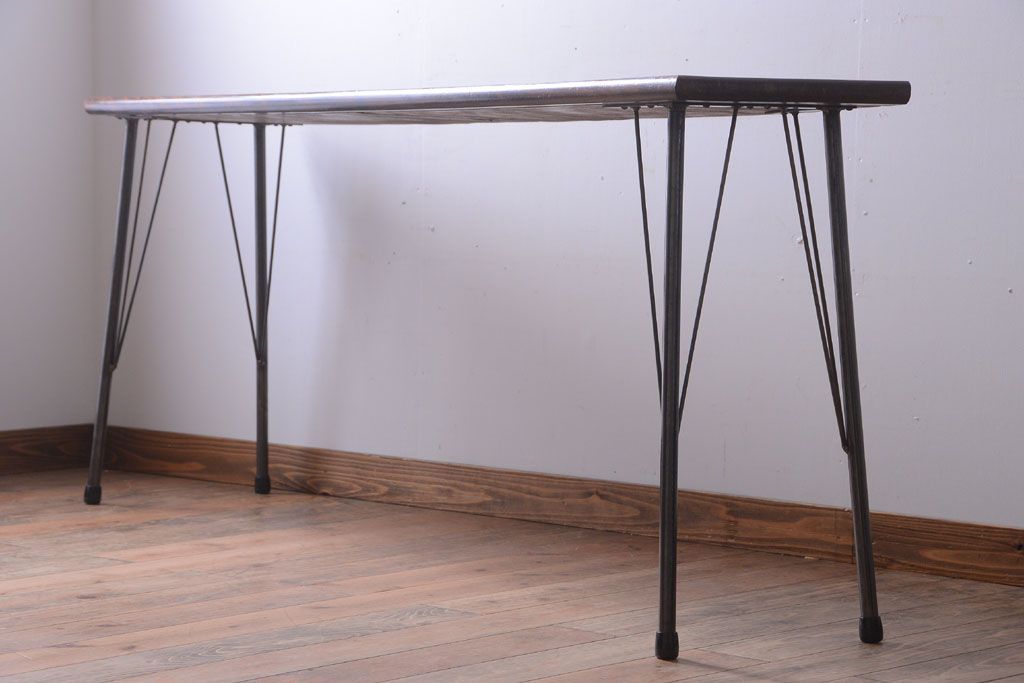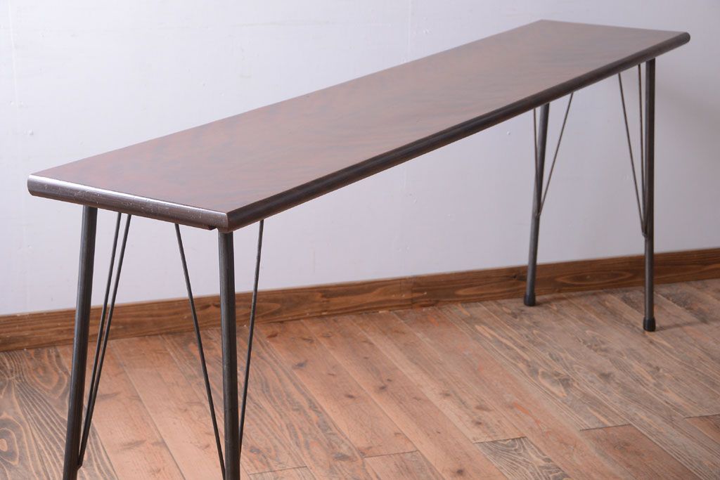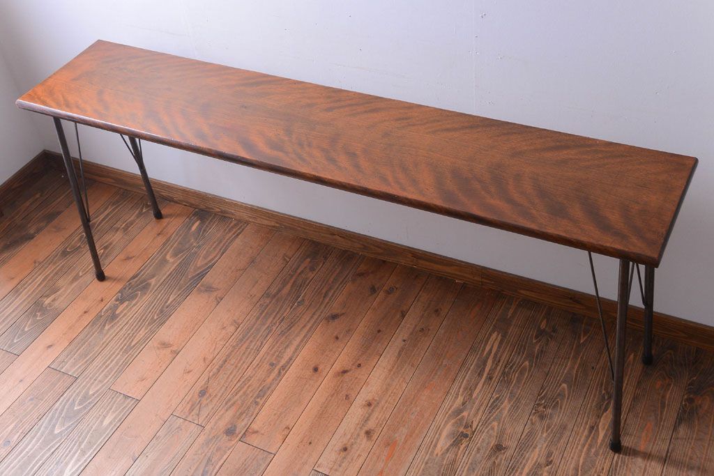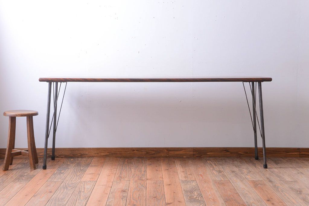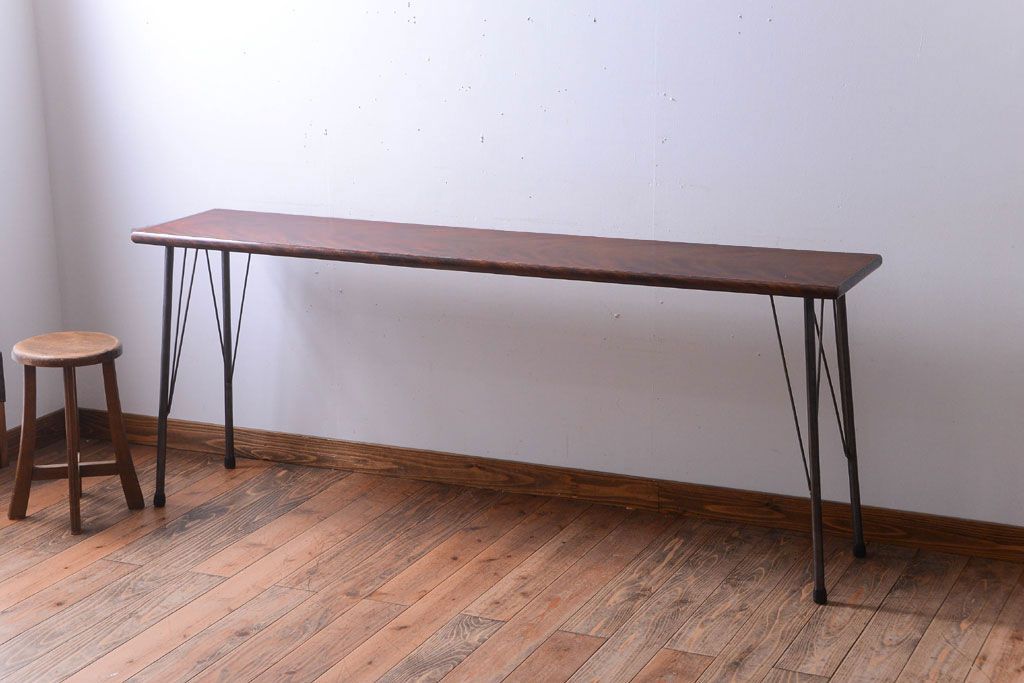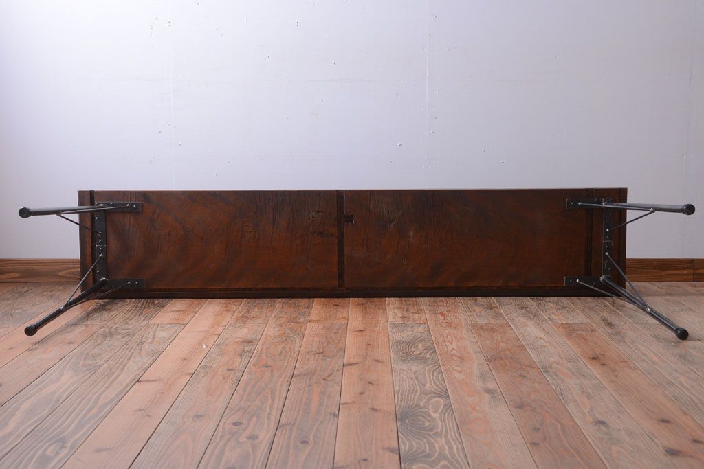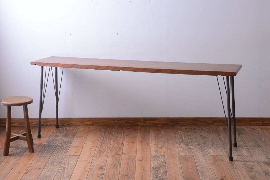 アンティーク家具 アンティーク 天板桜材一枚板!横長鉄脚テーブル