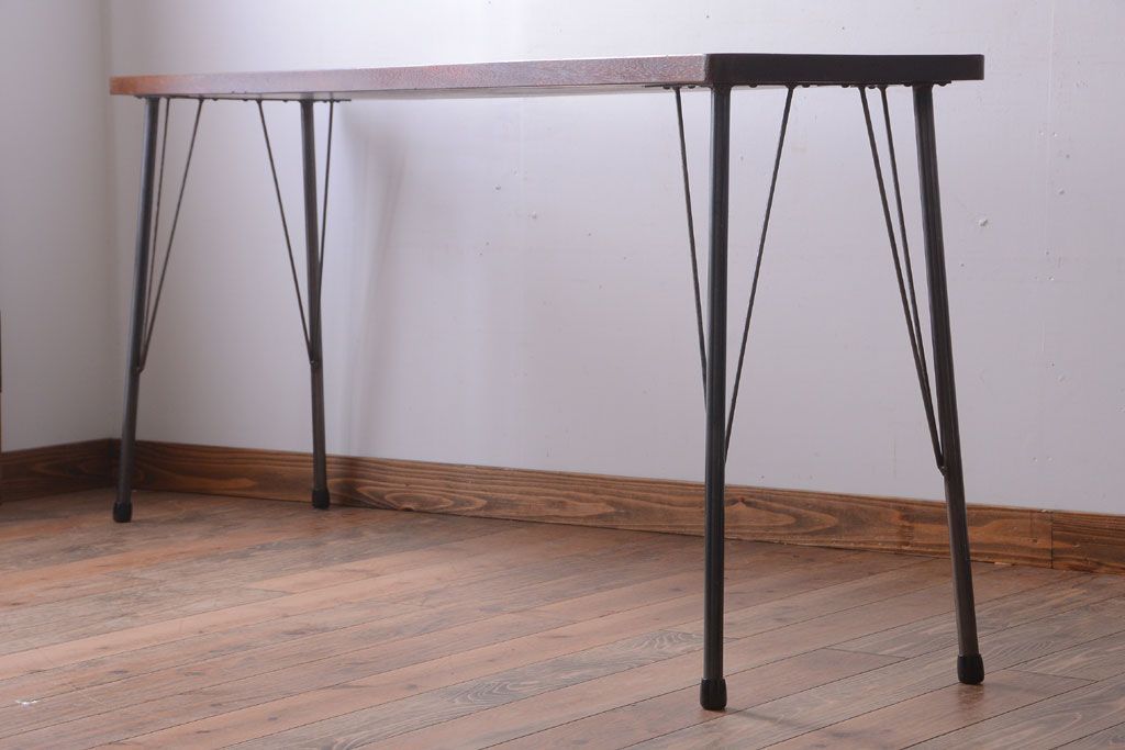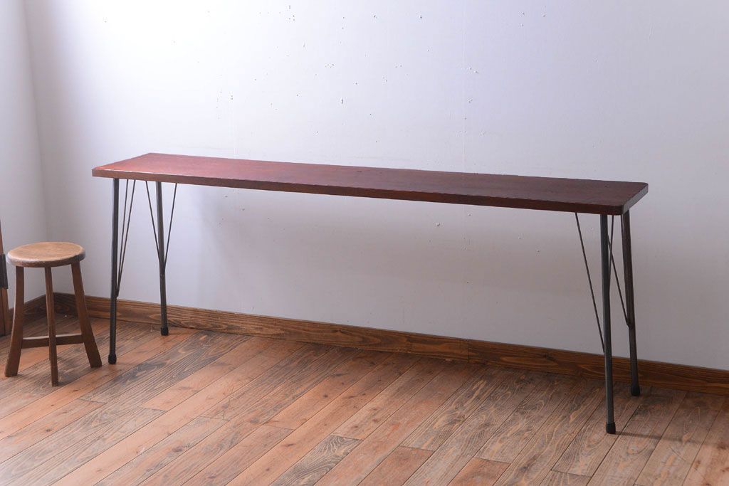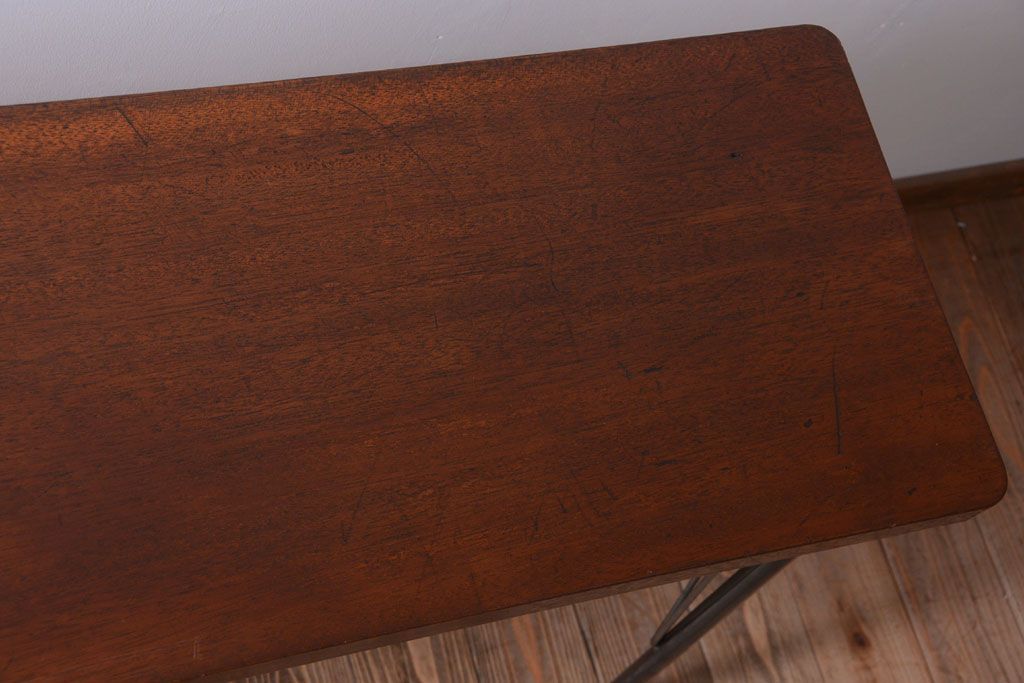 アンティーク家具 アンティーク 天板一枚板!横長鉄脚テーブル(1)