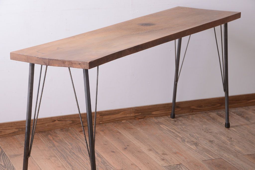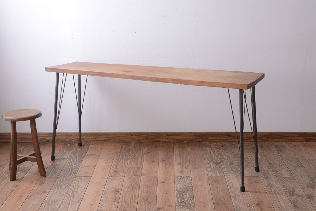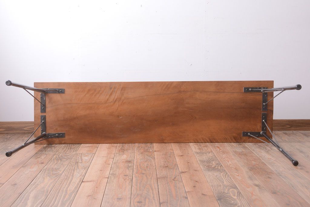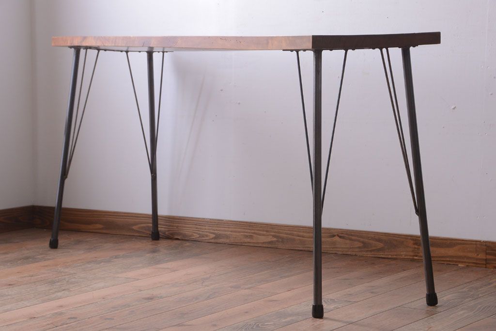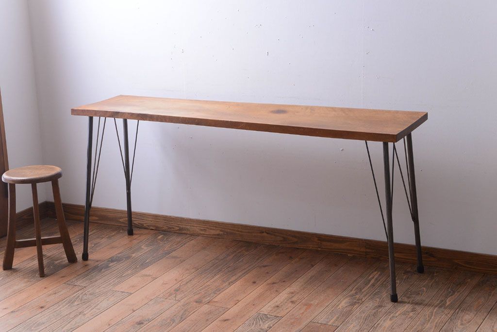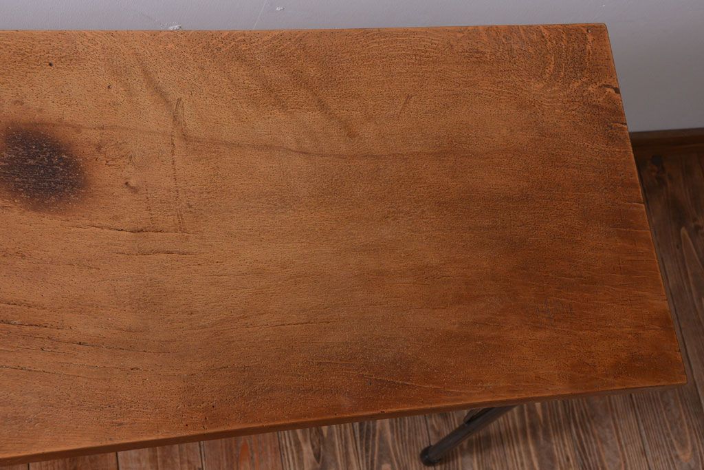アンティーク家具 アンティーク 天板一枚板!横長鉄脚テーブル(2)
