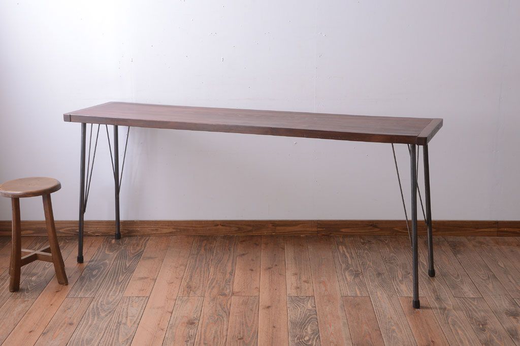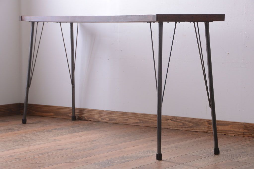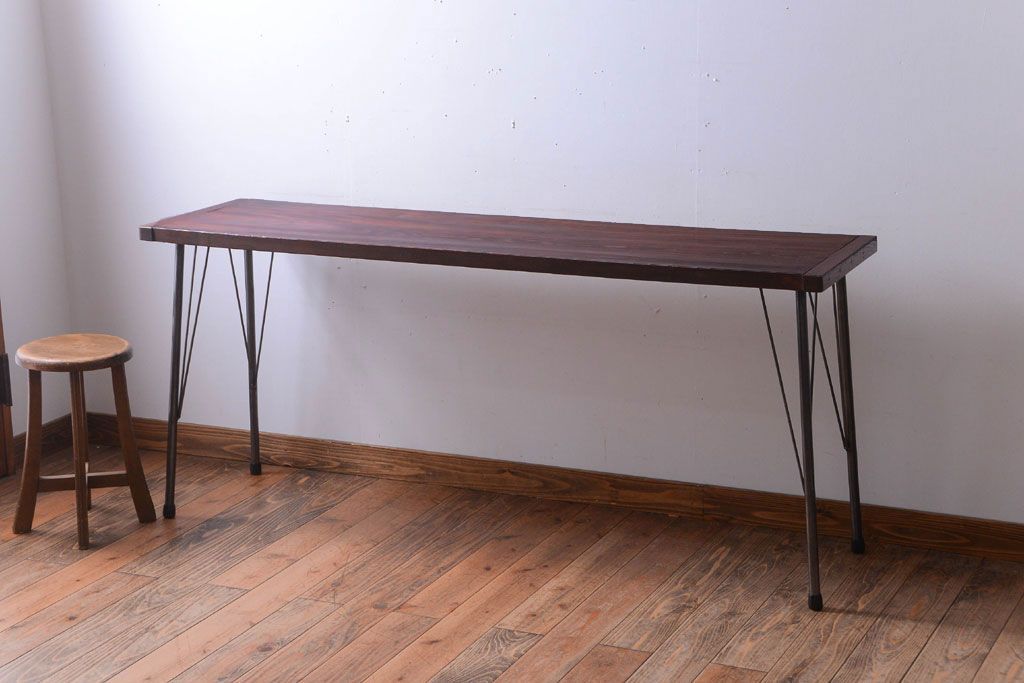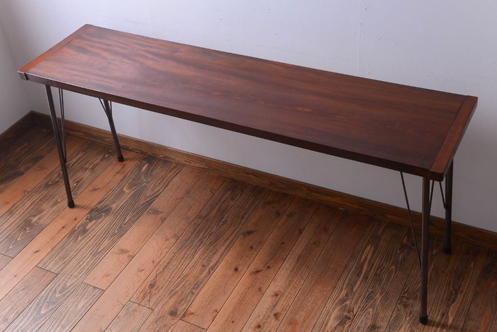アンティーク家具 アンティーク 天板一枚板!横長鉄脚テーブル(3)