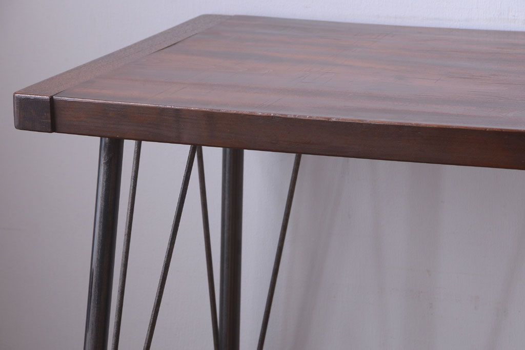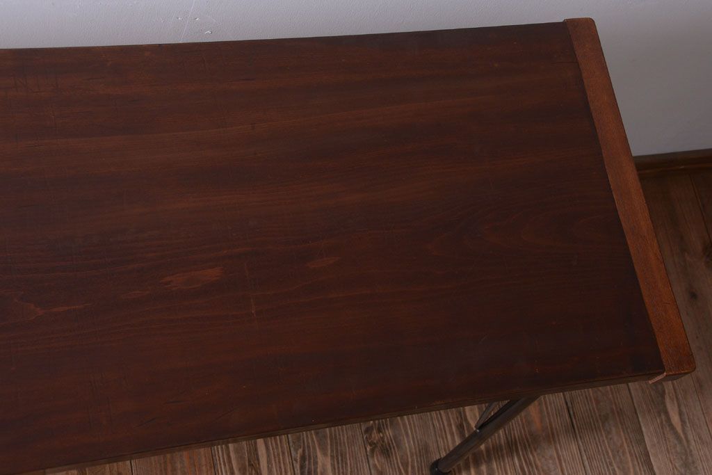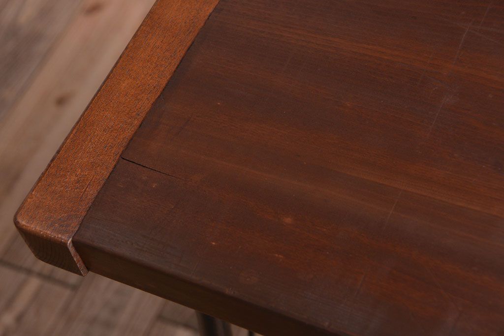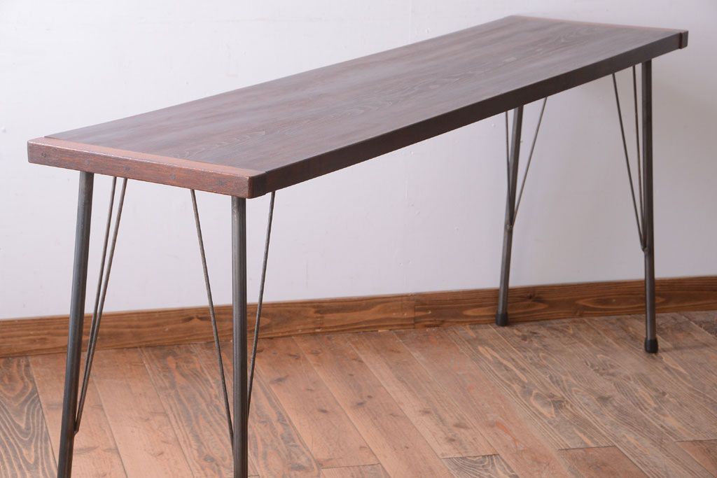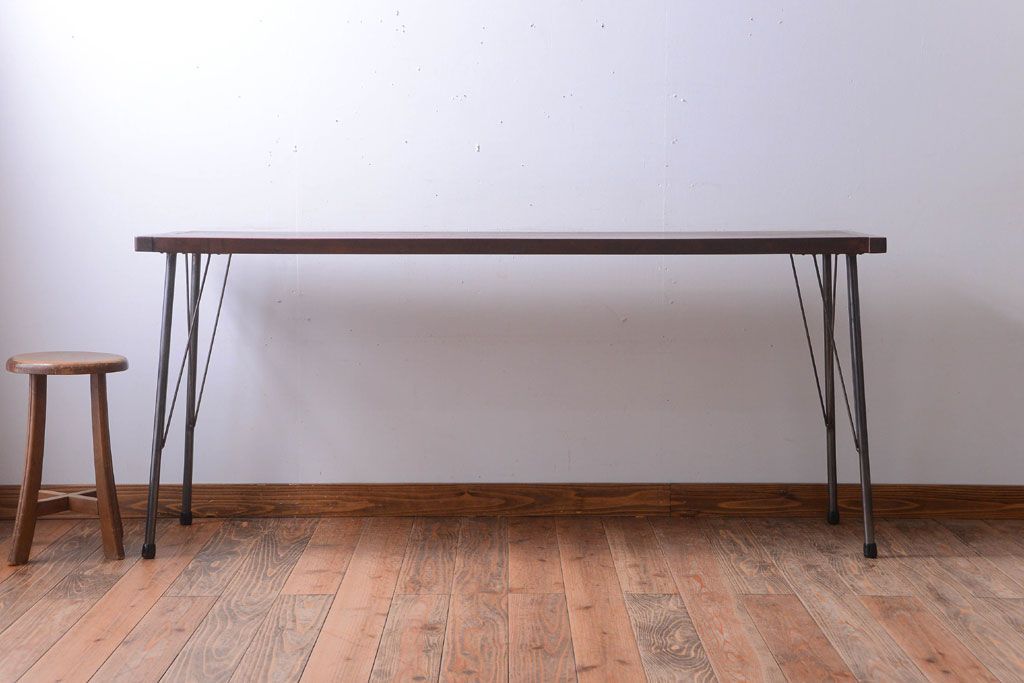 アンティーク家具 アンティーク 天板一枚板!横長鉄脚テーブル(3)
