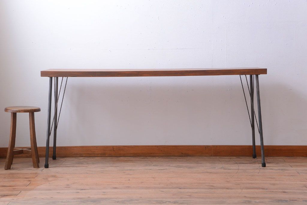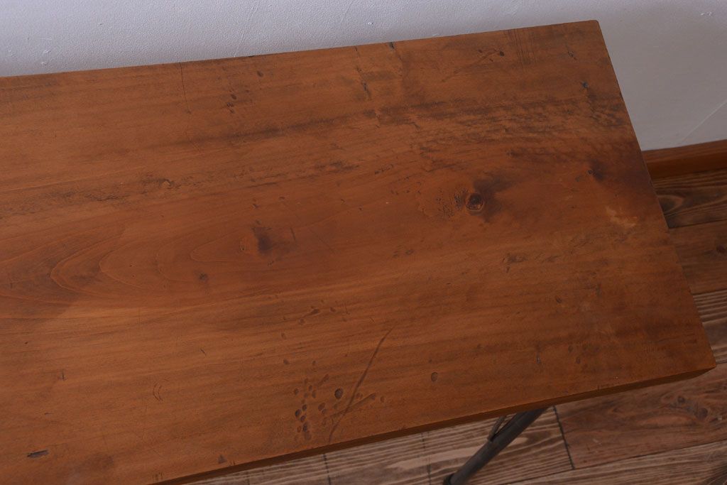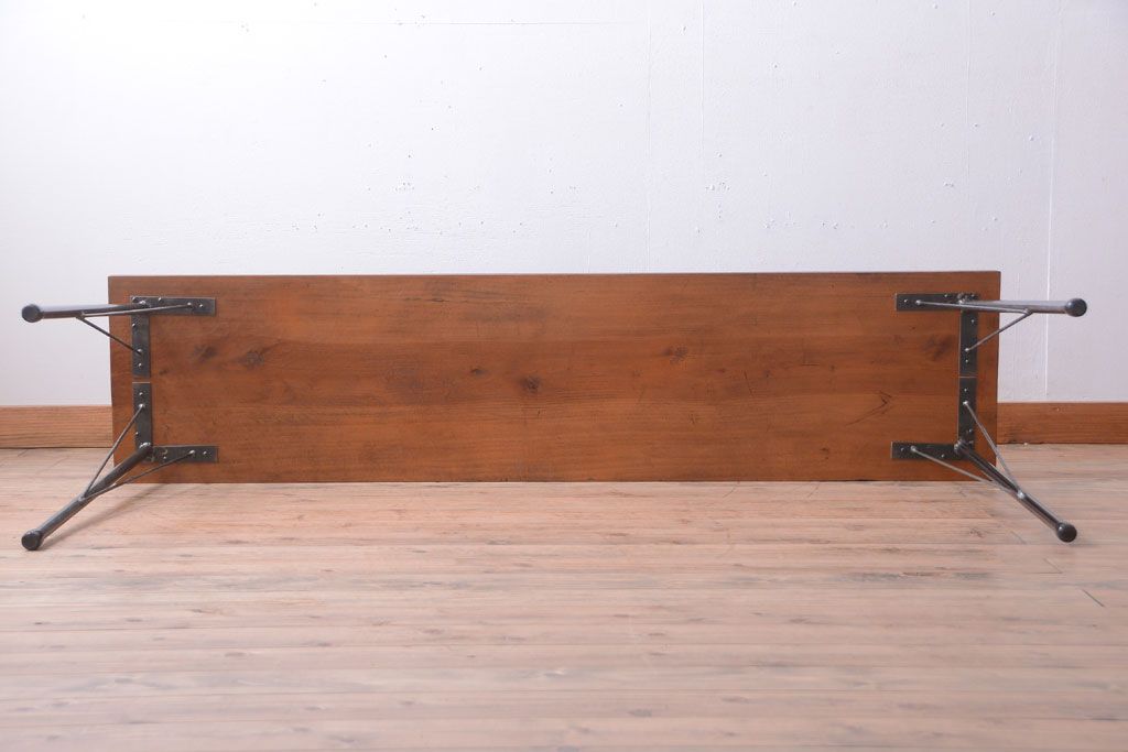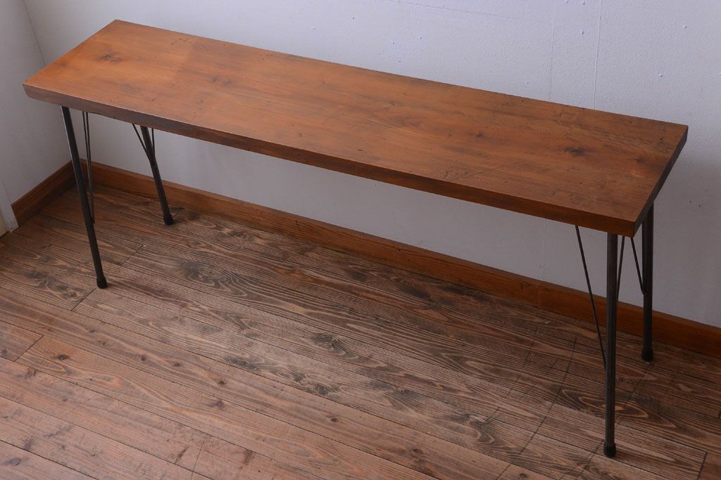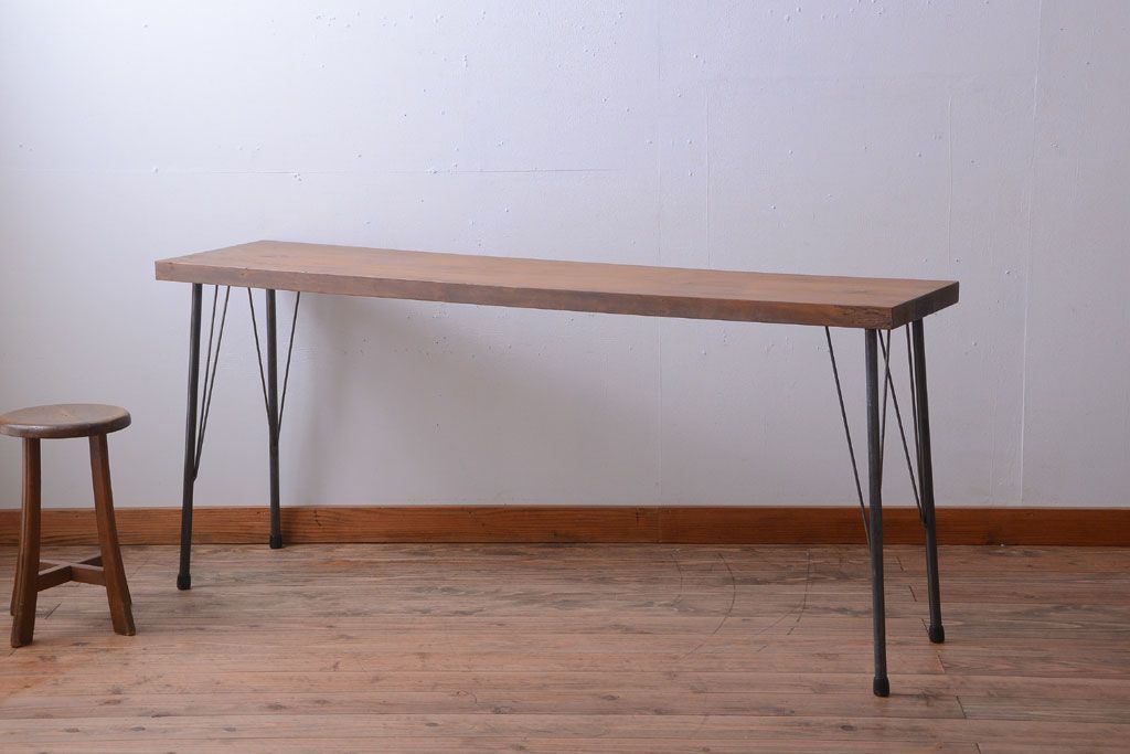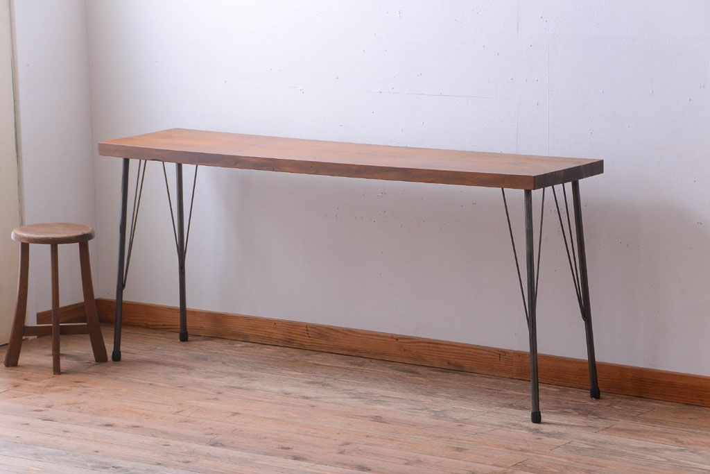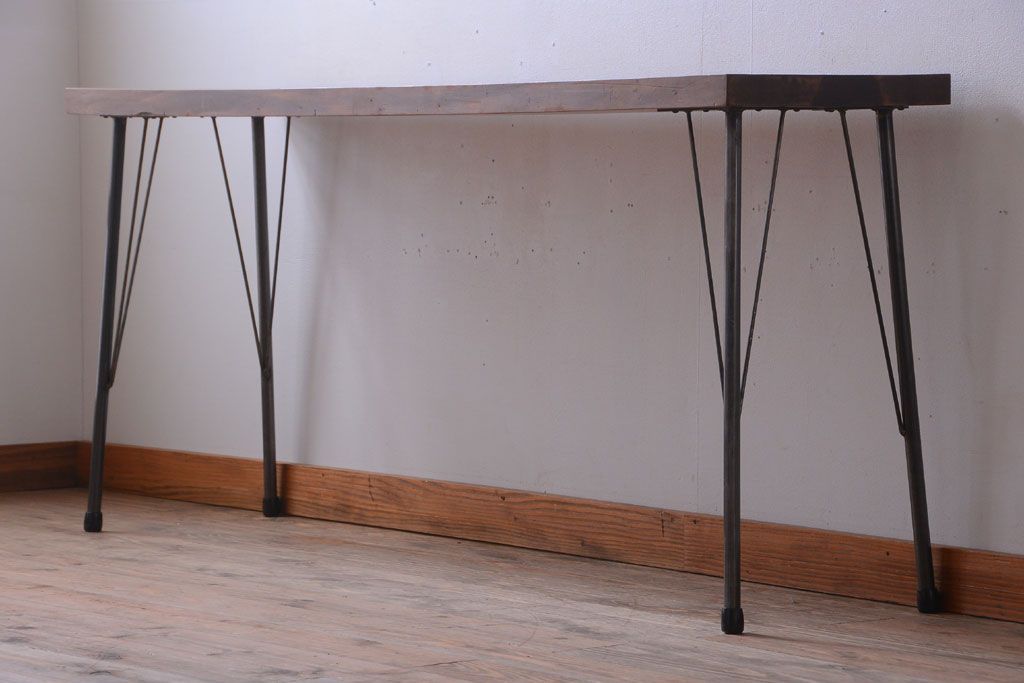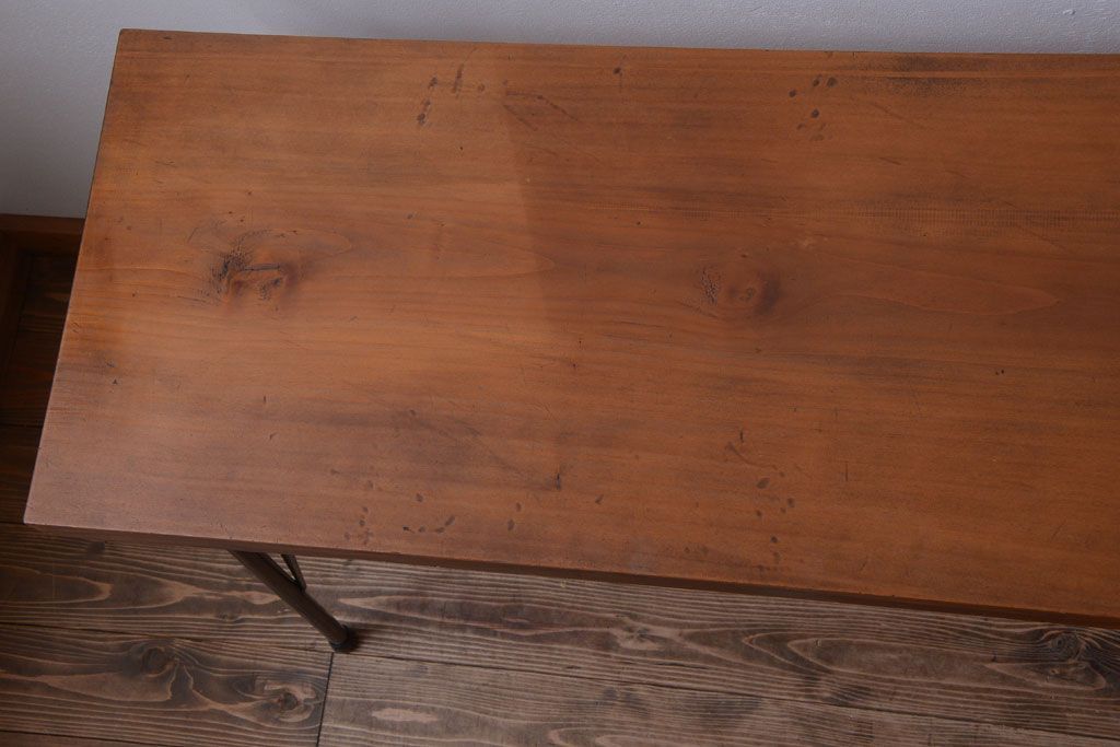 アンティーク家具 アンティーク 天板一枚板!シンプルな横長鉄脚テーブル(3)