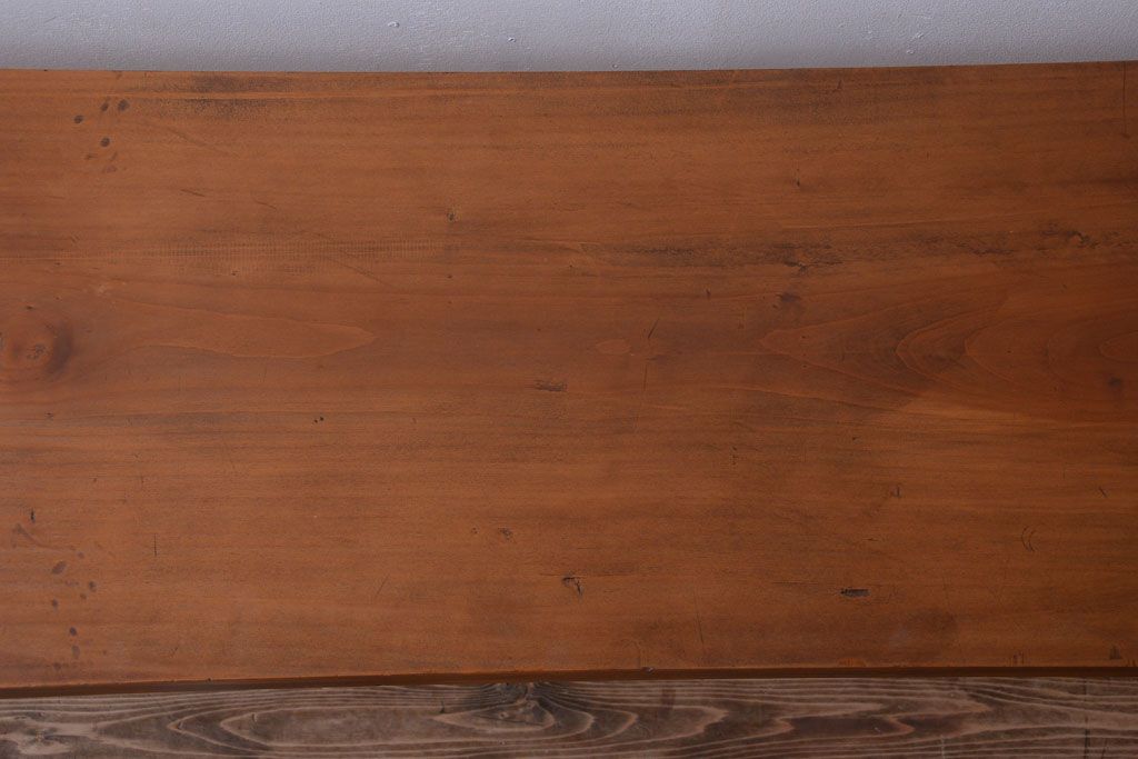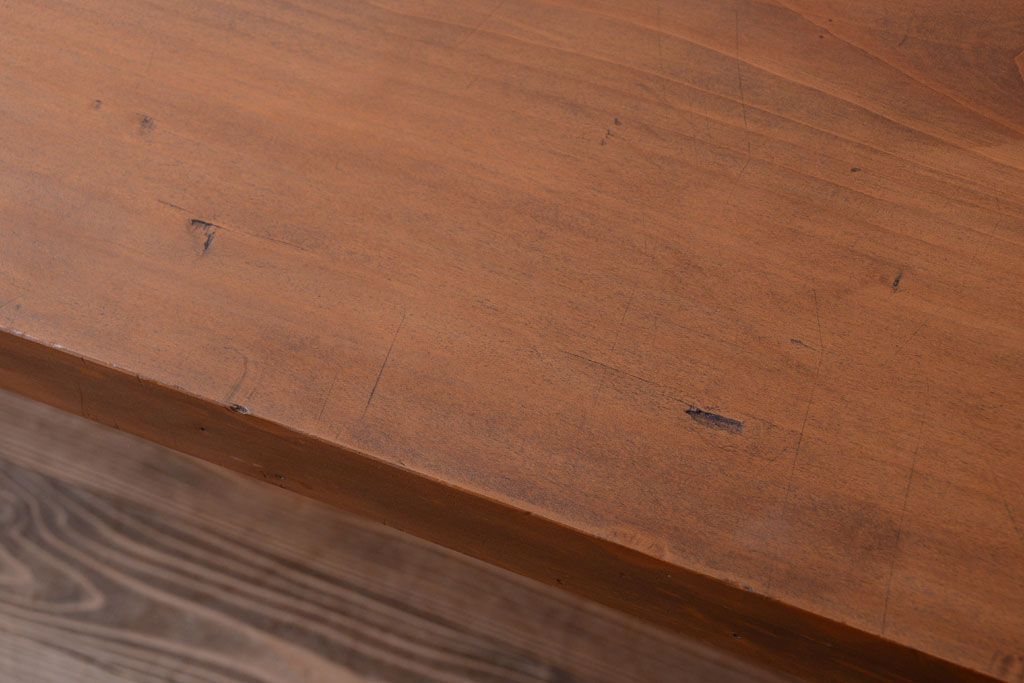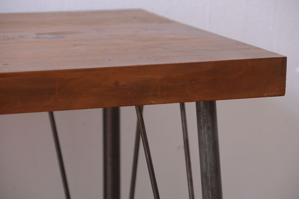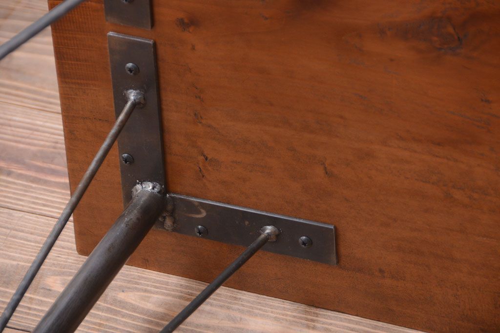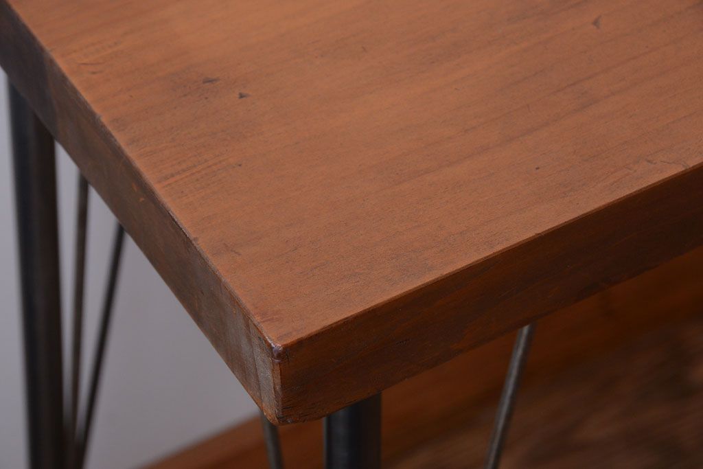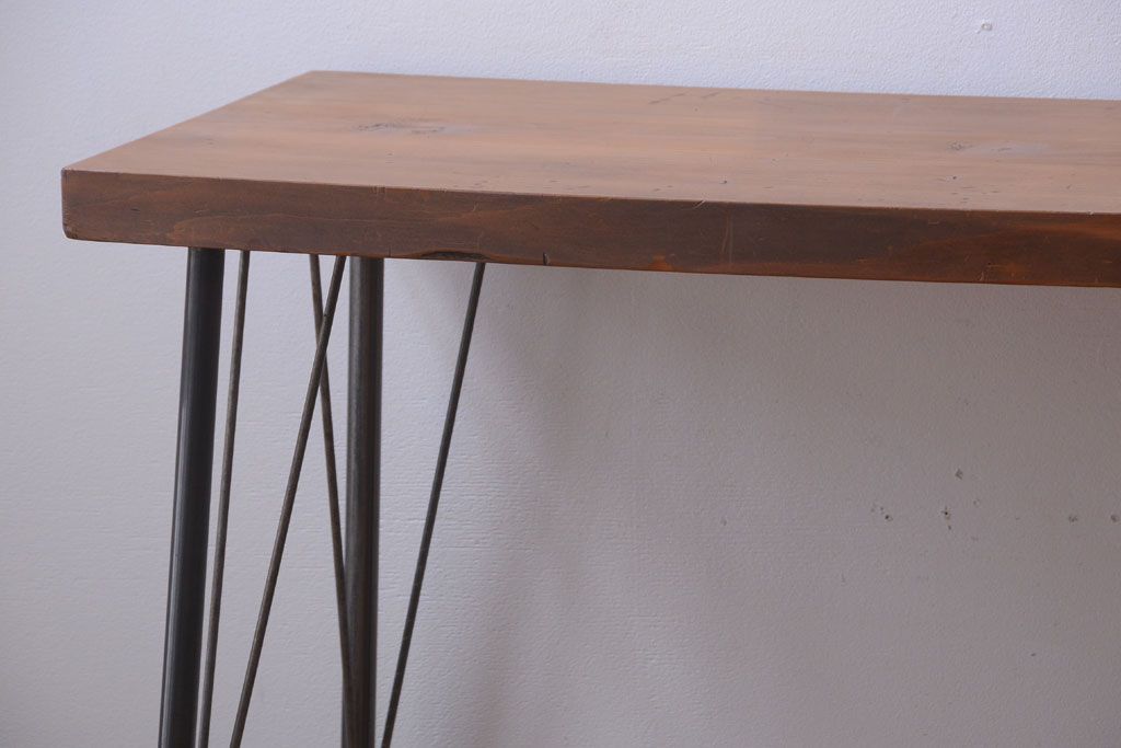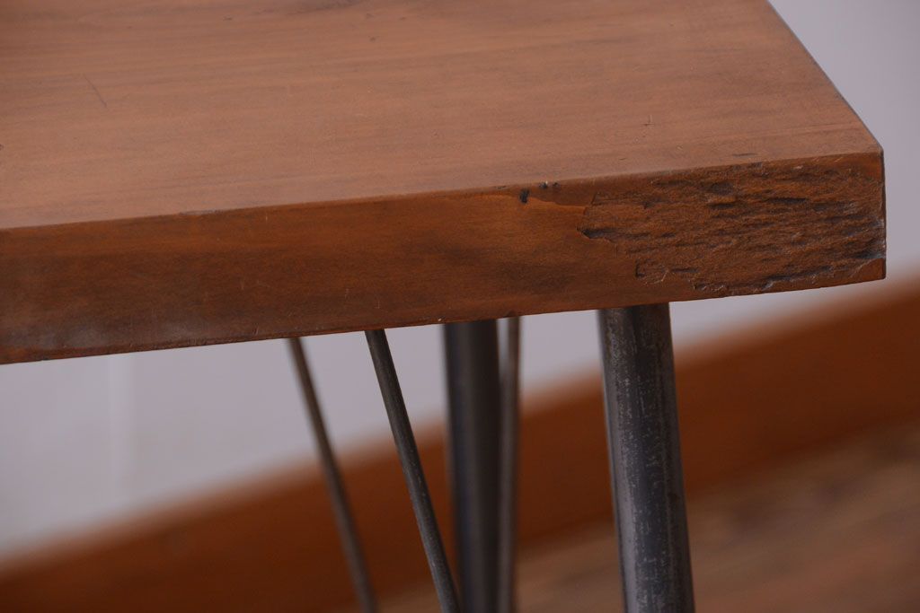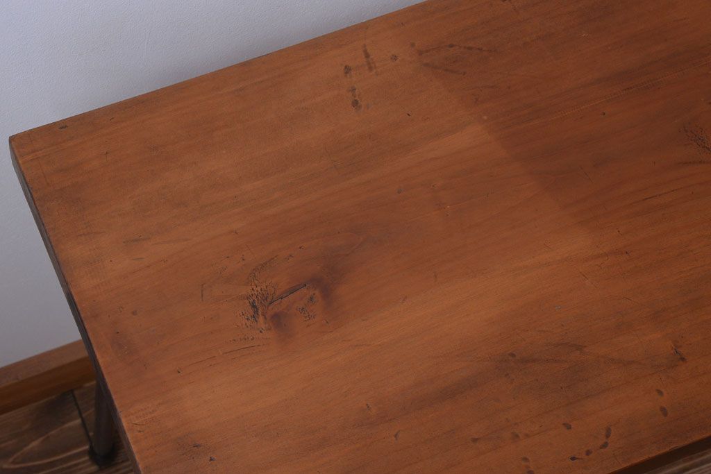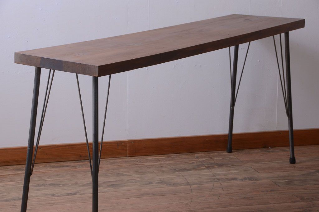 アンティーク家具 アンティーク 天板一枚板!シンプルな横長鉄脚テーブル(3)