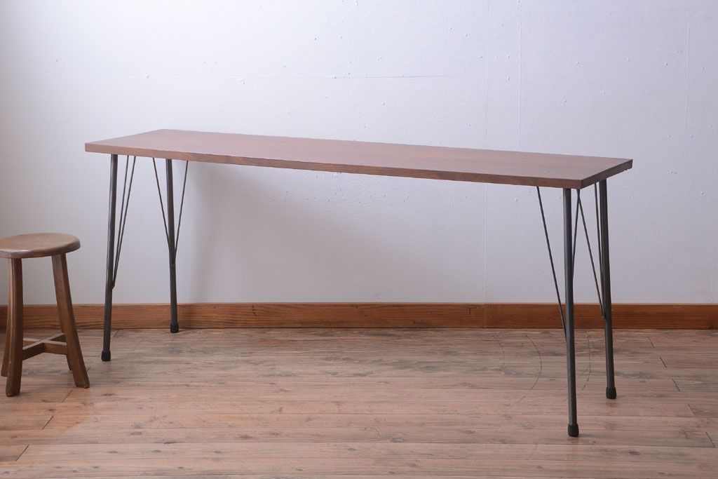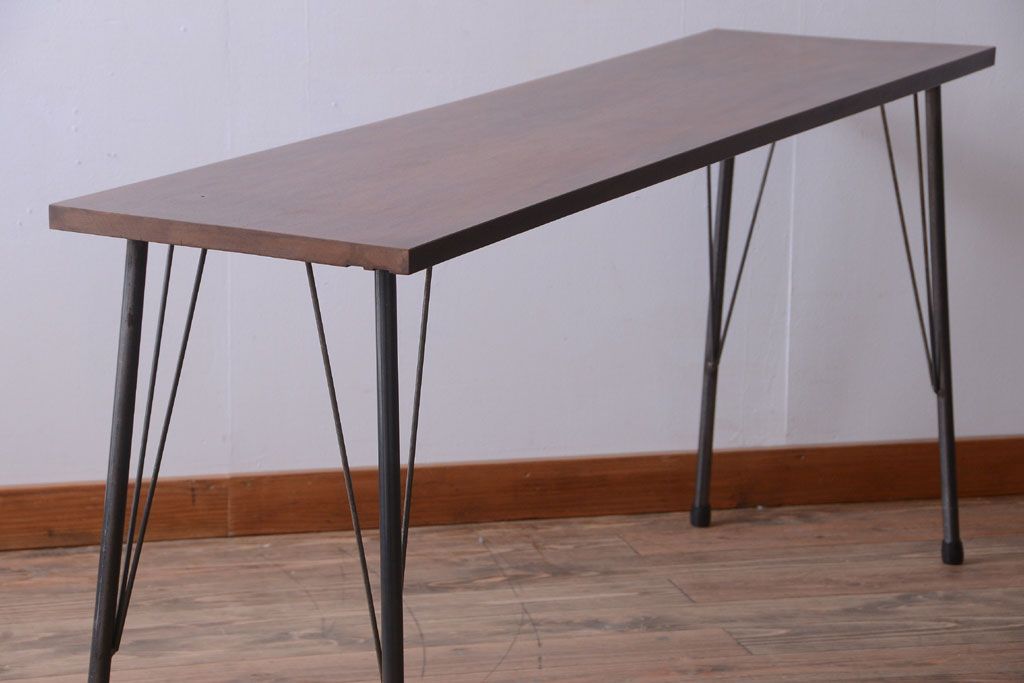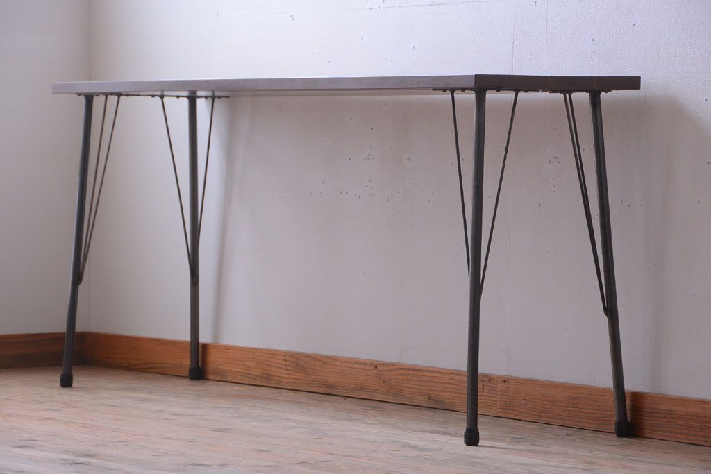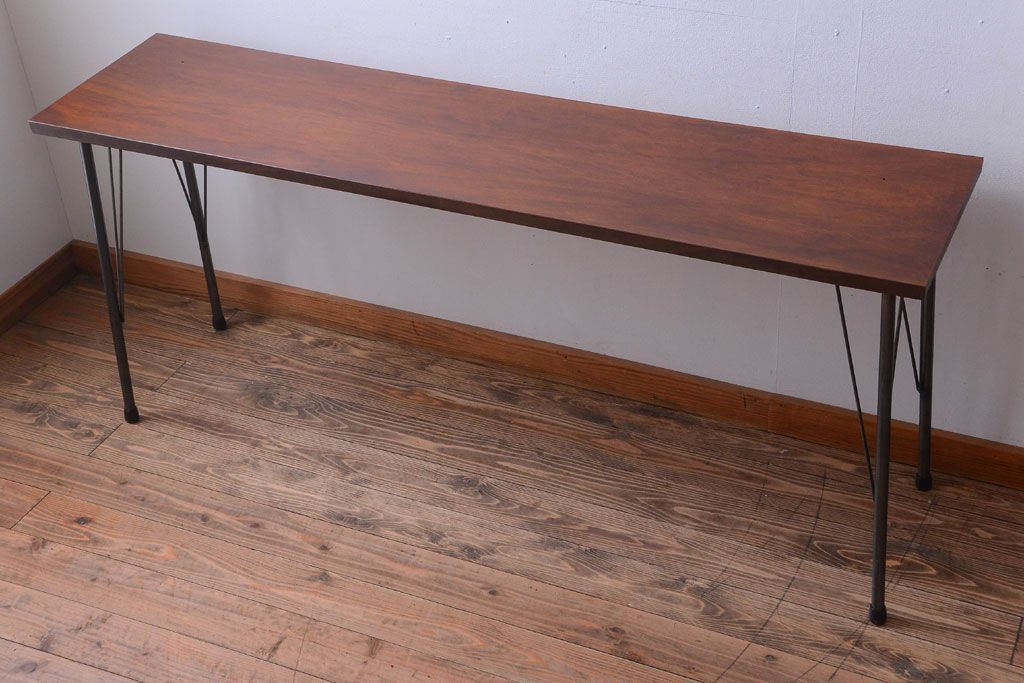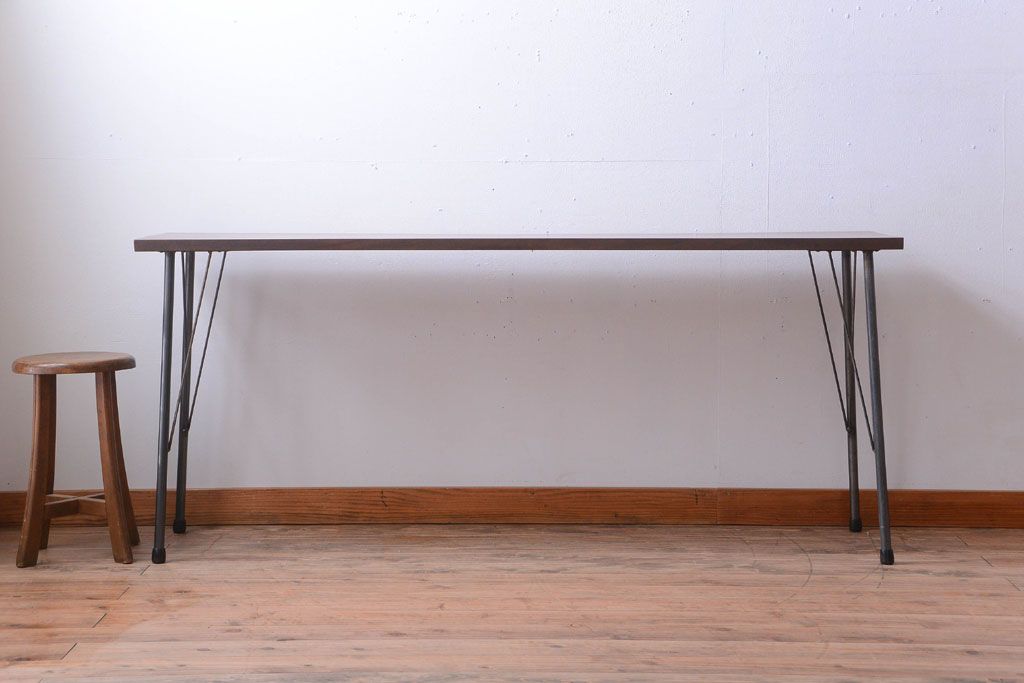 アンティーク家具 アンティーク 天板一枚板!シンプルな横型鉄脚テーブル(1)
