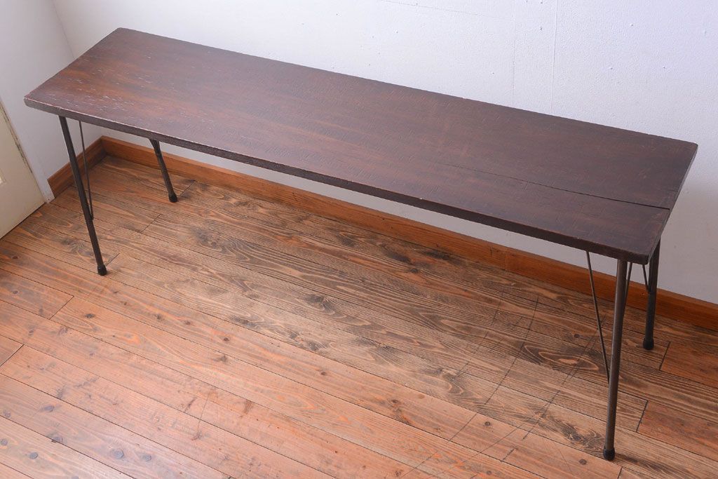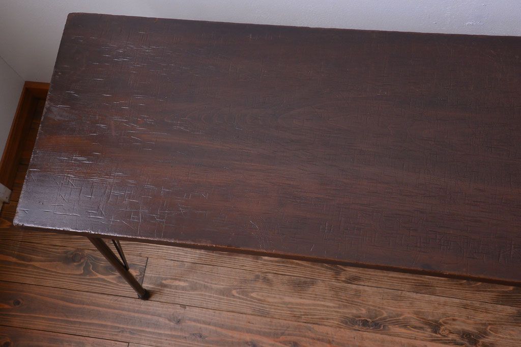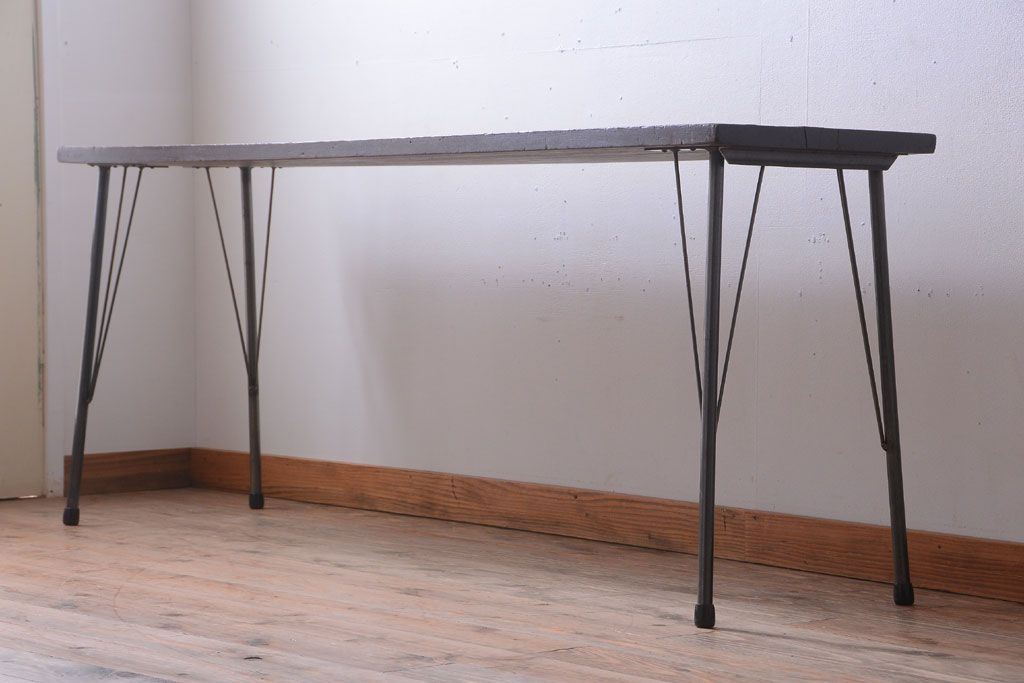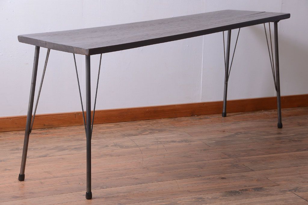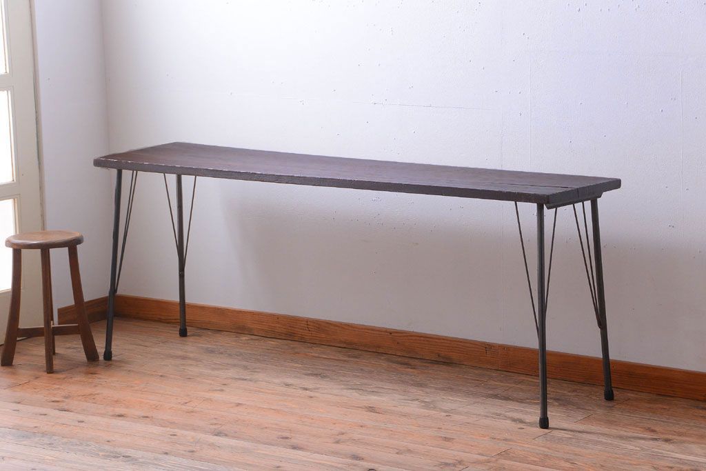アンティーク家具 アンティーク 天板一枚板!シンプルな横型鉄脚テーブル(2)