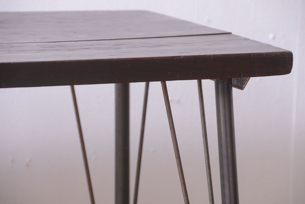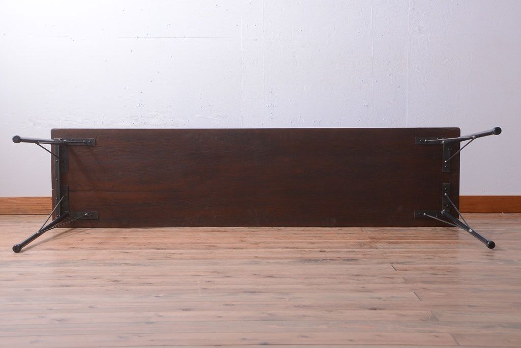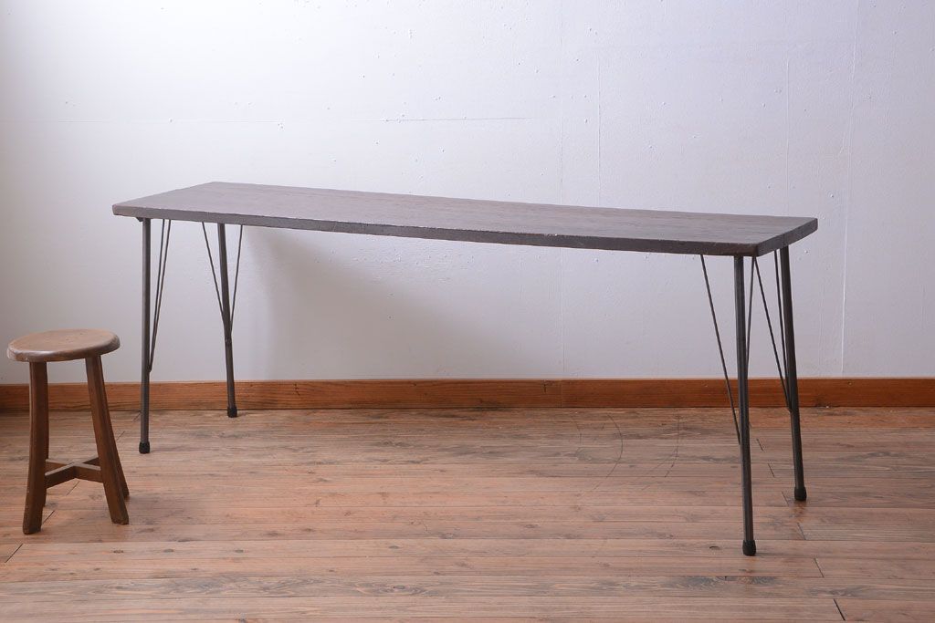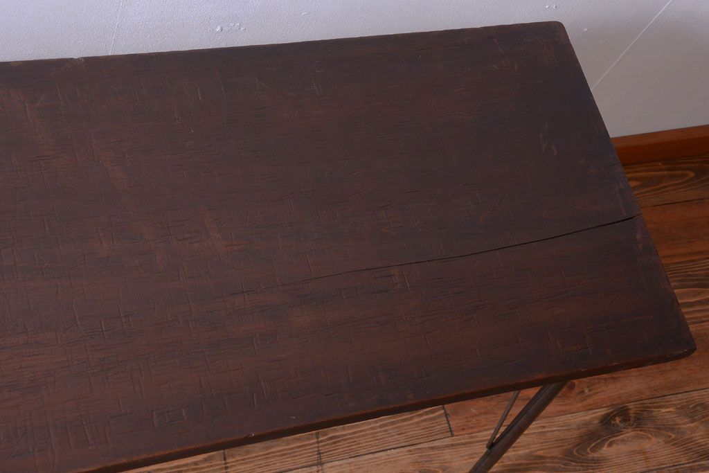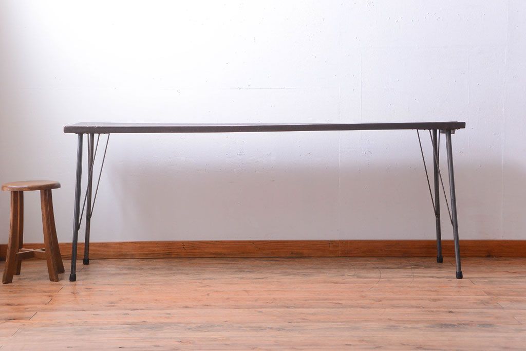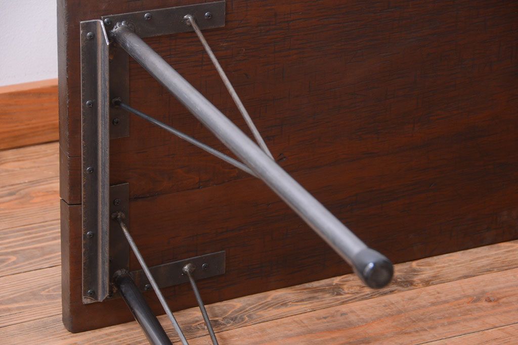 アンティーク家具 アンティーク 天板一枚板!シンプルな横型鉄脚テーブル(2)