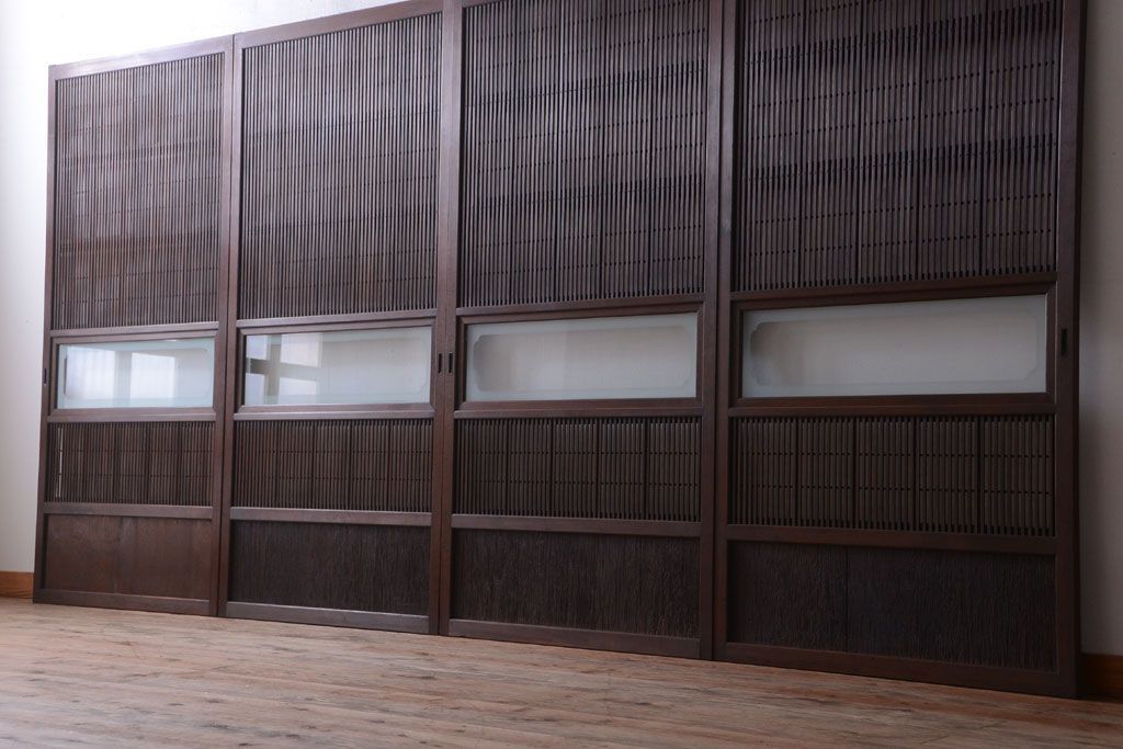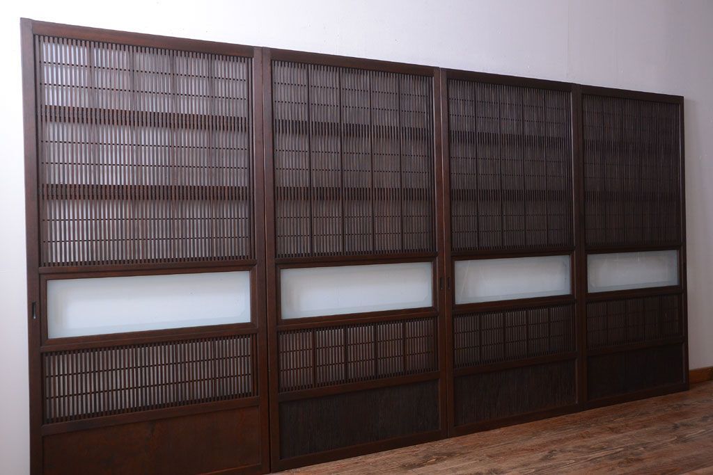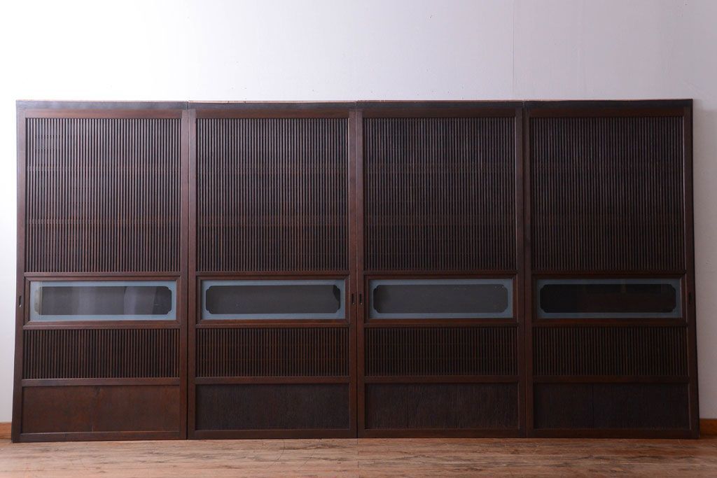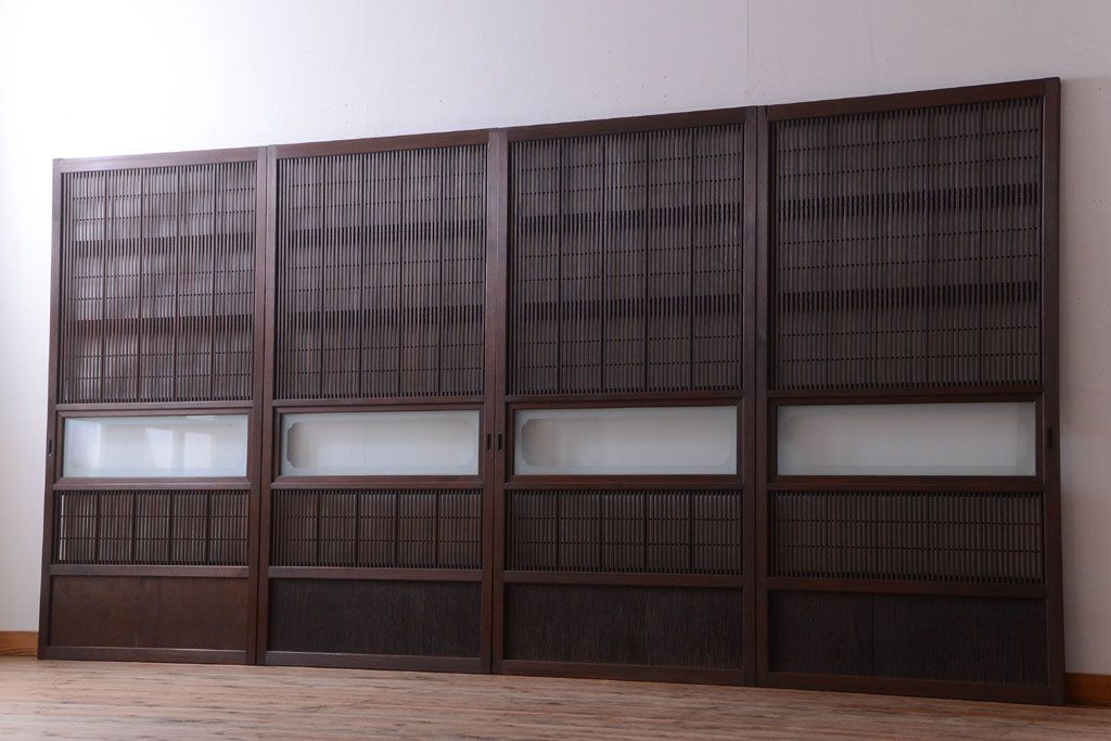 古民具・骨董 腰板屋久杉材!アンティーク格子戸4枚セット