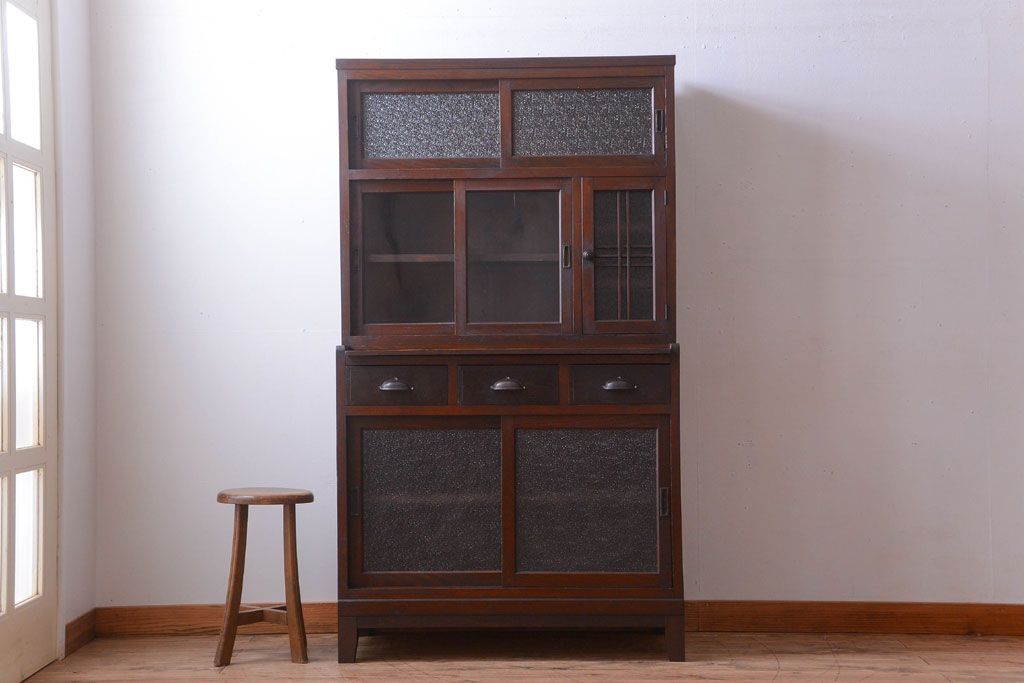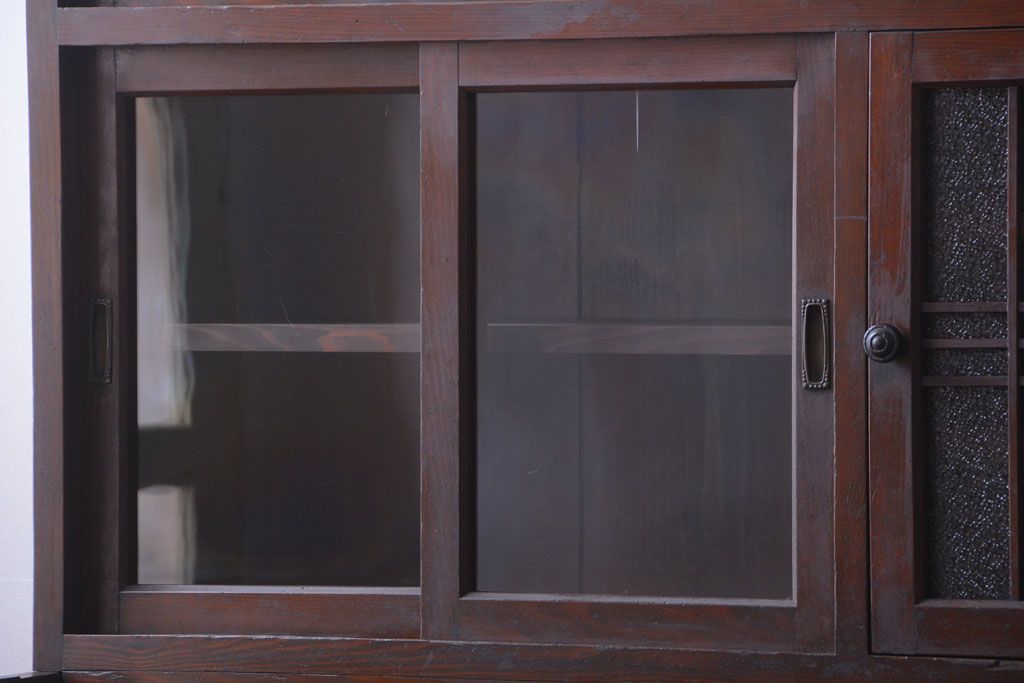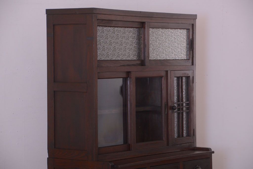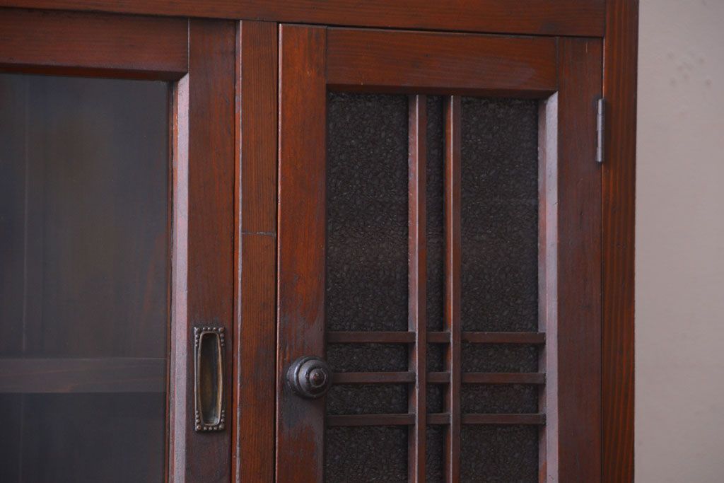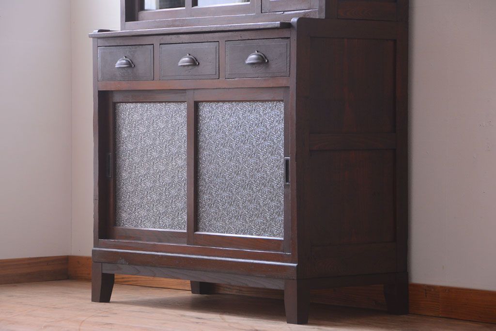 レトロ家具 昭和レトロ ダイヤガラスがかわいい和製アンティーク食器棚(カップボード)
