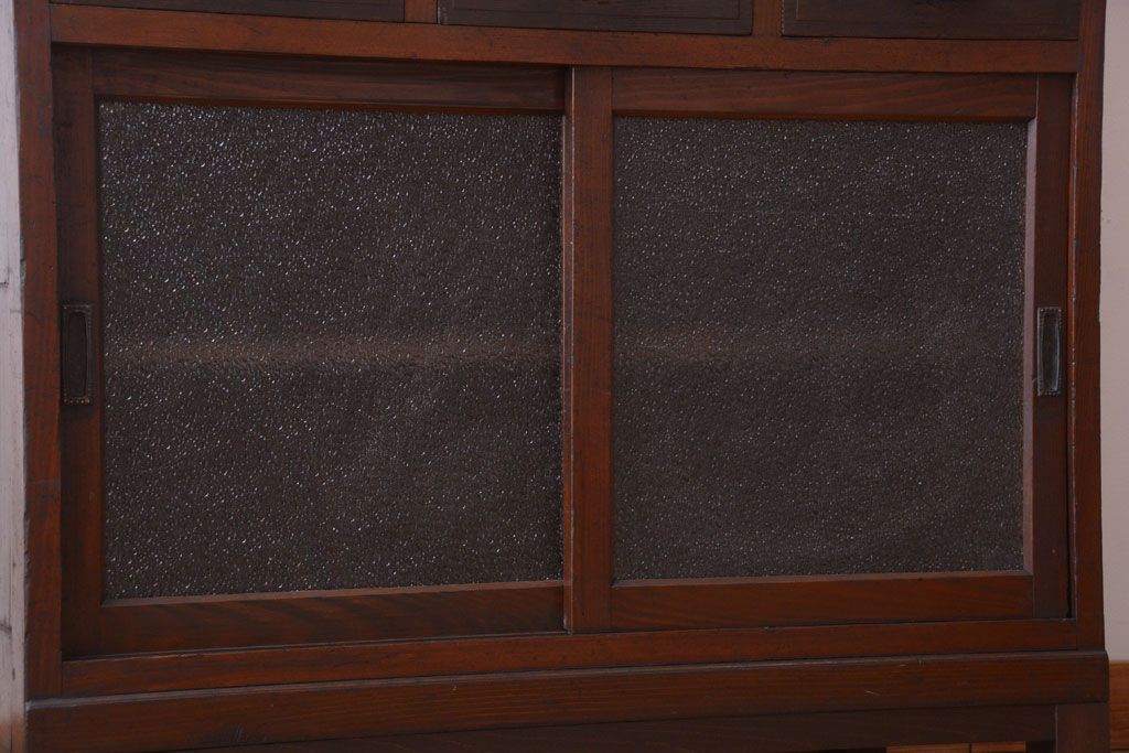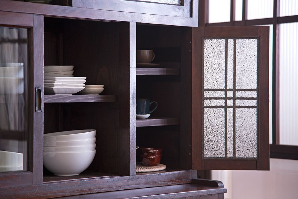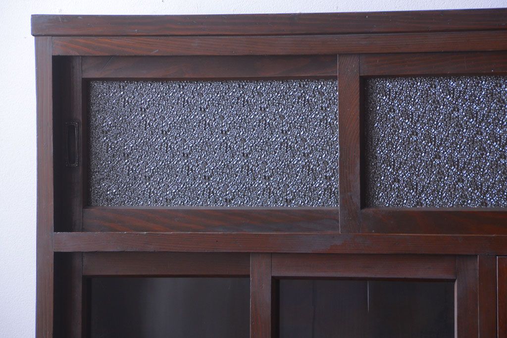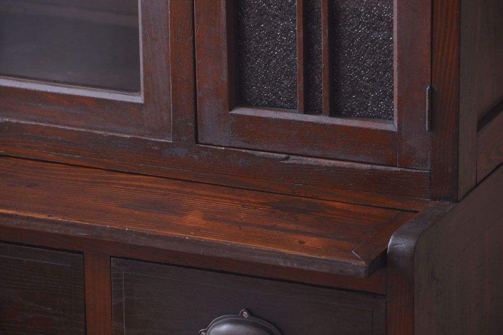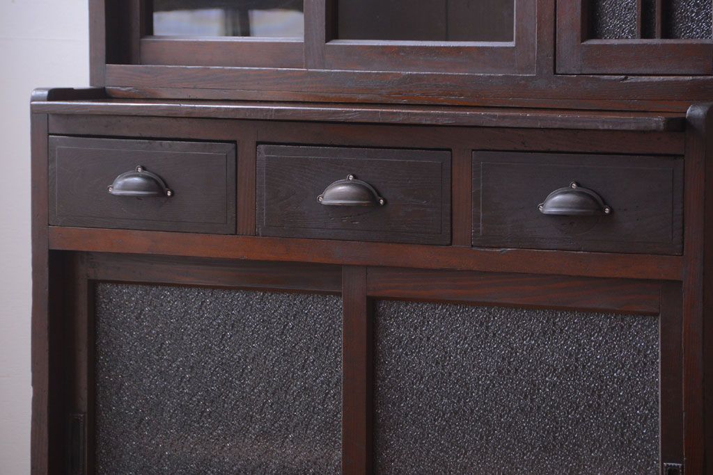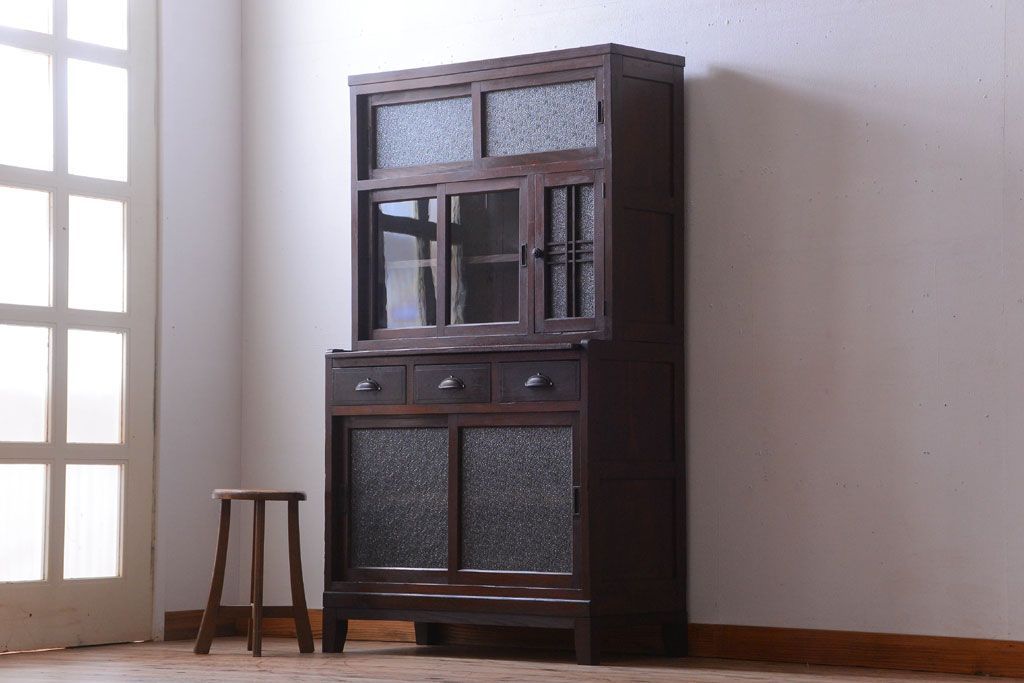 レトロ家具 昭和レトロ ダイヤガラスがかわいい和製アンティーク食器棚(カップボード)