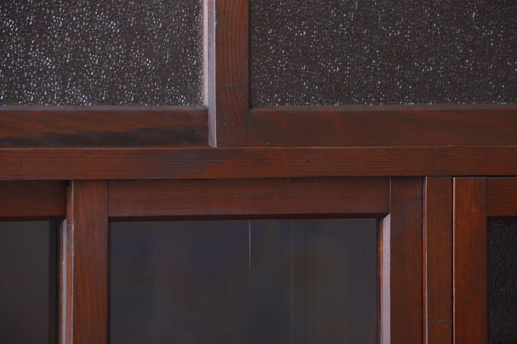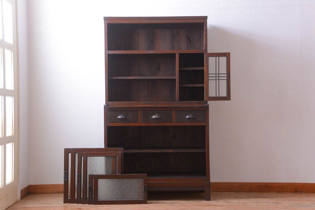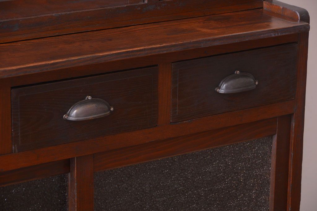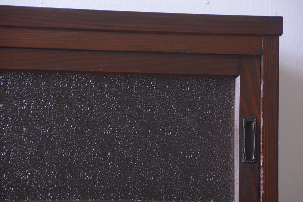昭和レトロ ダイヤガラスがかわいい和製アンティーク食器棚(カップボード)です。