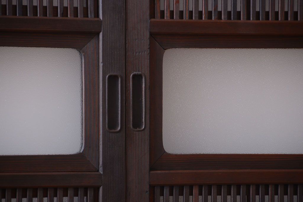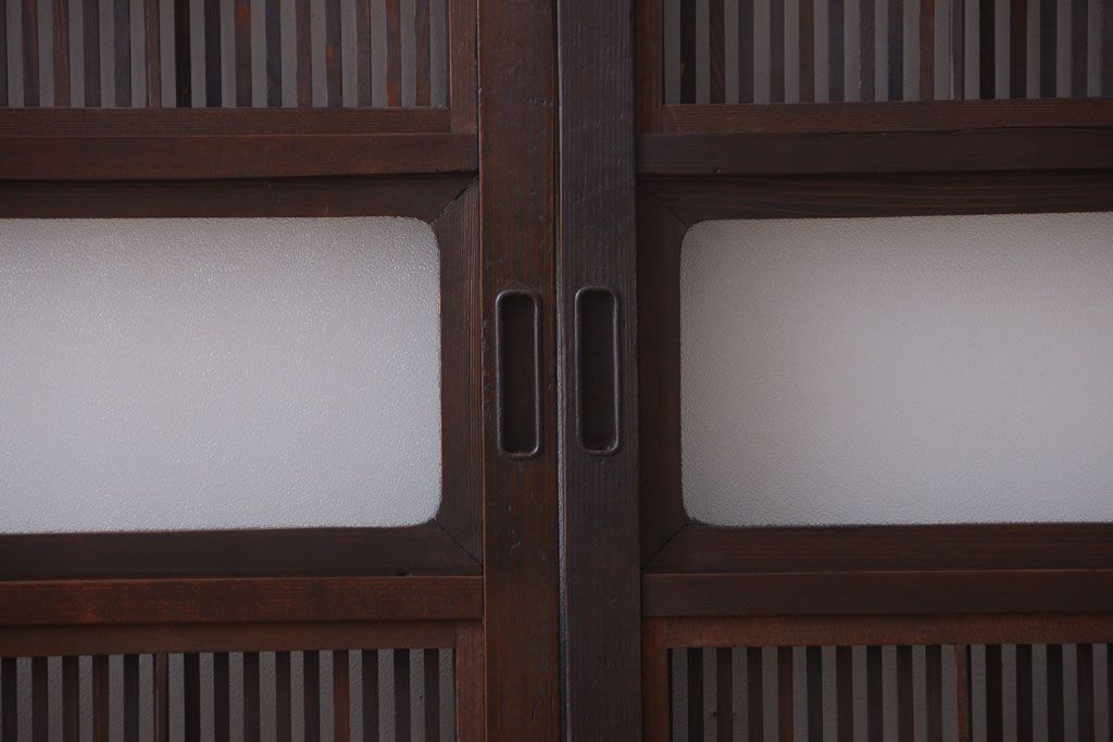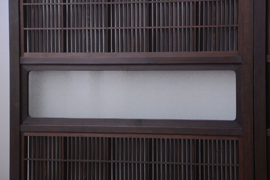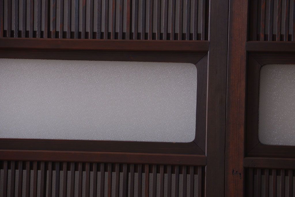 古民具・骨董 裏障子付き!ダイヤガラス帯のアンティーク格子戸4枚セット