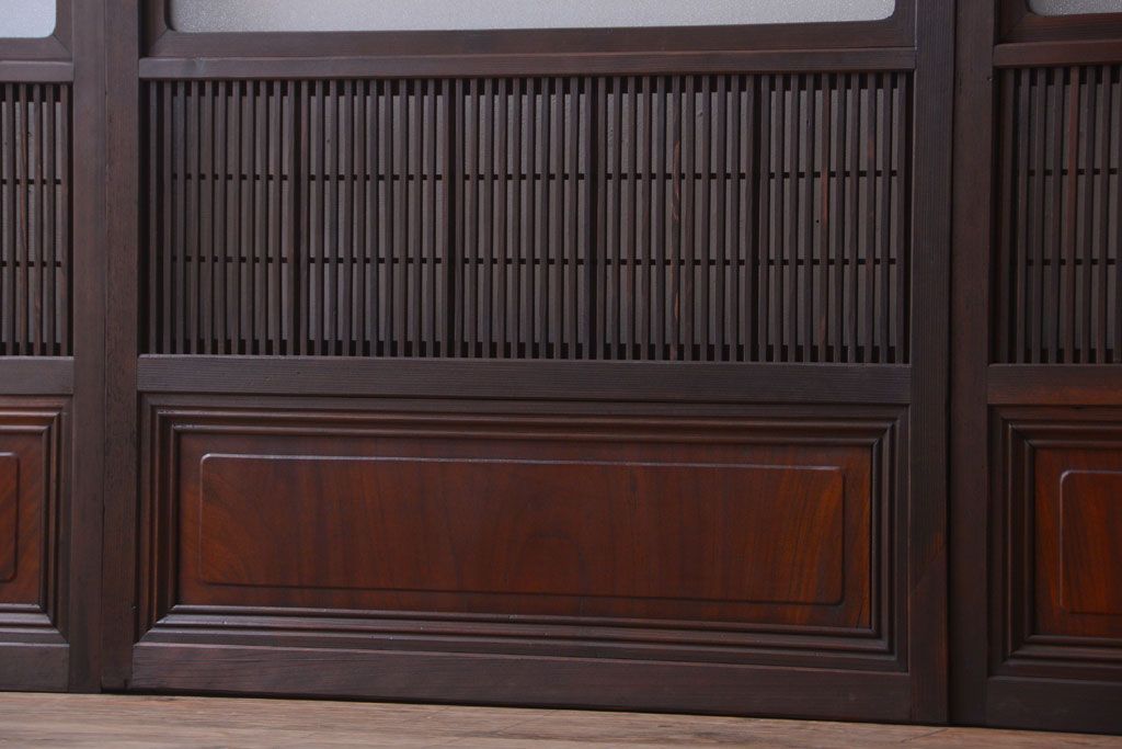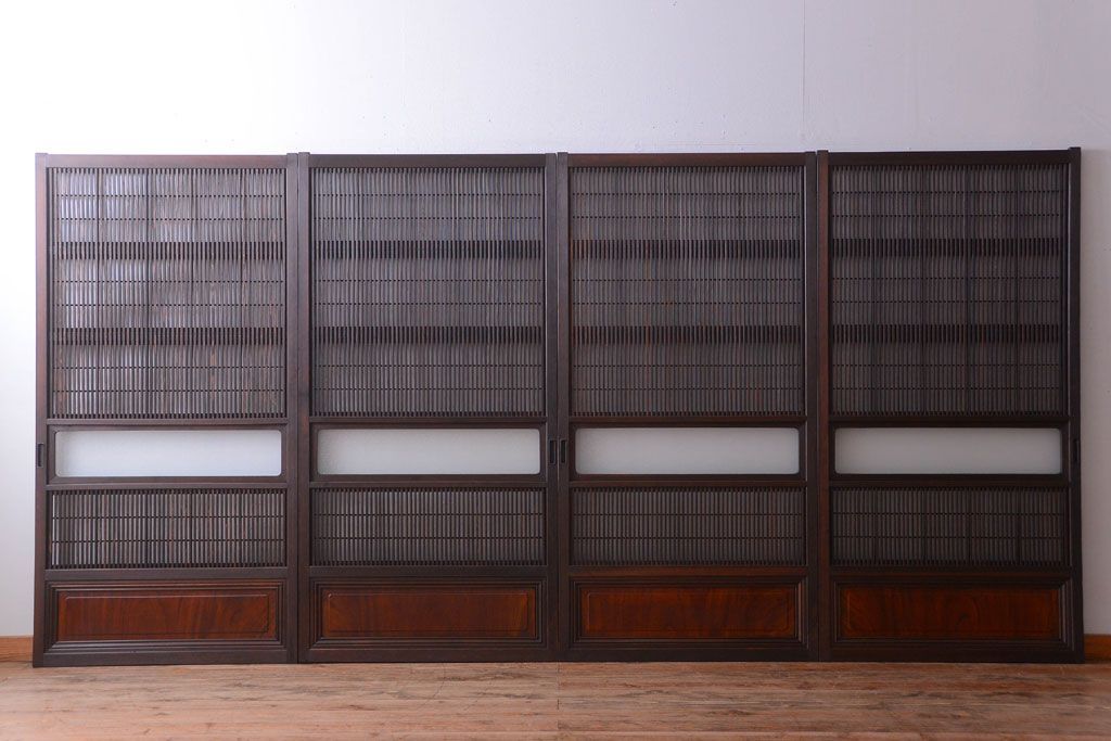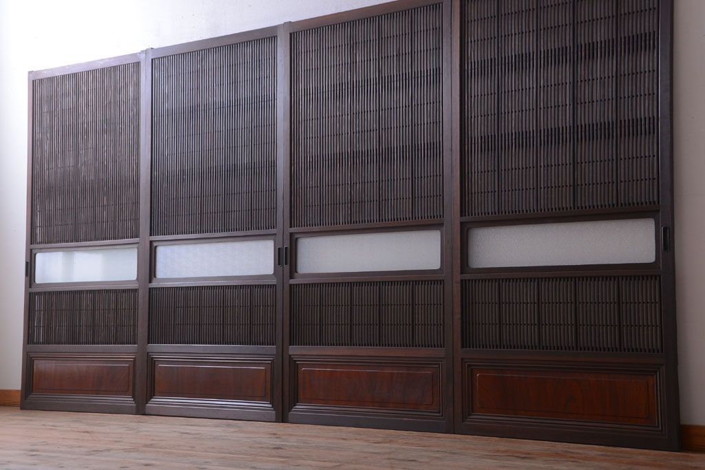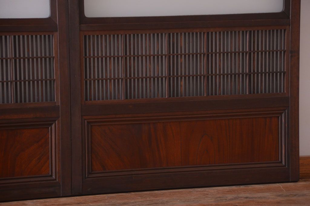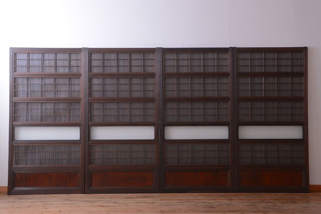 古民具・骨董 裏障子付き!ダイヤガラス帯のアンティーク格子戸4枚セット