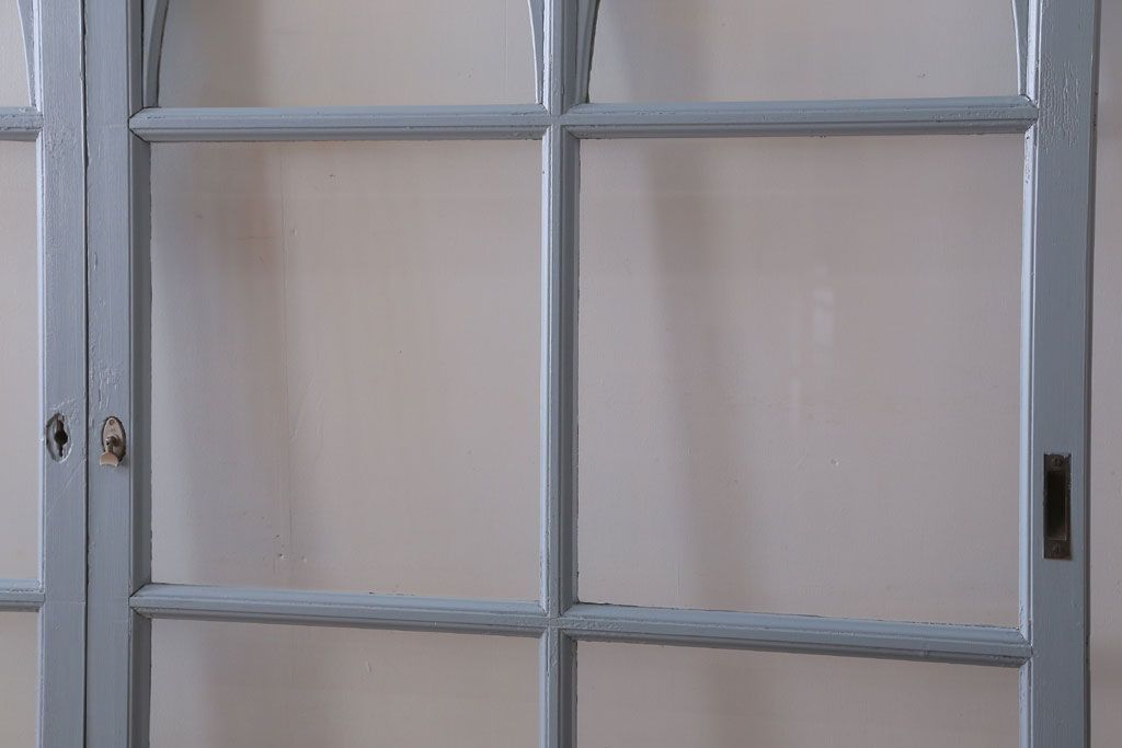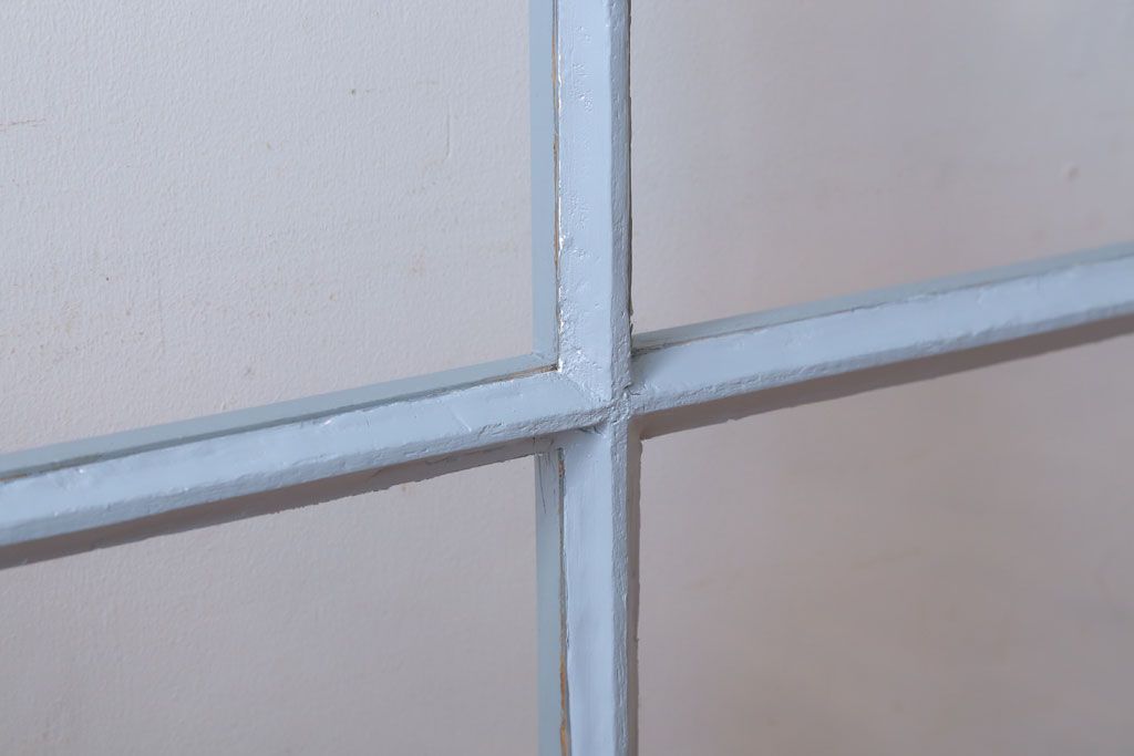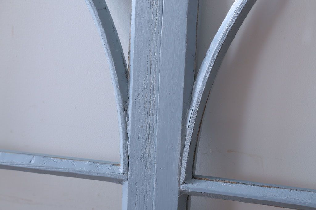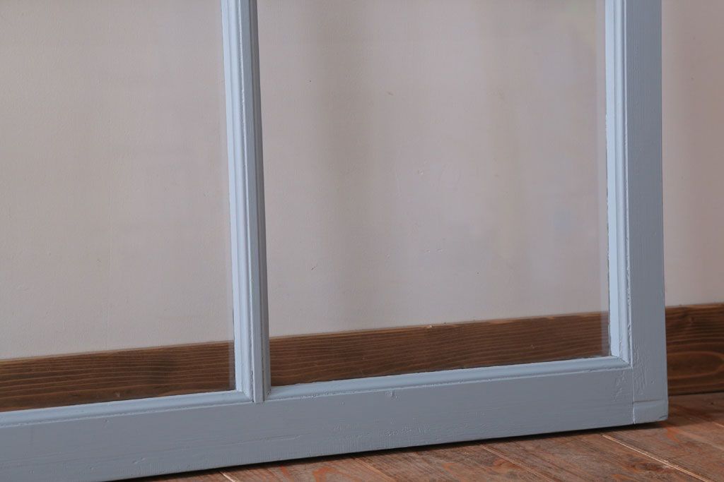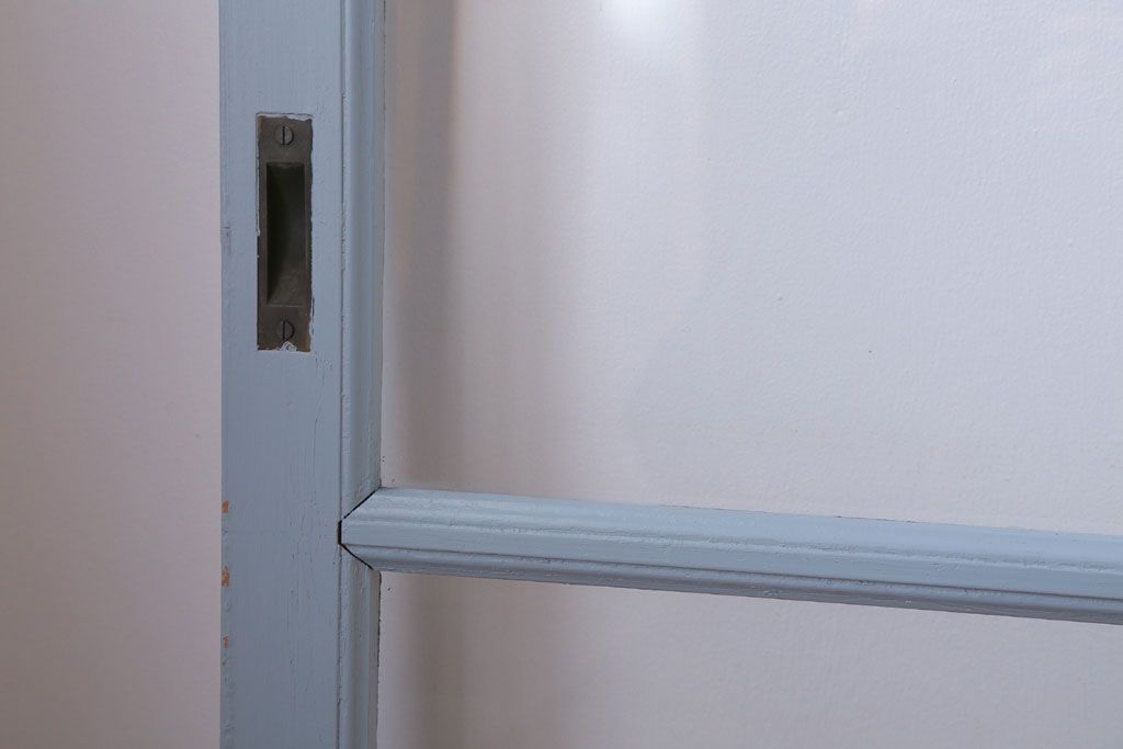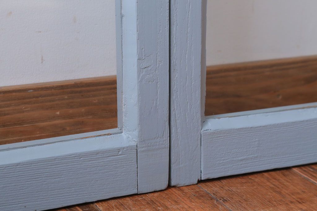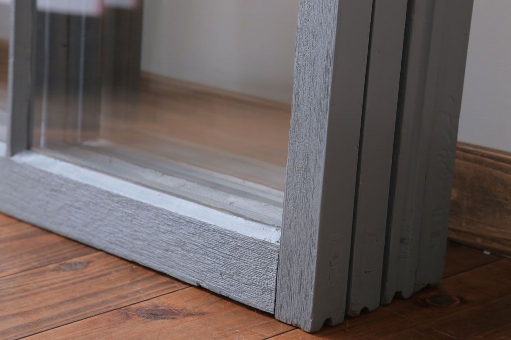 アンティーク ブルーグレーペイントのガラス戸4枚セット(窓)