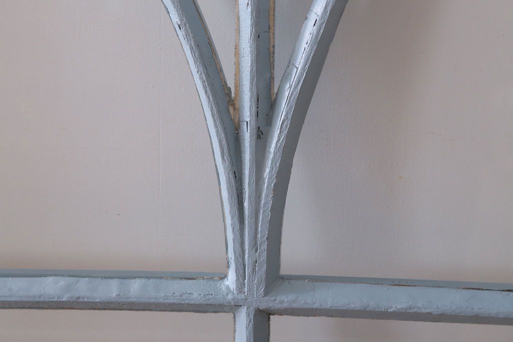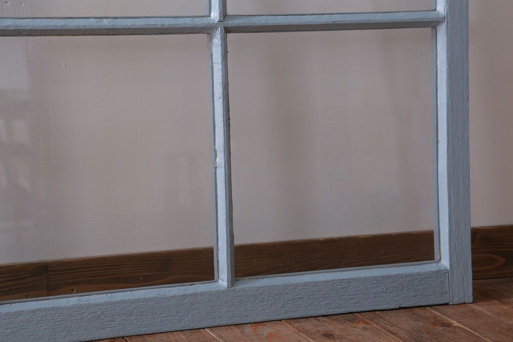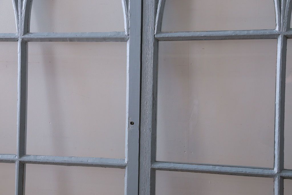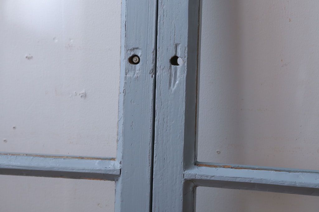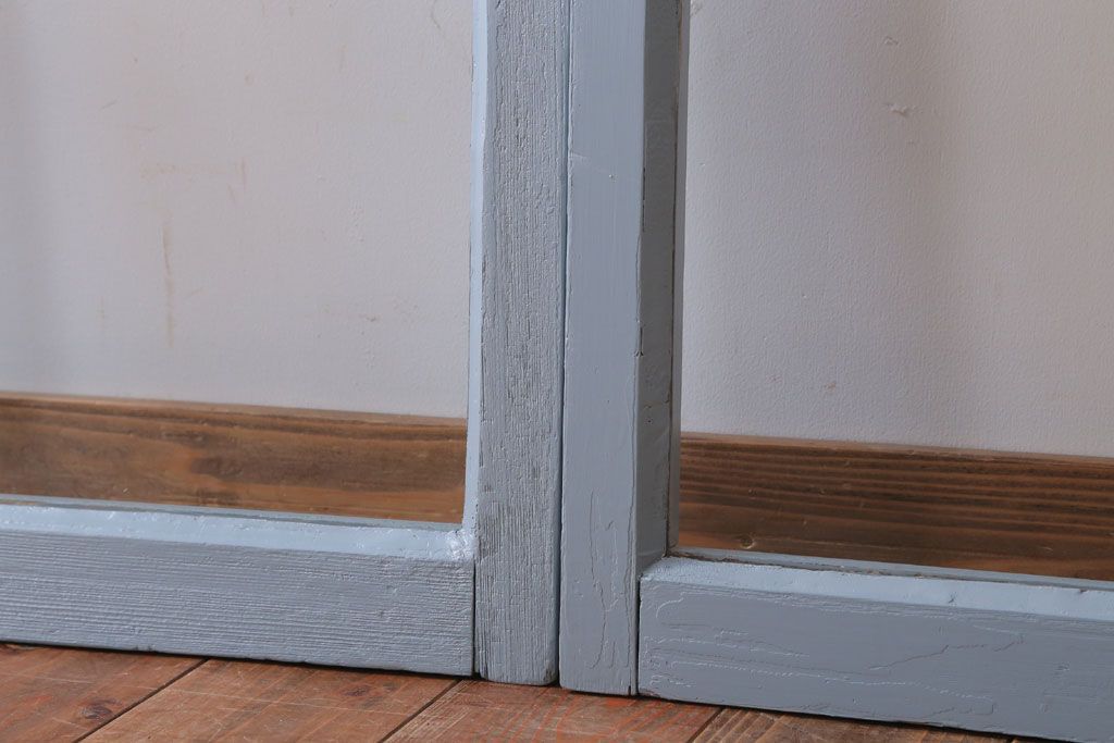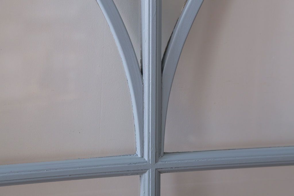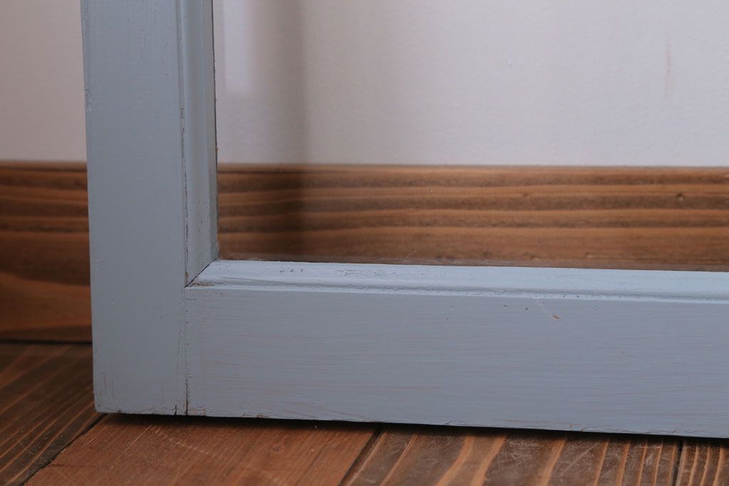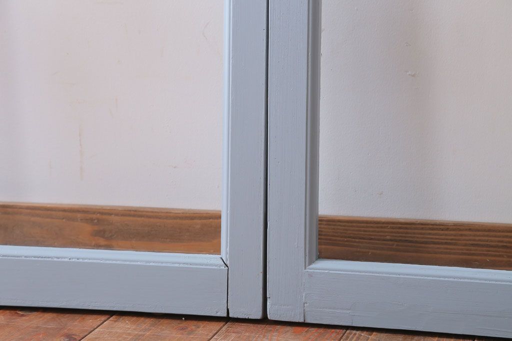 アンティーク ブルーグレーペイントのガラス戸4枚セット(窓)