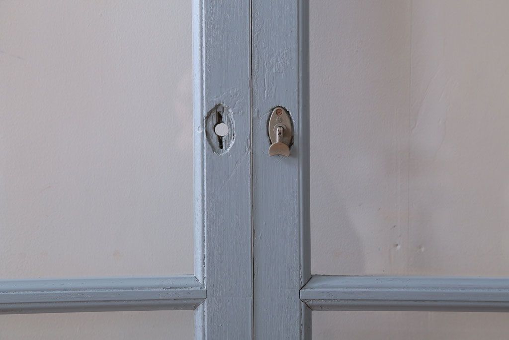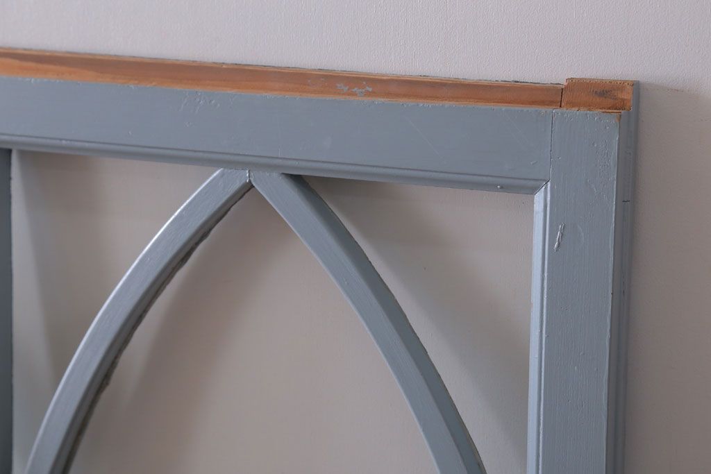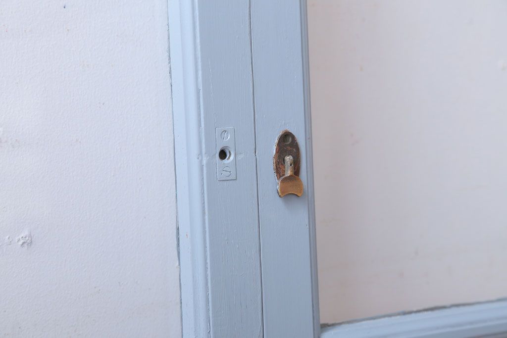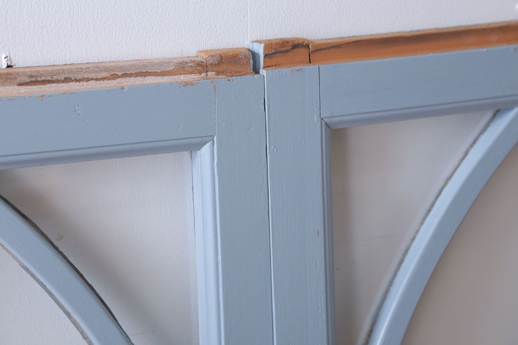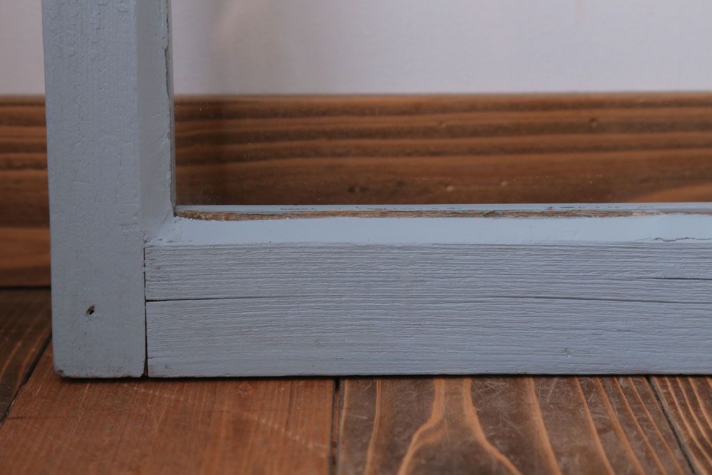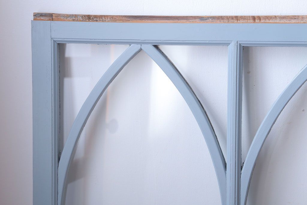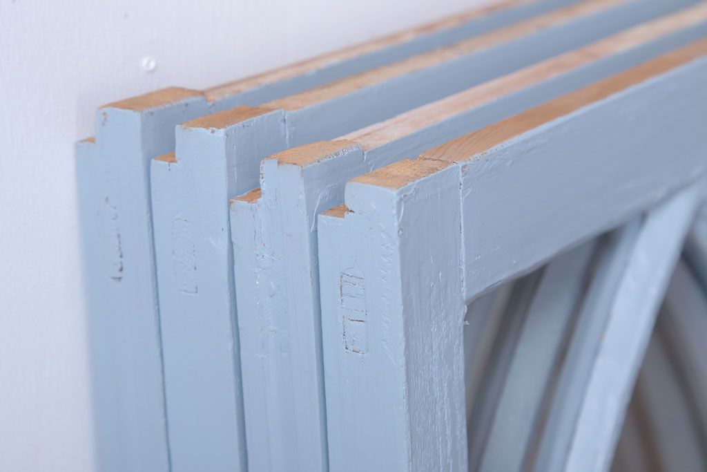 アンティーク ブルーグレーペイントのガラス戸4枚セット(窓)