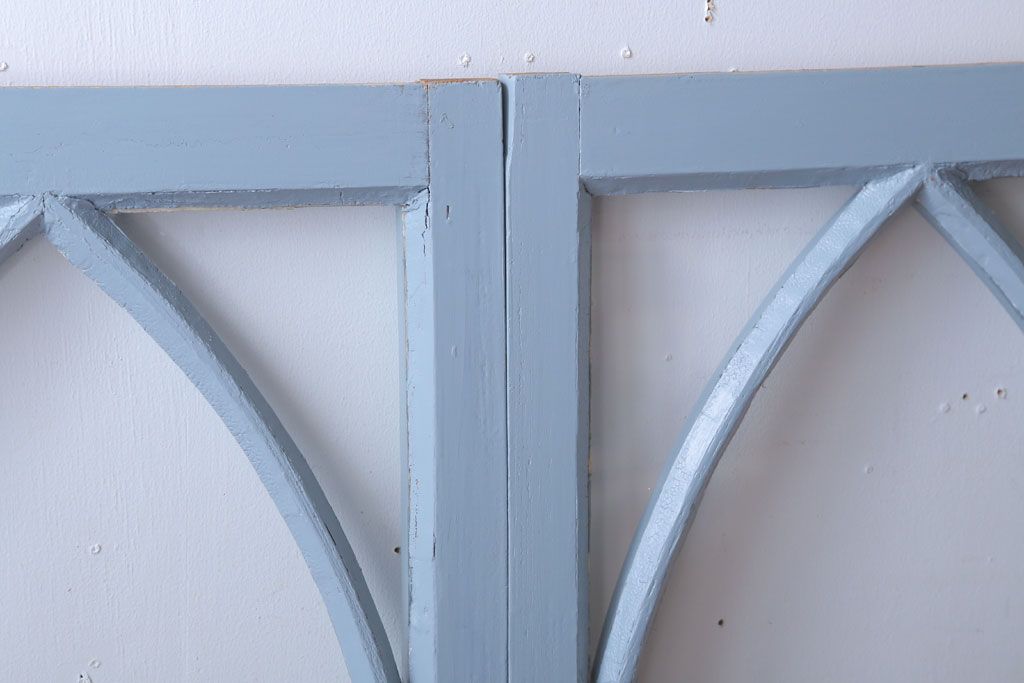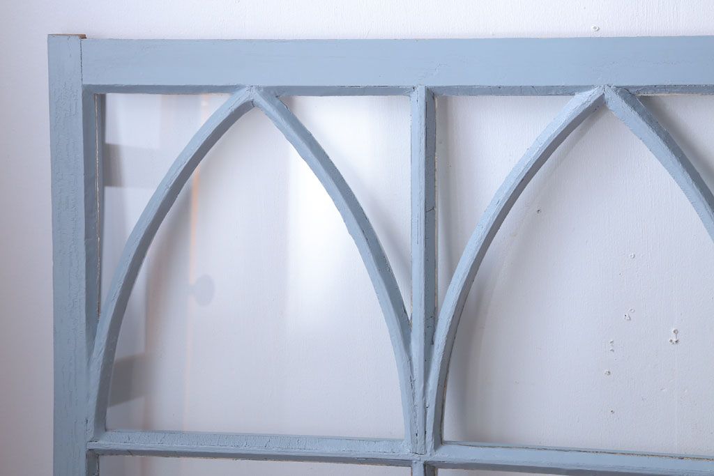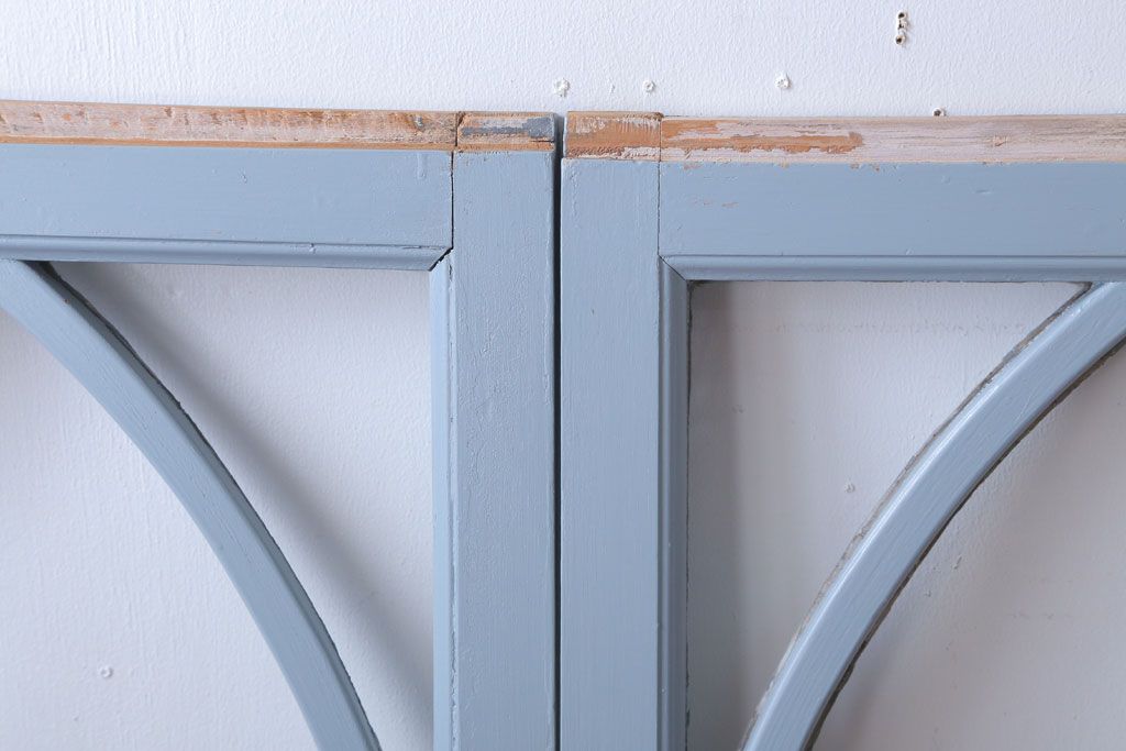 アンティーク ブルーグレーペイントのガラス戸4枚セット(窓)です。