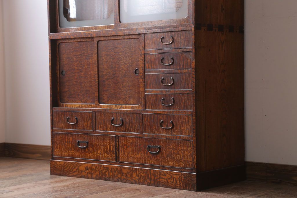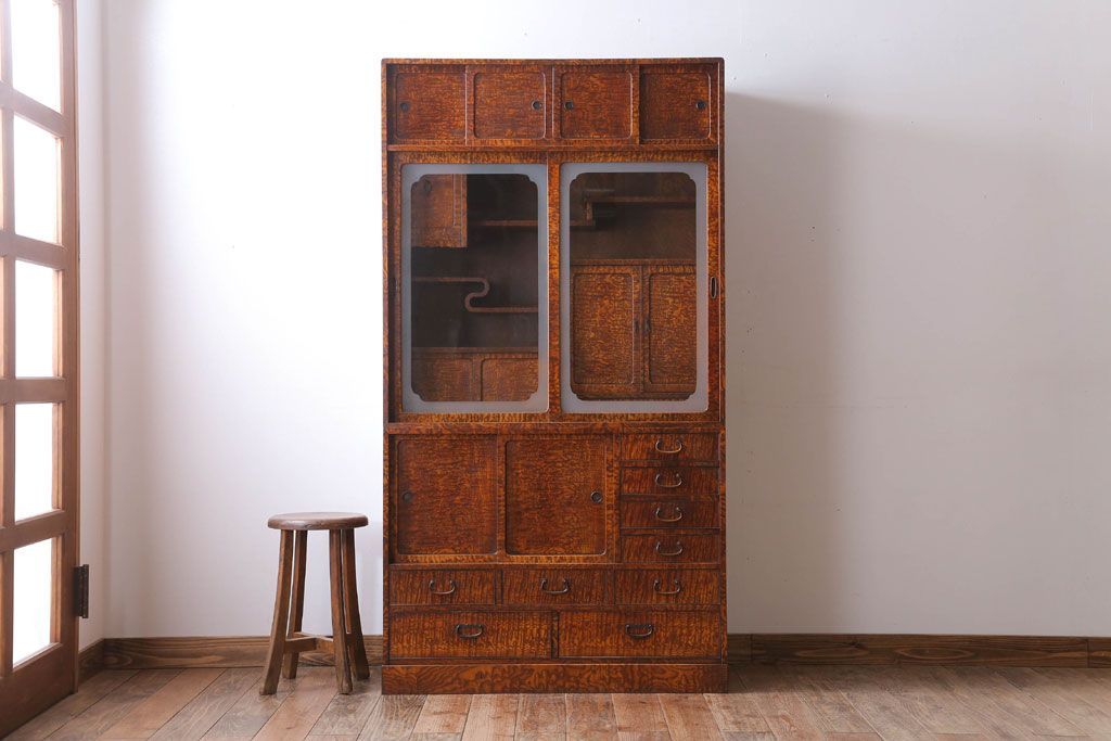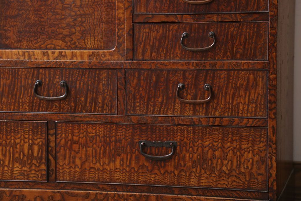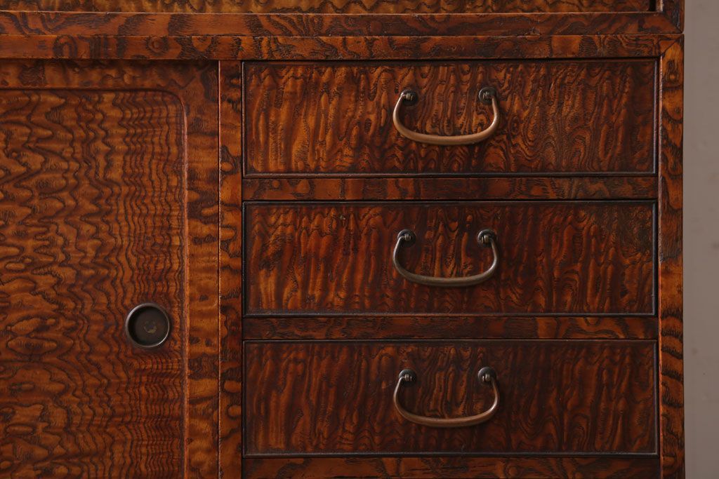 アンティーク家具 古民具・骨董 タモ玉杢材!上質なアンティーク茶箪笥