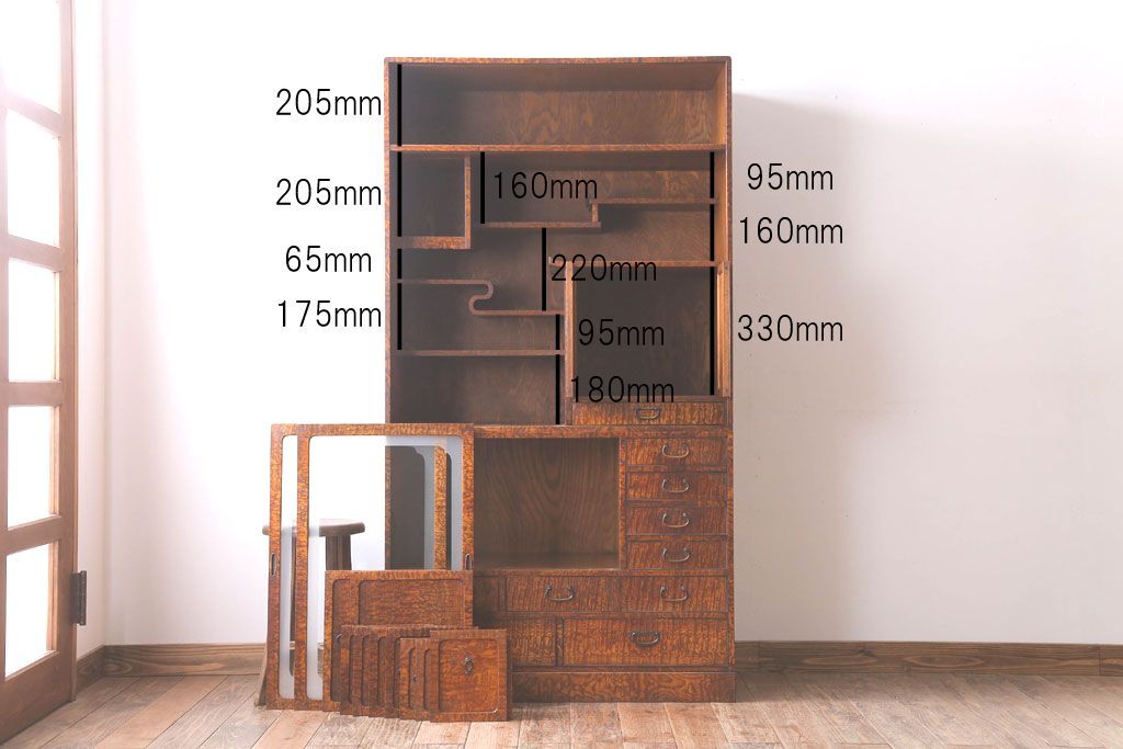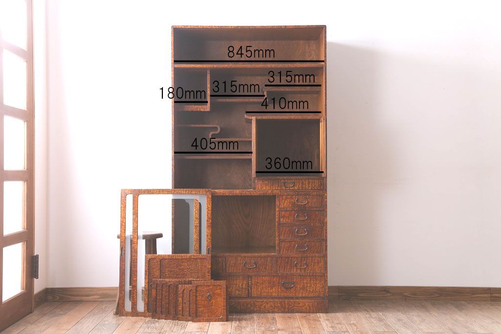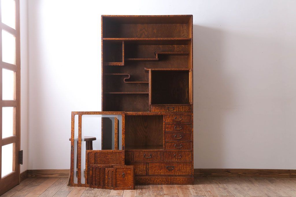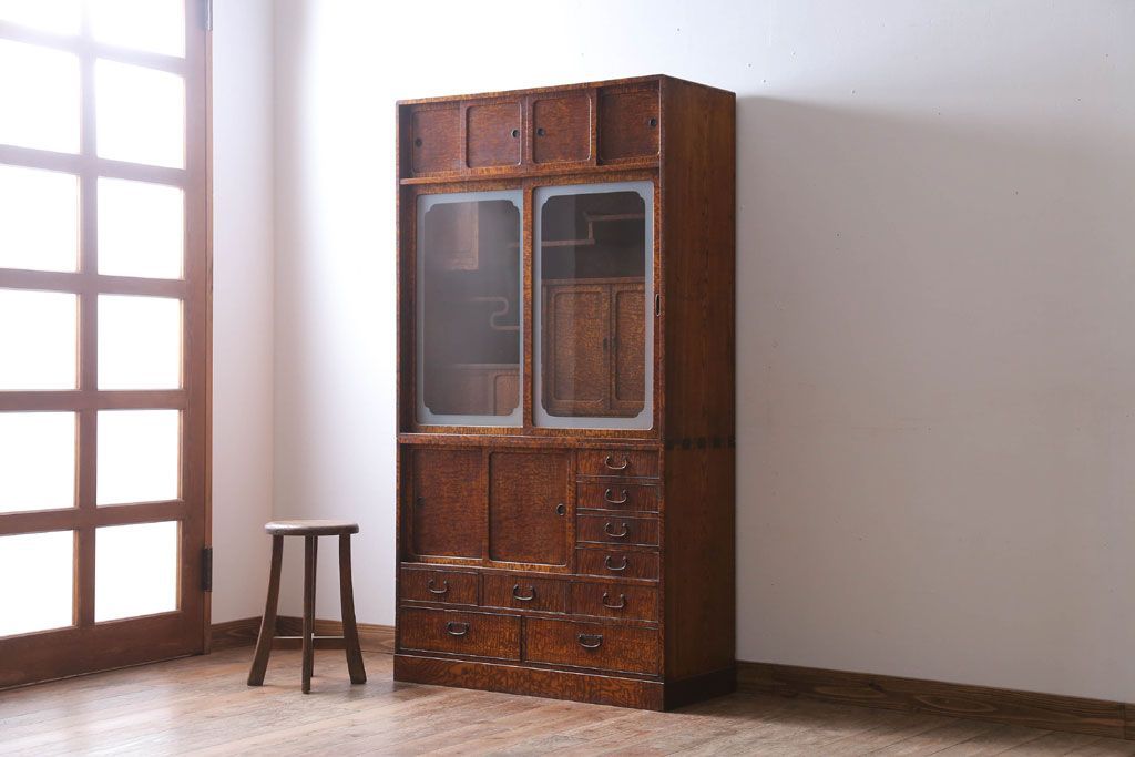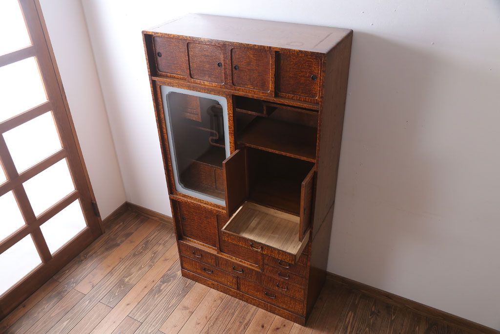 アンティーク家具 古民具・骨董 タモ玉杢材!上質なアンティーク茶箪笥