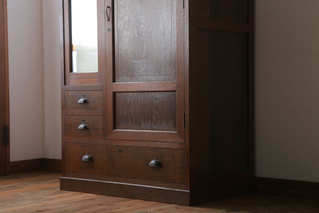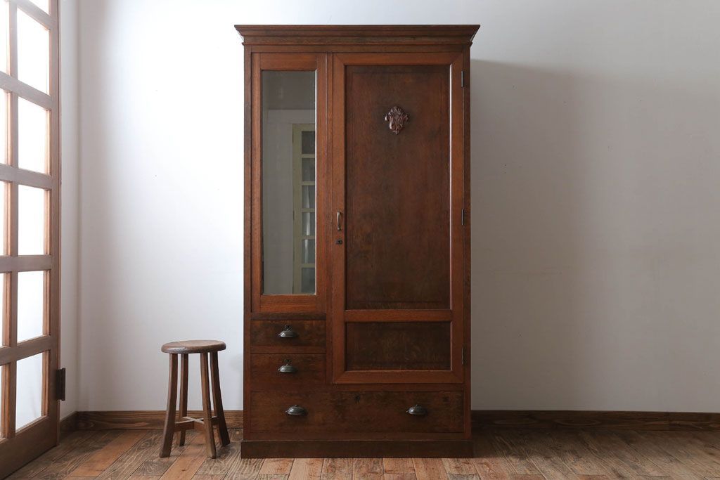 アンティーク家具 大正ロマン 古いナラ材の上質なアンティークワードローブ