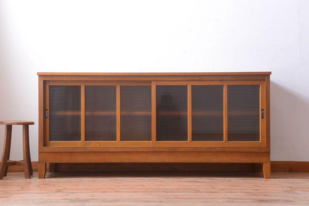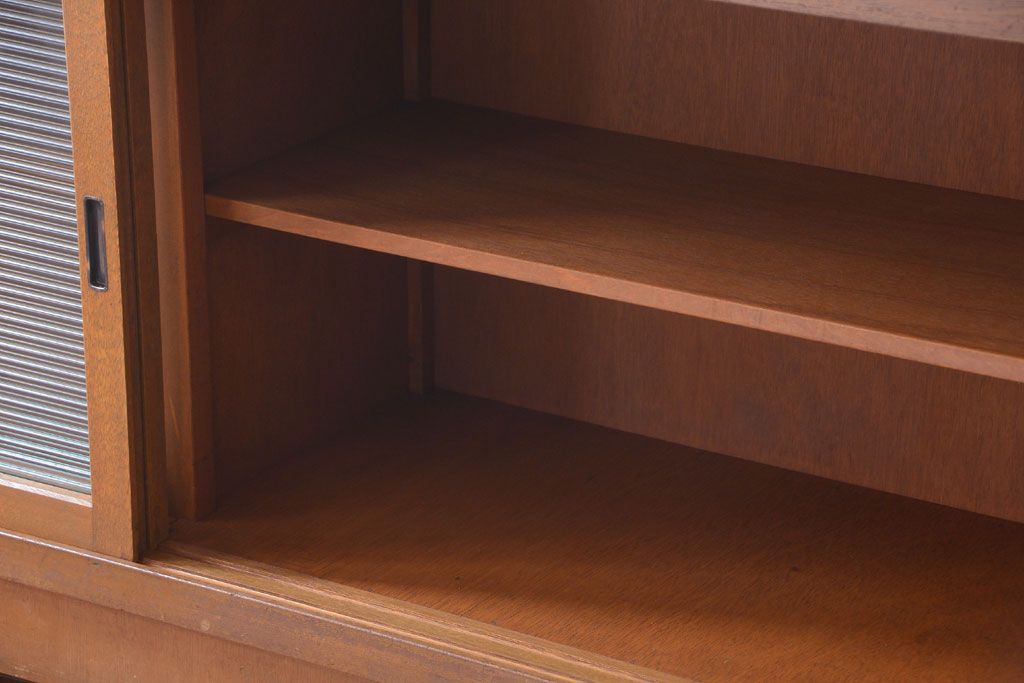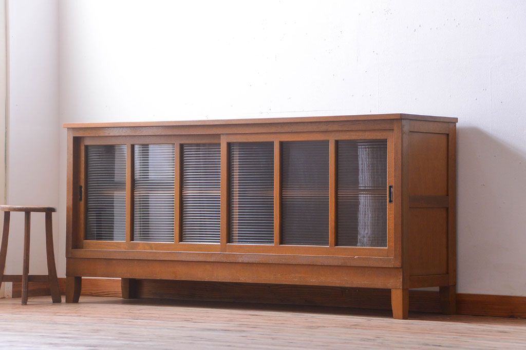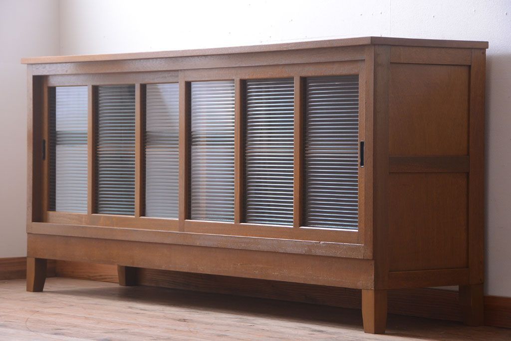 アンティーク家具 アンティーク モールガラス入り!古い木の脚付きサイドボード(2)