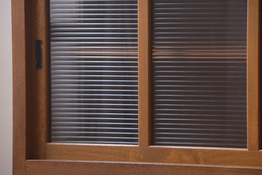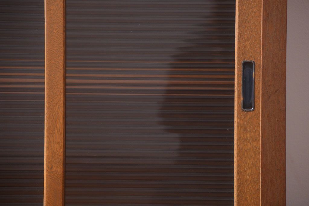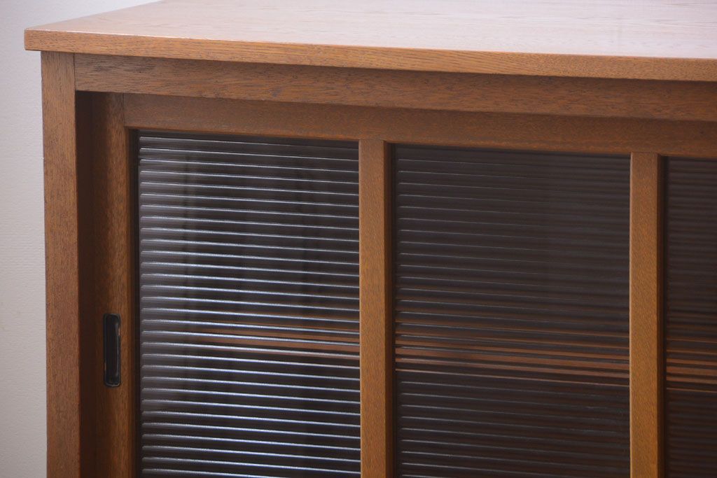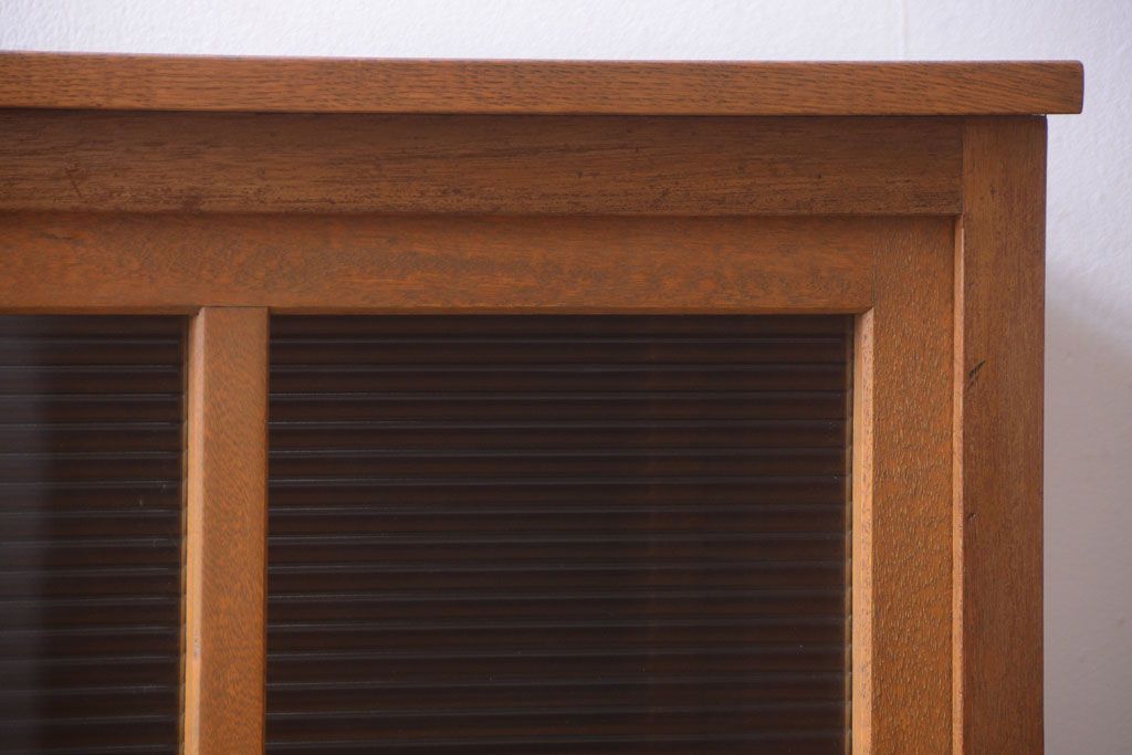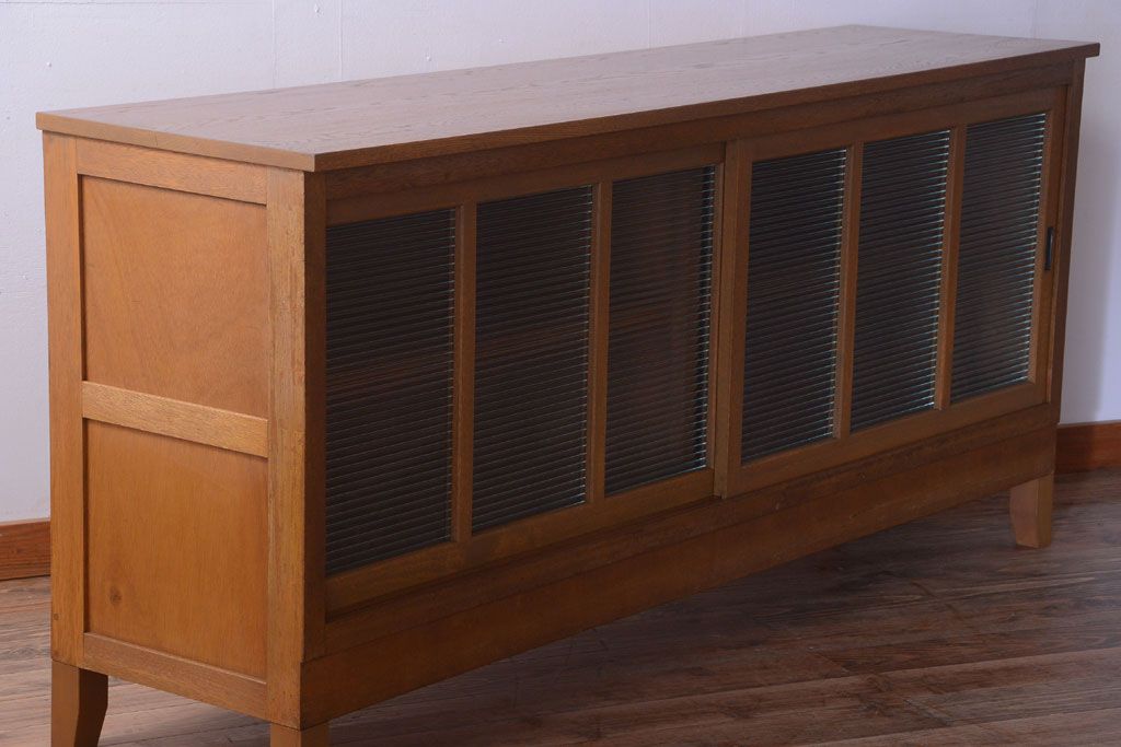 アンティーク家具 アンティーク モールガラス入り!古い木の脚付きサイドボード(2)
