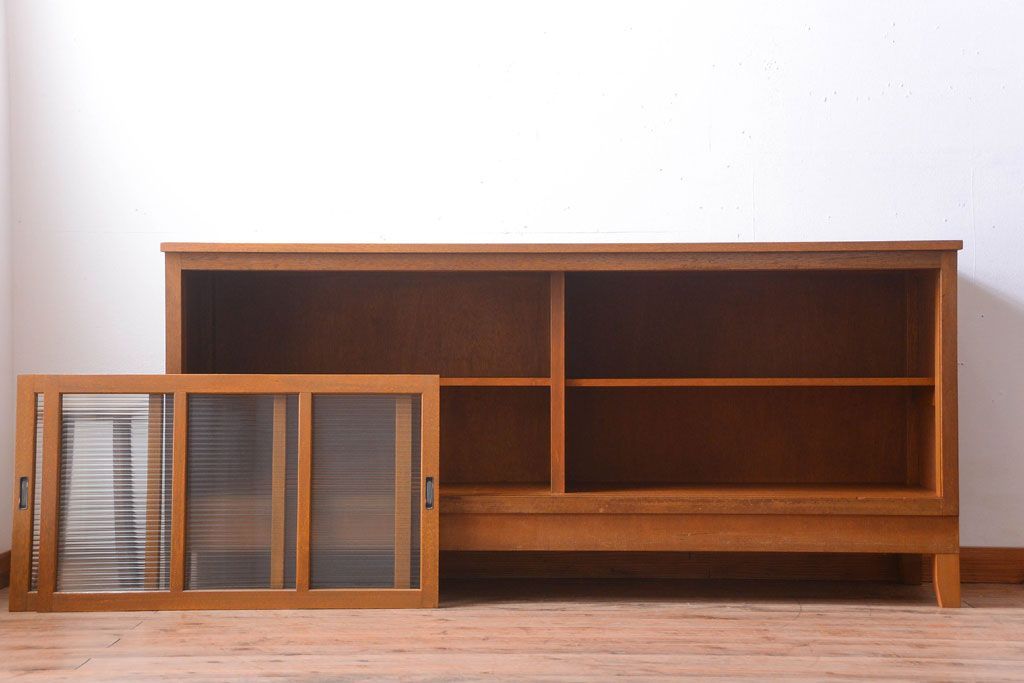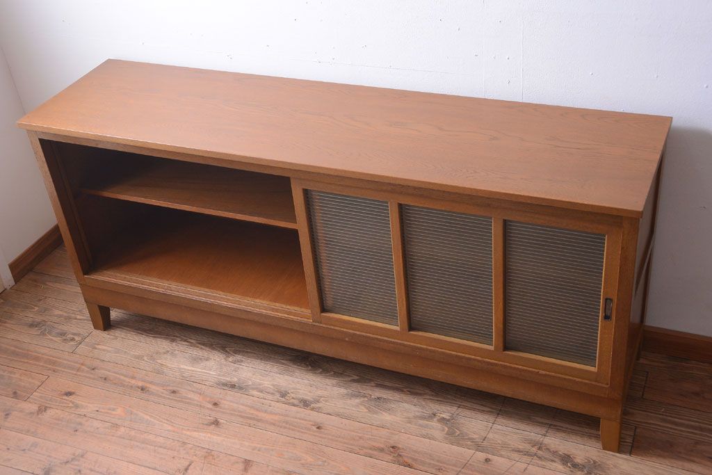 アンティーク モールガラス入り!古い木の脚付きサイドボード(2)です。