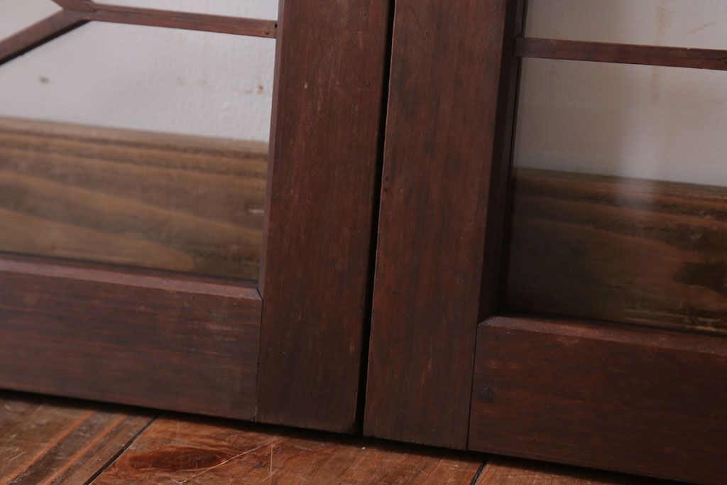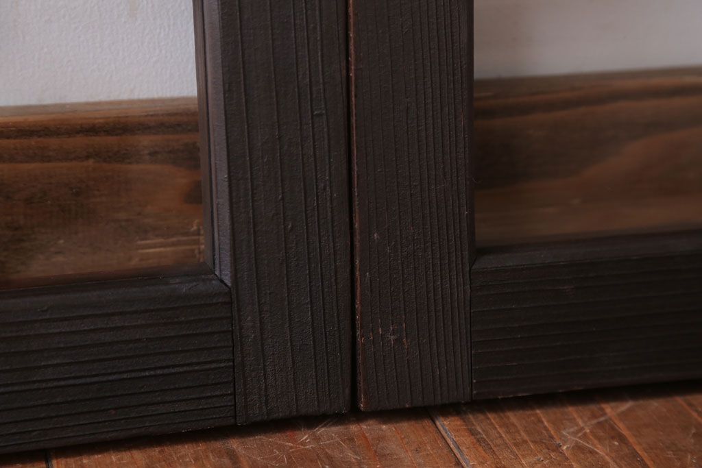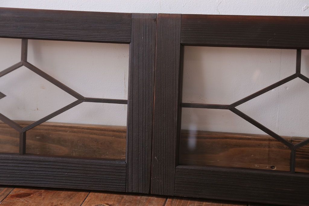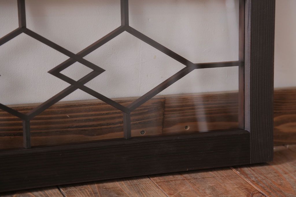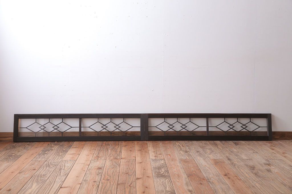 ----※ご注意ください※-------------------------------------- こちらの商品は、玄関先でのお渡しとなります。 また、お届けの際のお日にち指定・お時間指定・代金引換(コレクト)にも対応しておりません。 予めご了承ください。 ----------------------------------------------------------- アンティーク モダンな古い木製明り取り(欄間)です。 モダンなデザインがおしゃれな、 和製アンティークの明り取りです。 大正ロマンスタイルのインテリアにおすすめの、 雰囲気あふれる一品です。 背面にクリアガラスを使用したお品です。 左側のみ計測致しましたので、そちらをご参考ください。 使用上問題のあるダメージはありません。 ■重量 約3kg ■框サイズ 上40mm/左40mm/右40mm/下40mm