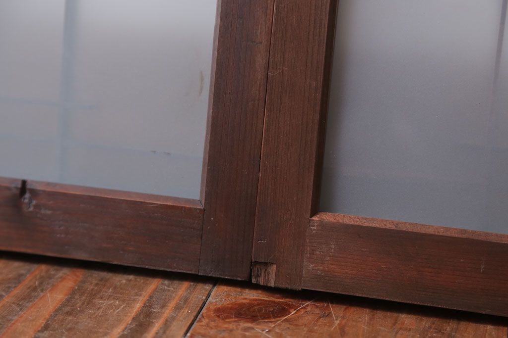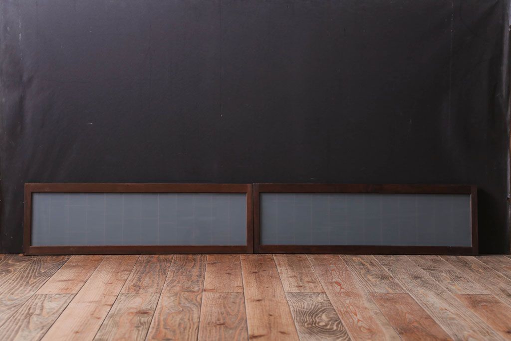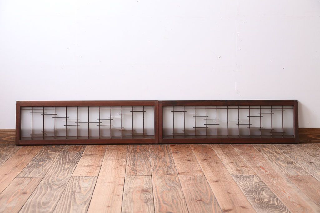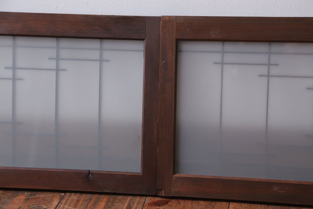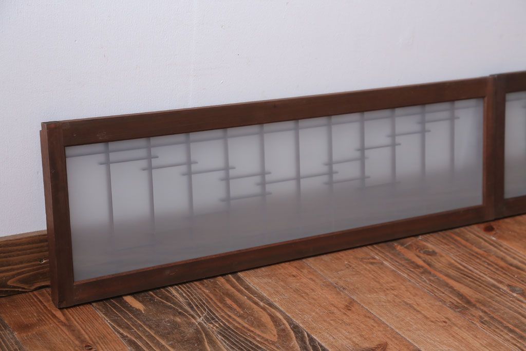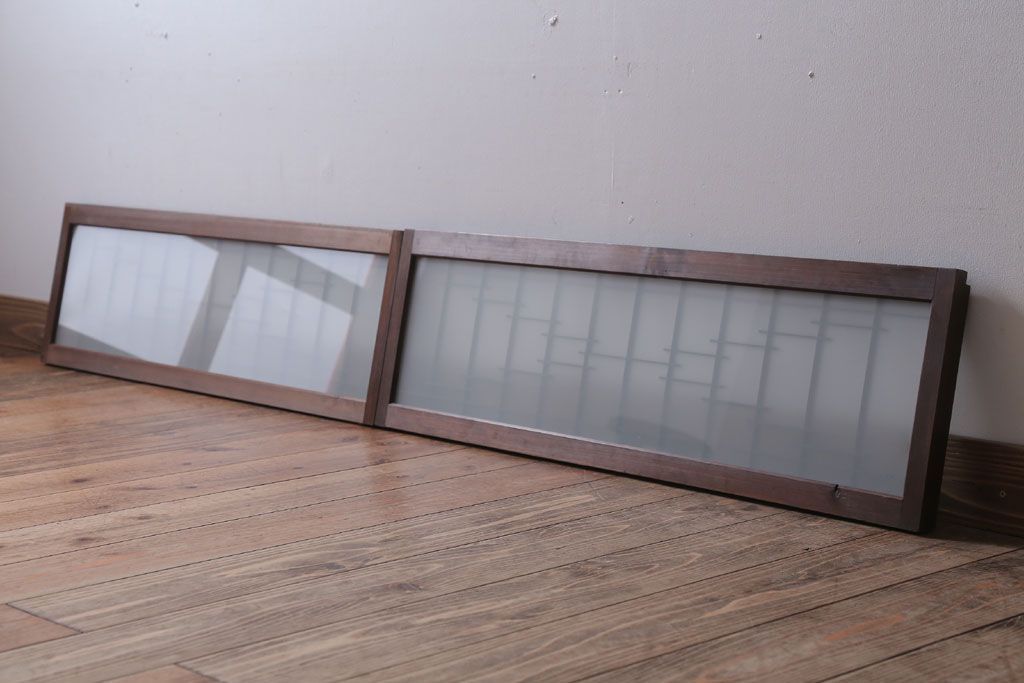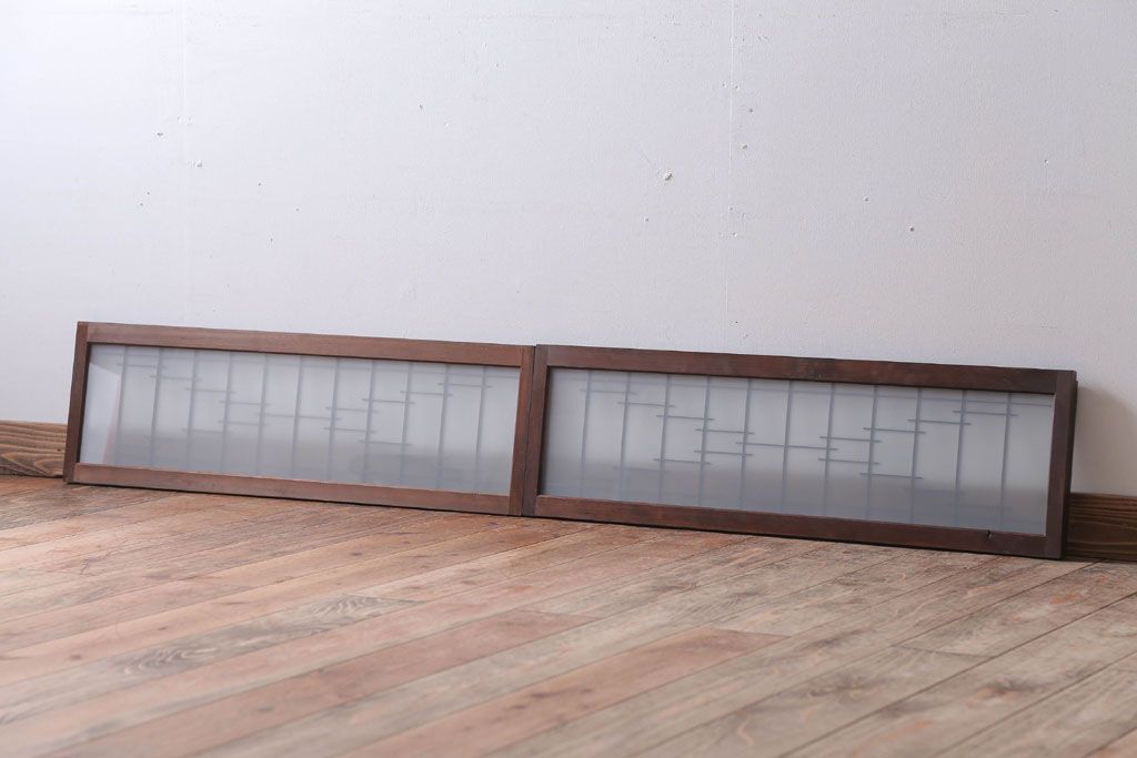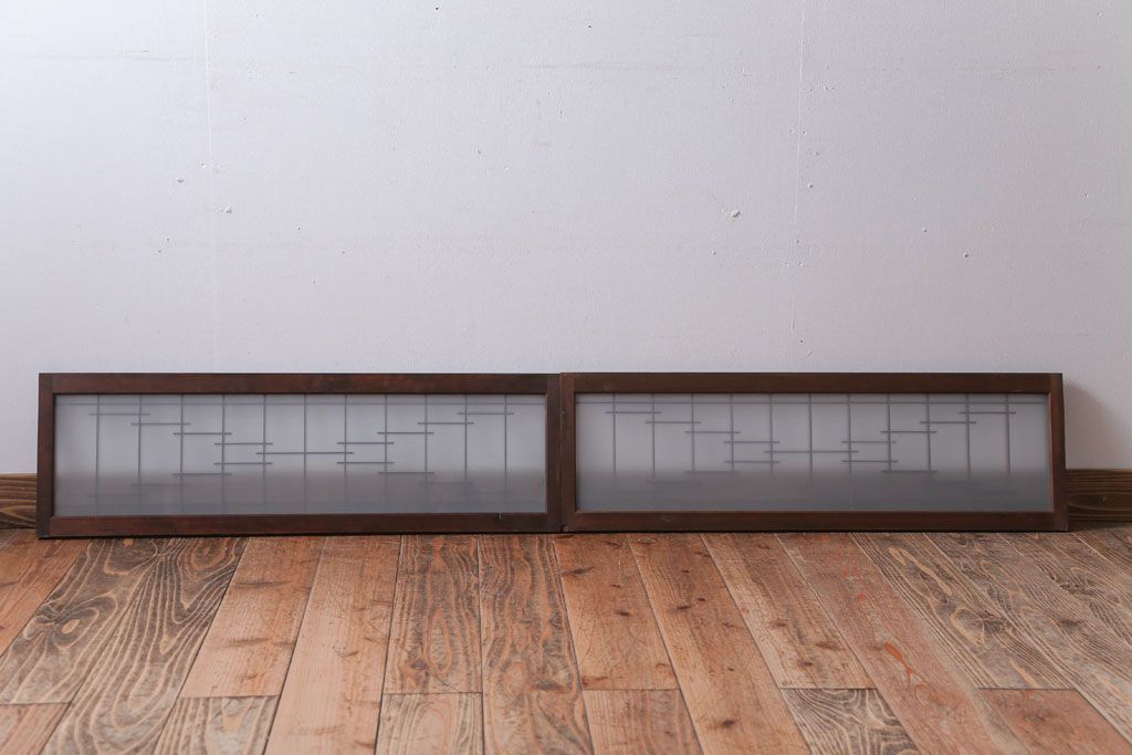 古民具・骨董 古い木製のモダンなすりガラス欄間2枚セット(明り取り、明かり取り)