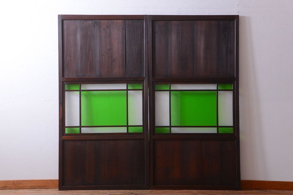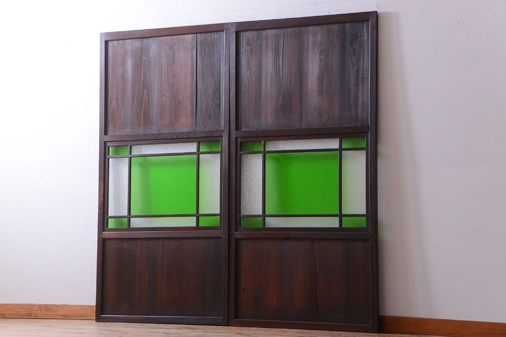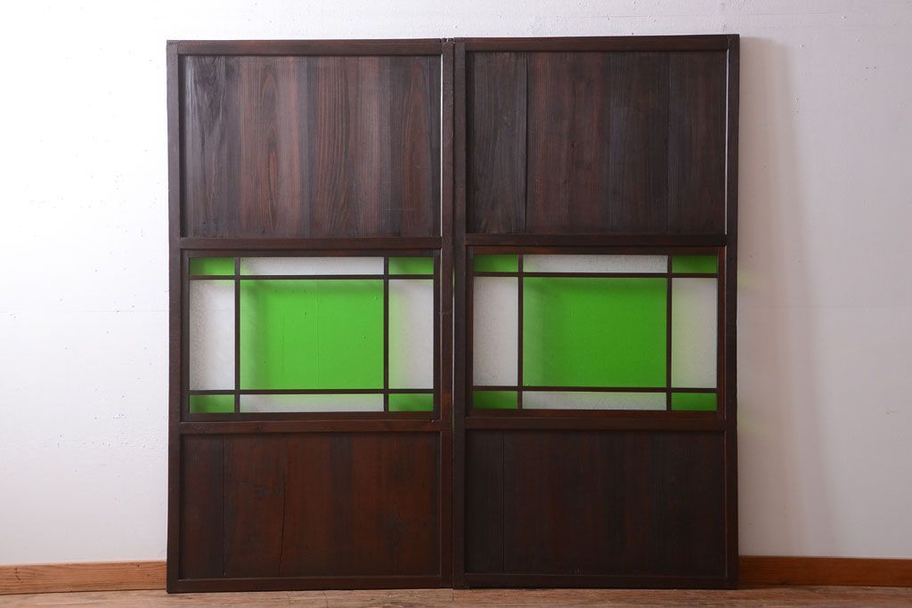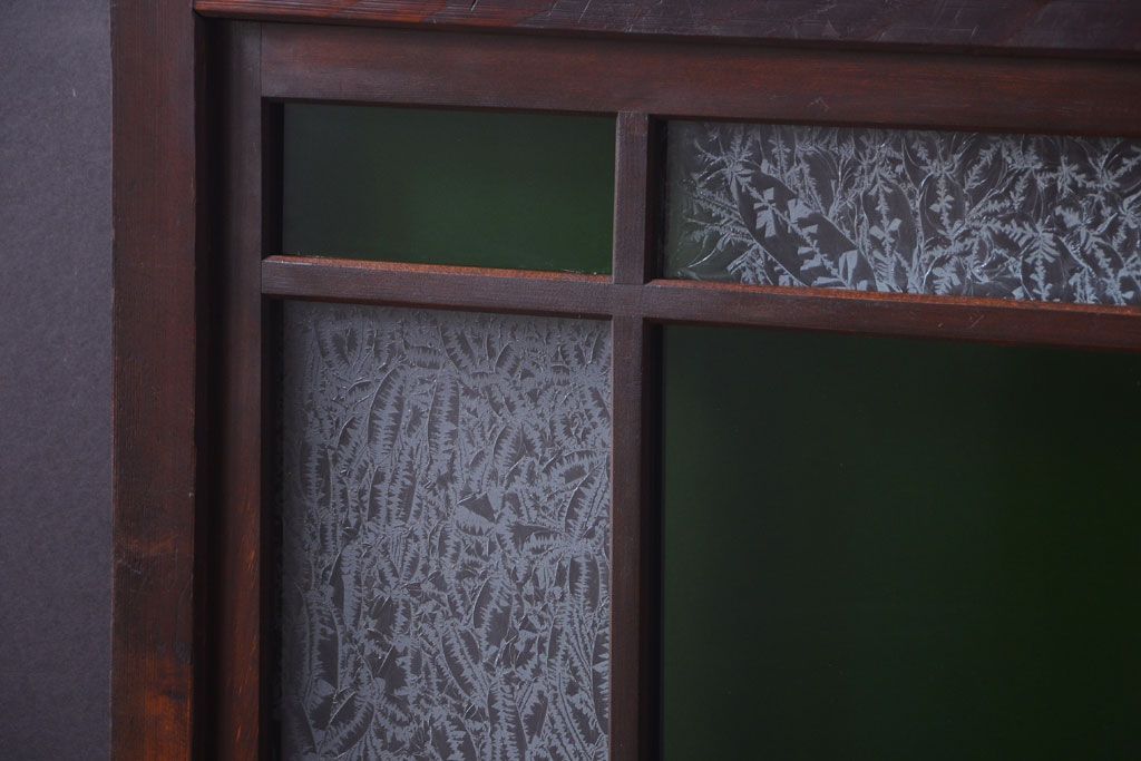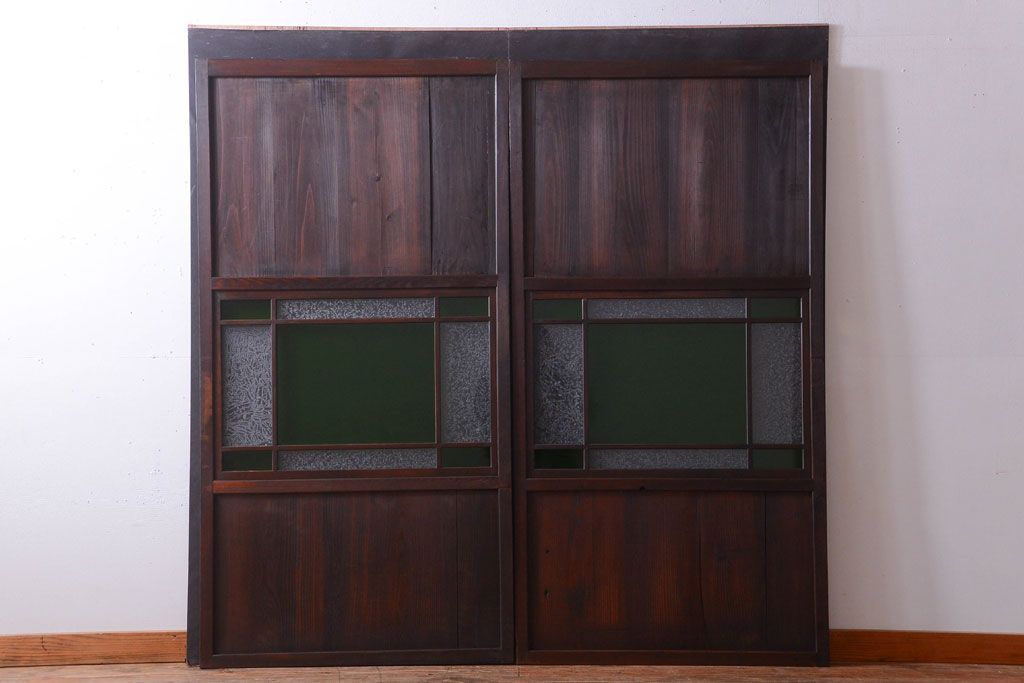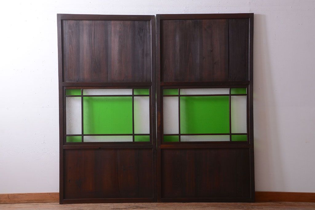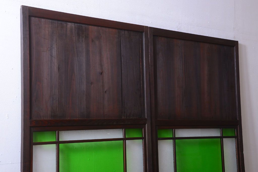 アンティーク 色ガラス入り!モダンなガラス帯戸2枚セット