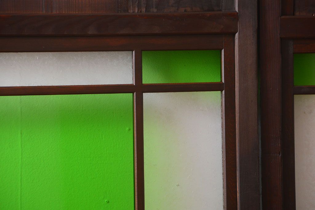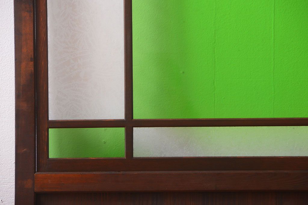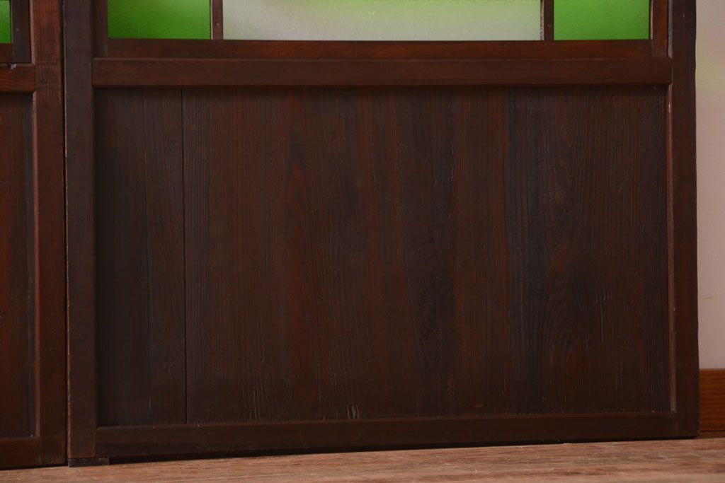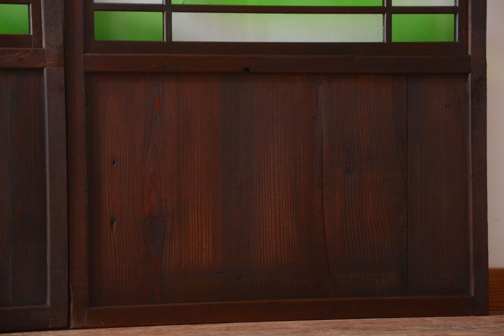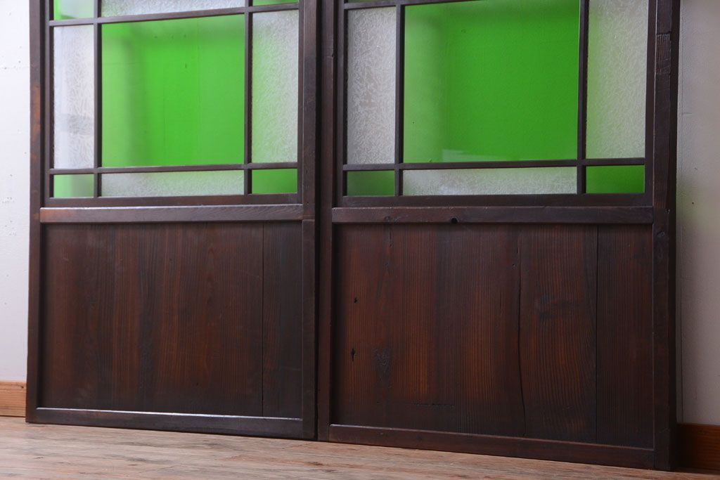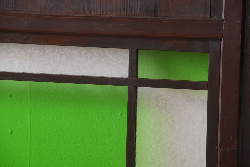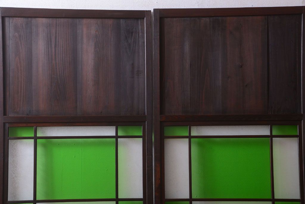 ラフジュ工房> ドア・建具> 板戸・帯戸 > アンティーク 色ガラス入り!モダンなガラス帯戸2枚セット