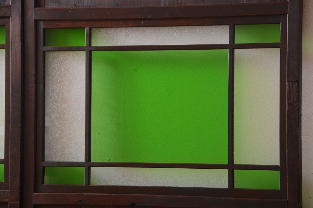 ラフジュ工房> 衝立・パーテーション > アンティーク 色ガラス入り!モダンなガラス帯戸2枚セット