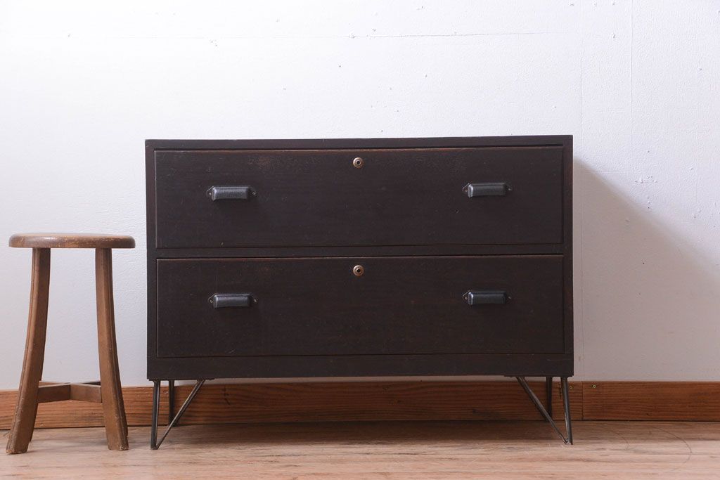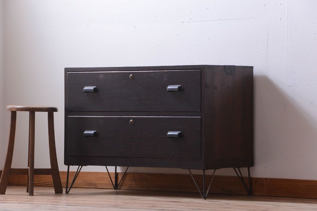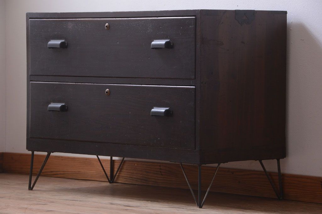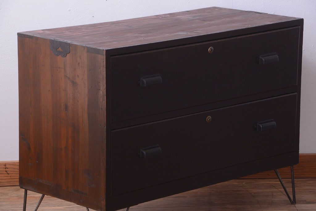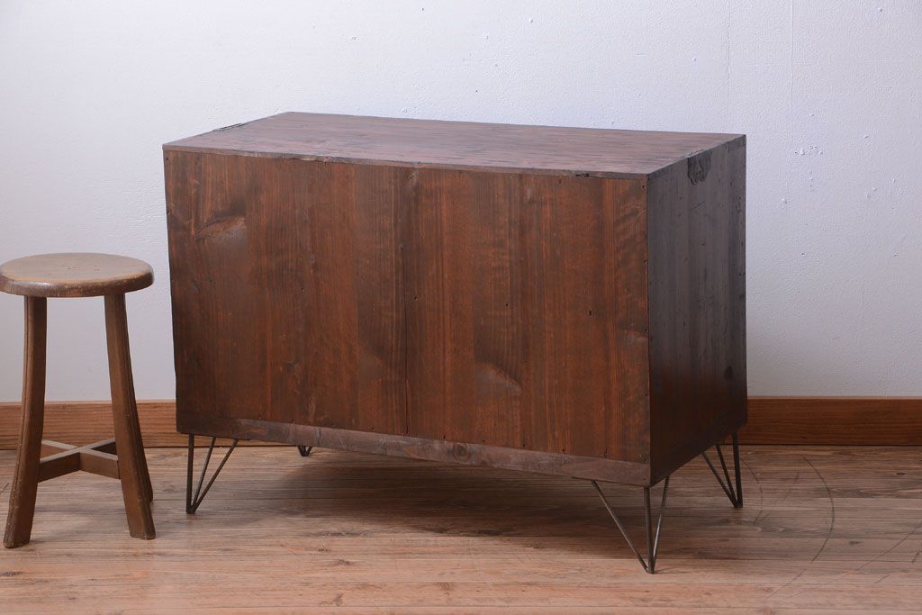 ラフジュ工房> 和箪笥 > アンティーク家具 和製アンティーク 前面栗材の鉄脚付き時代箪笥ローボード(1)