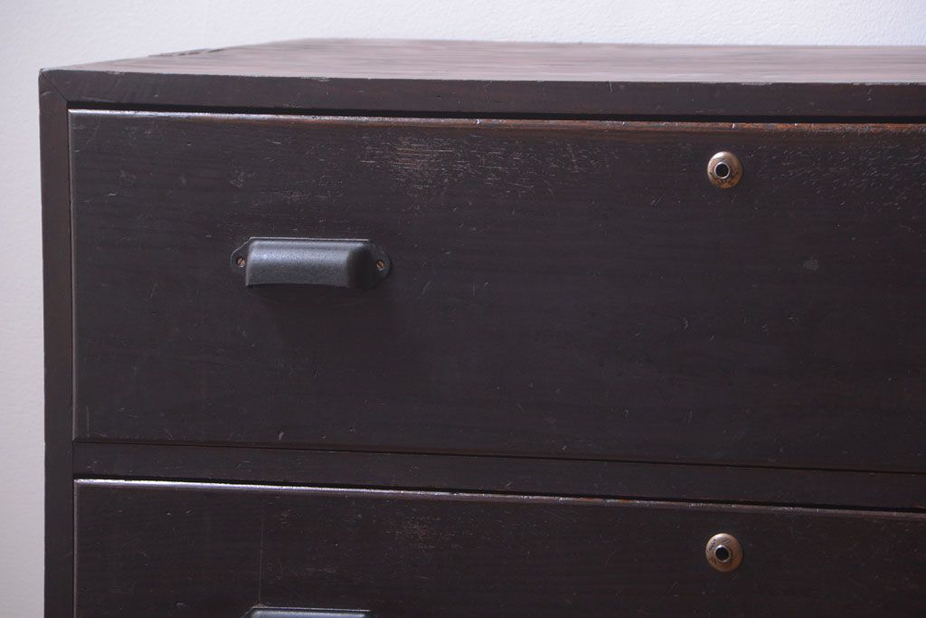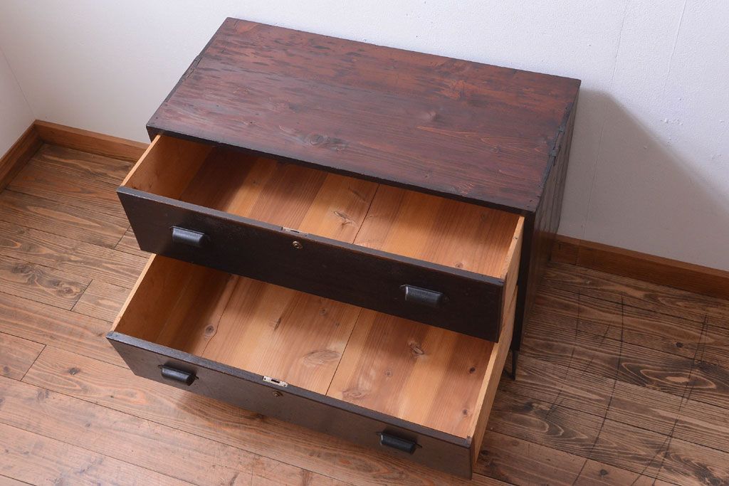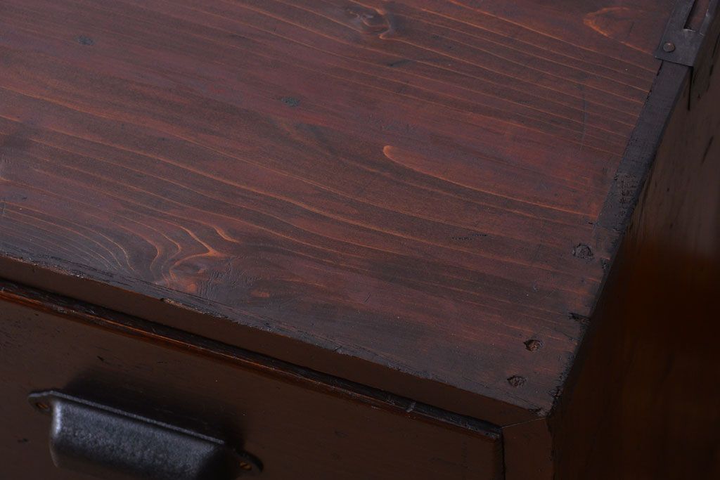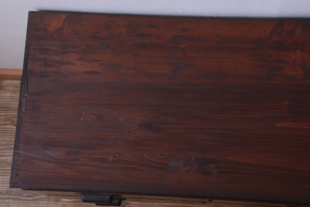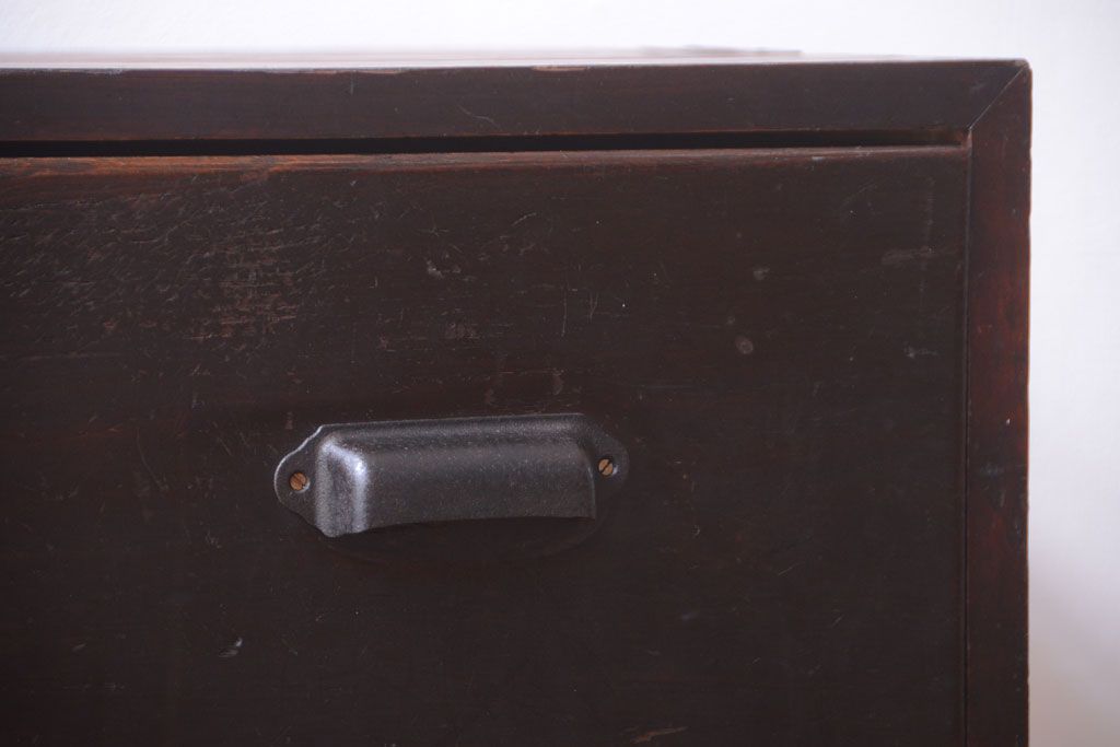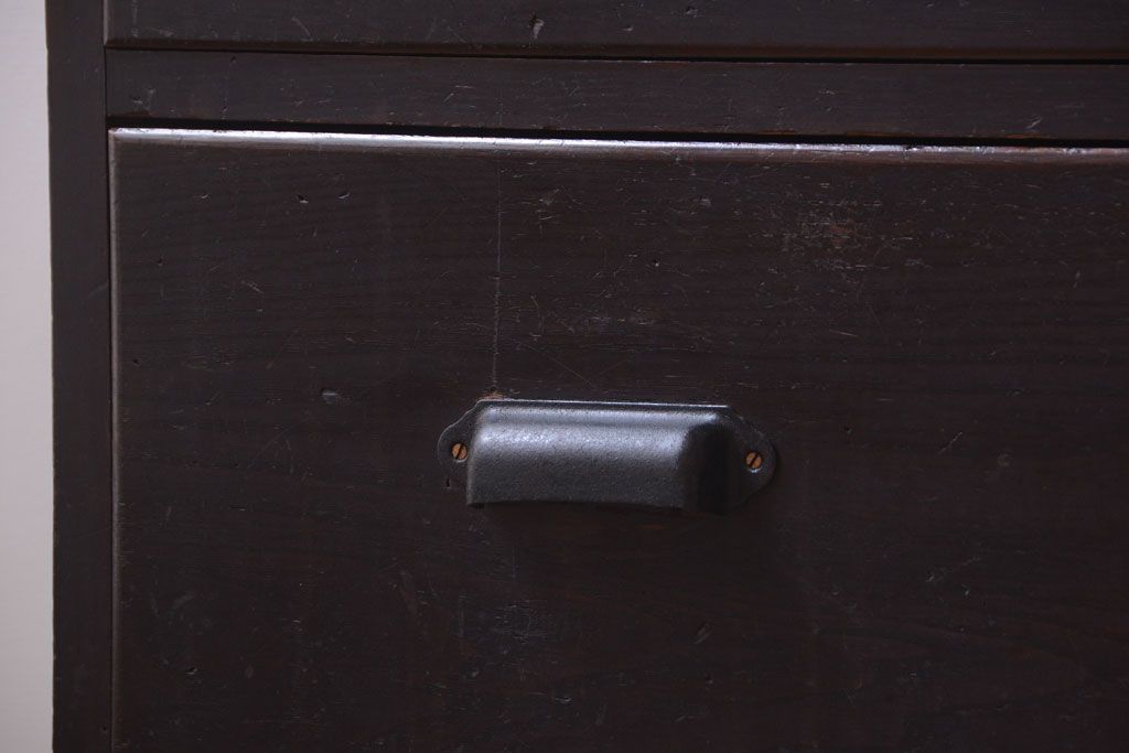 ラフジュ工房> 和箪笥 > アンティーク家具 和製アンティーク 前面栗材の鉄脚付き時代箪笥ローボード(1)