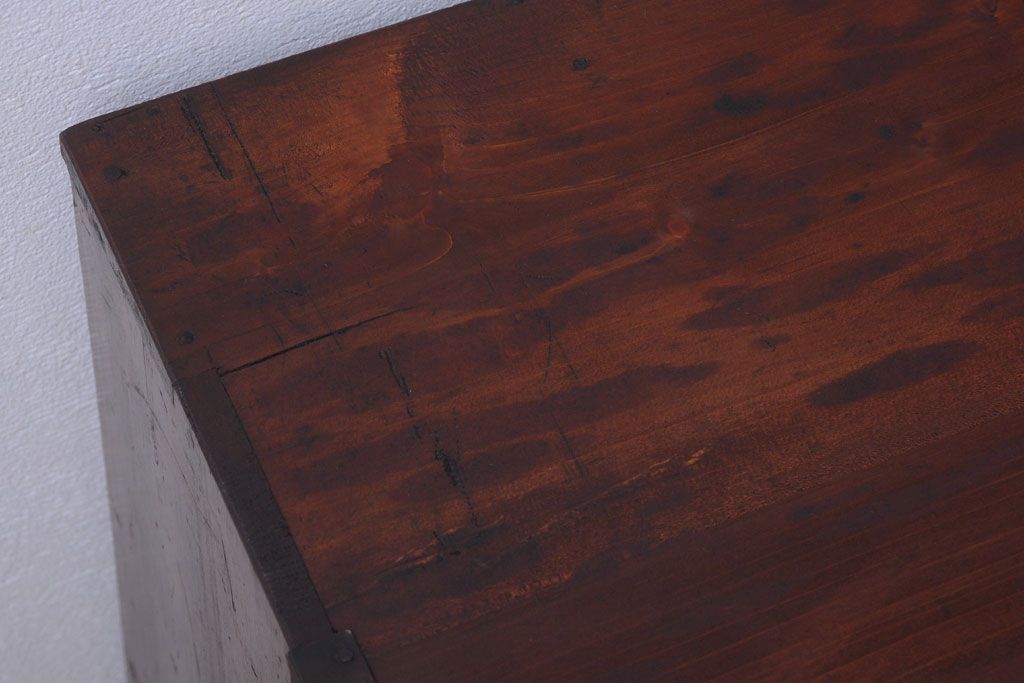 アンティーク家具 和製アンティーク 前面栗材の鉄脚付き時代箪笥ローボード(1)