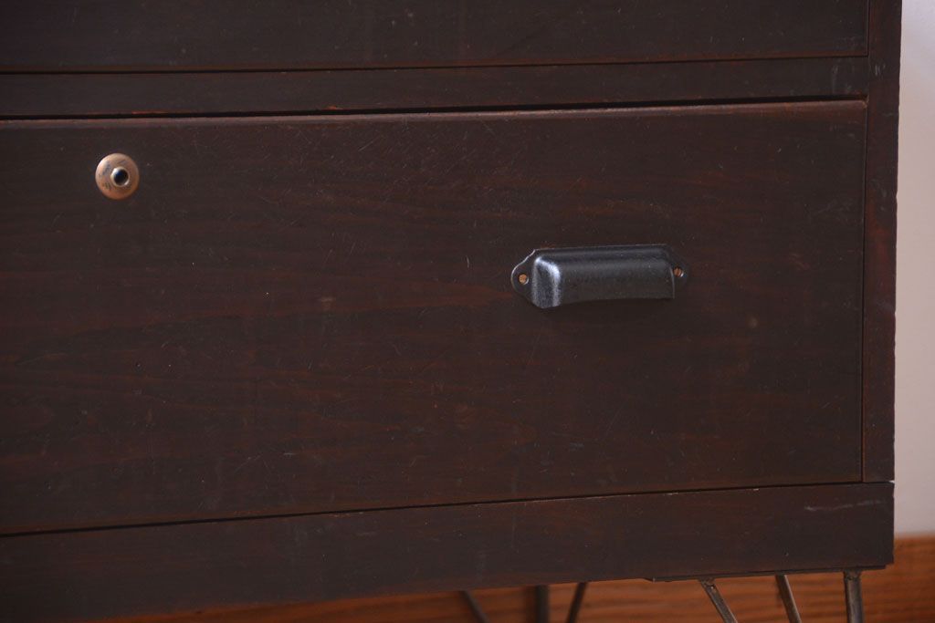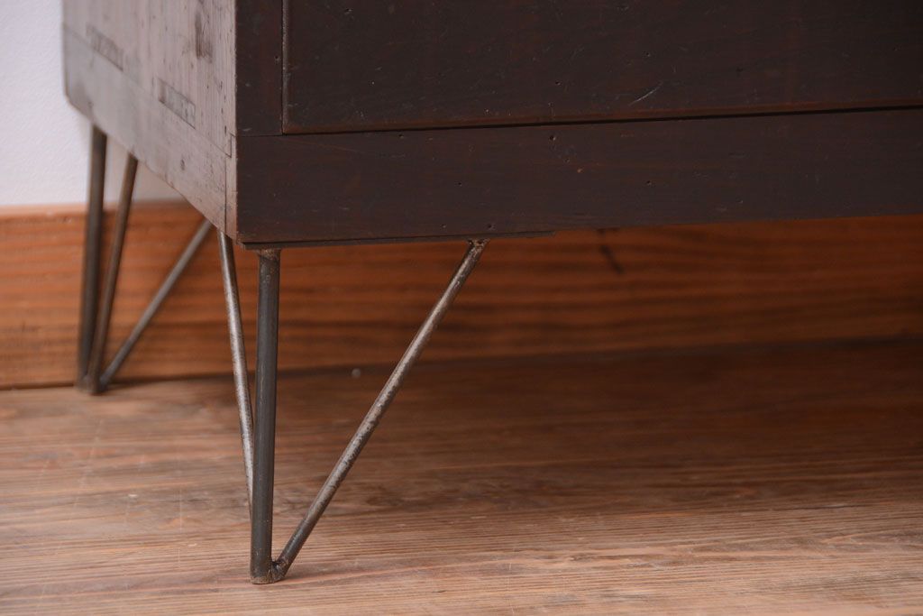 ラフジュ工房> キャビネット・戸棚> サイドボード > アンティーク家具 和製アンティーク 前面栗材の鉄脚付き時代箪笥ローボード(1)