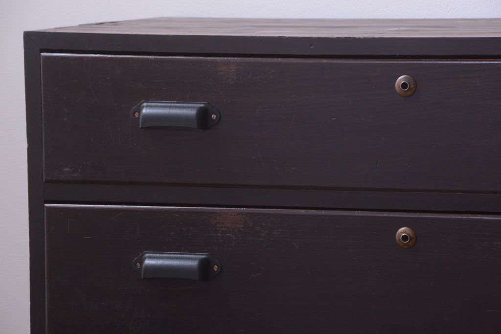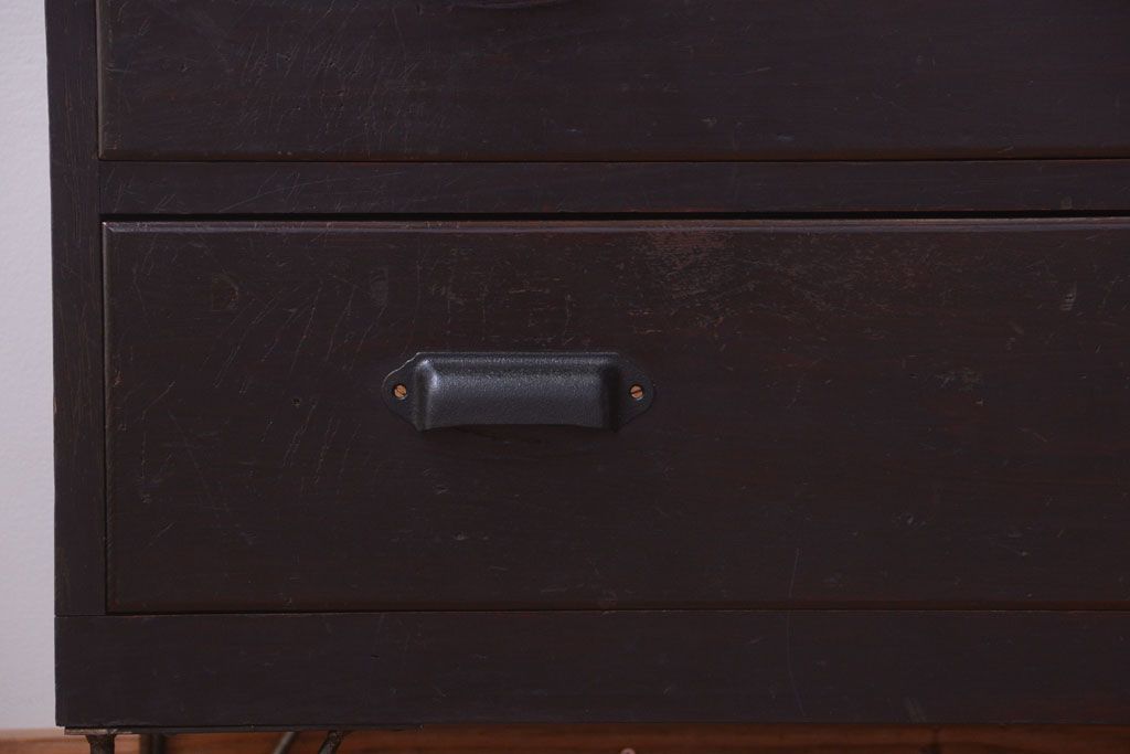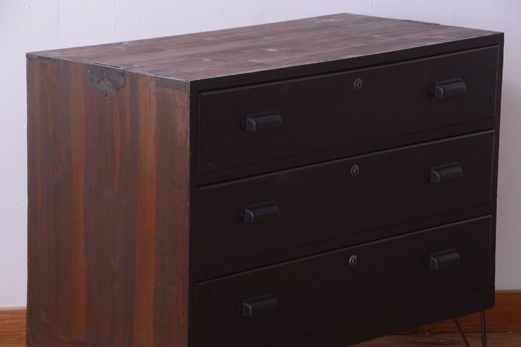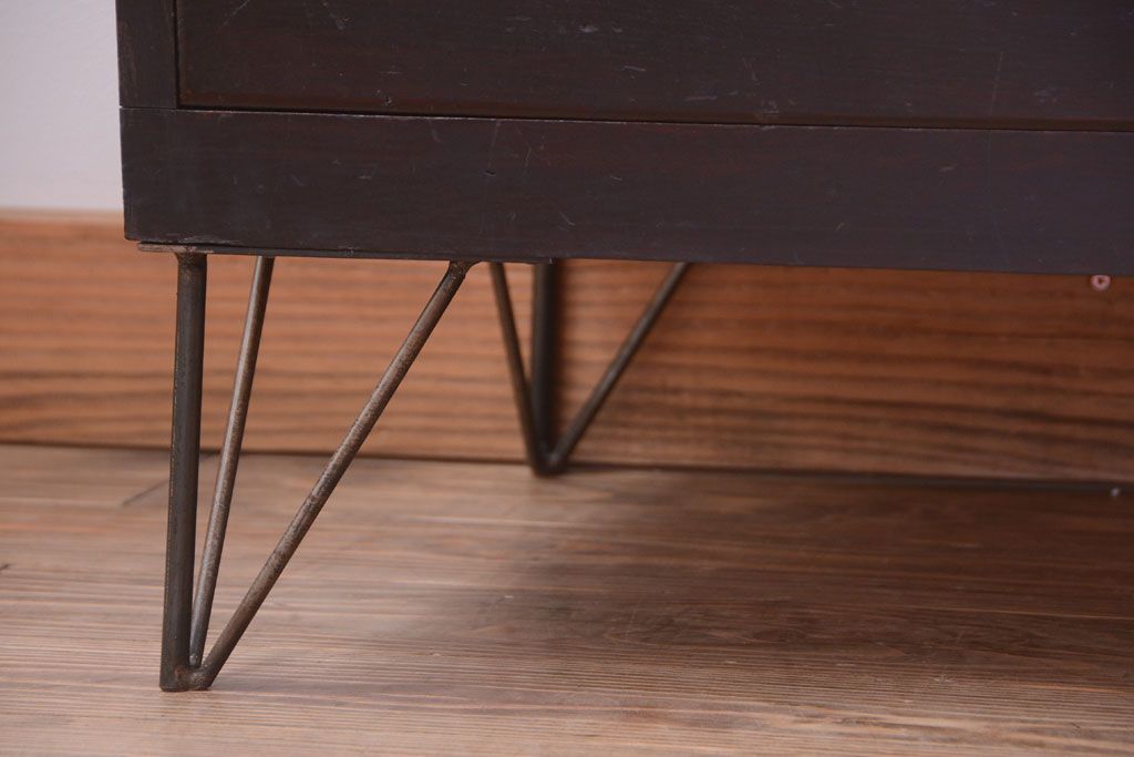 ラフジュ工房> 和箪笥 > アンティーク家具 和製アンティーク 前面栗材の鉄脚付き時代箪笥ローボード(2)