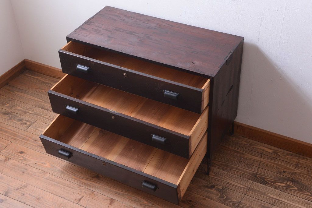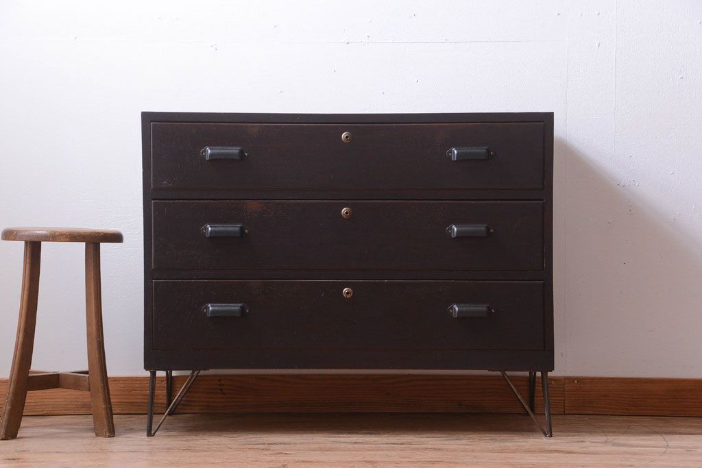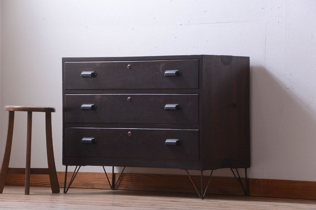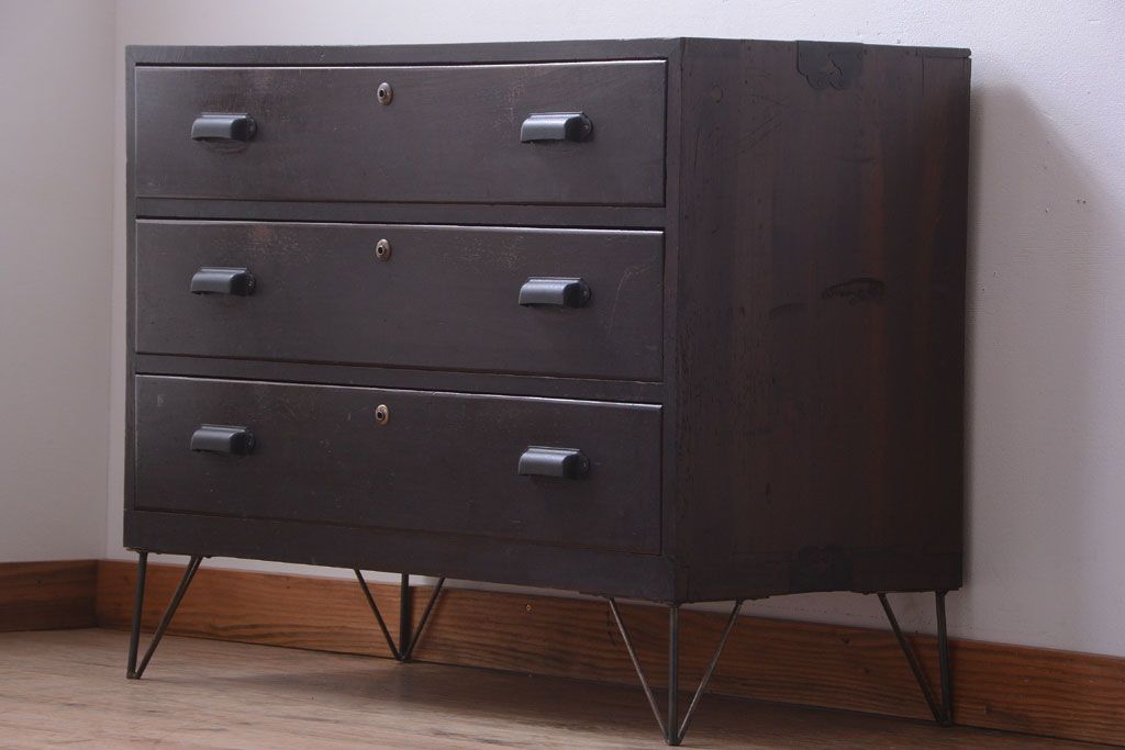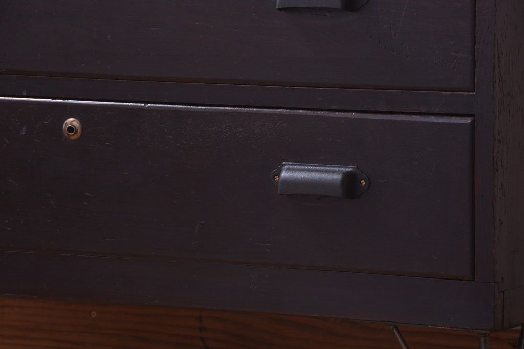 ラフジュ工房> 和箪笥 > アンティーク家具 和製アンティーク 前面栗材の鉄脚付き時代箪笥ローボード(2)