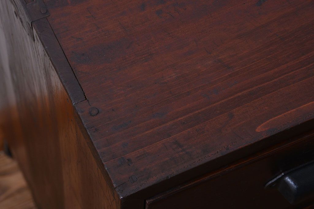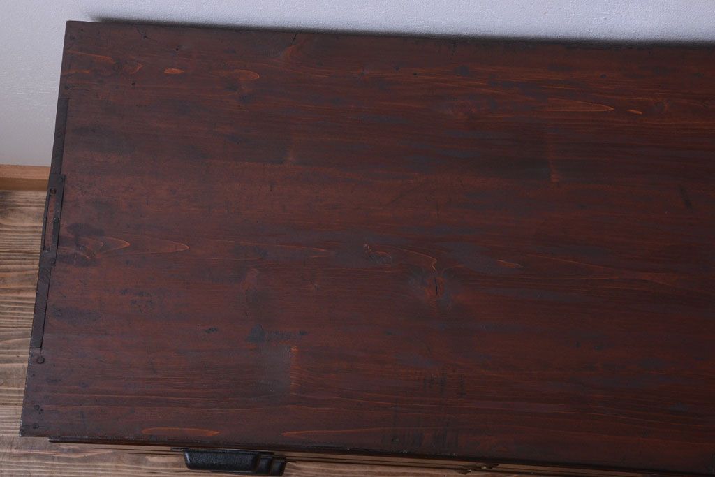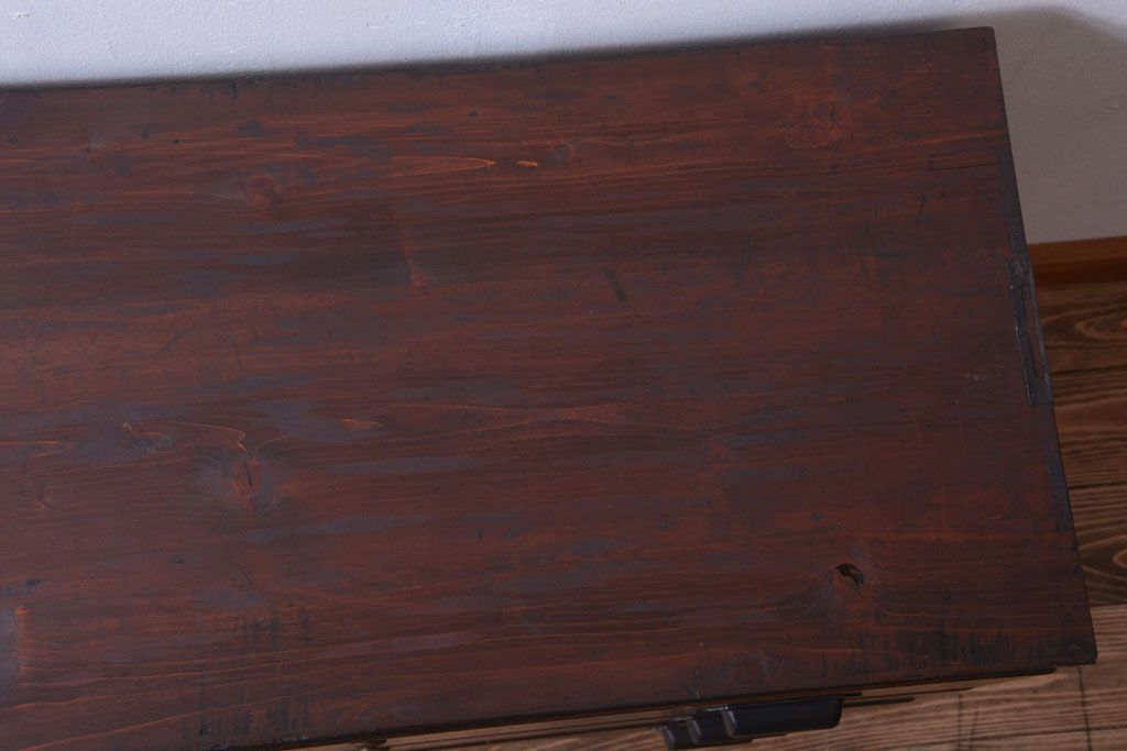 アンティーク家具 和製アンティーク 前面栗材の鉄脚付き時代箪笥ローボード(2)