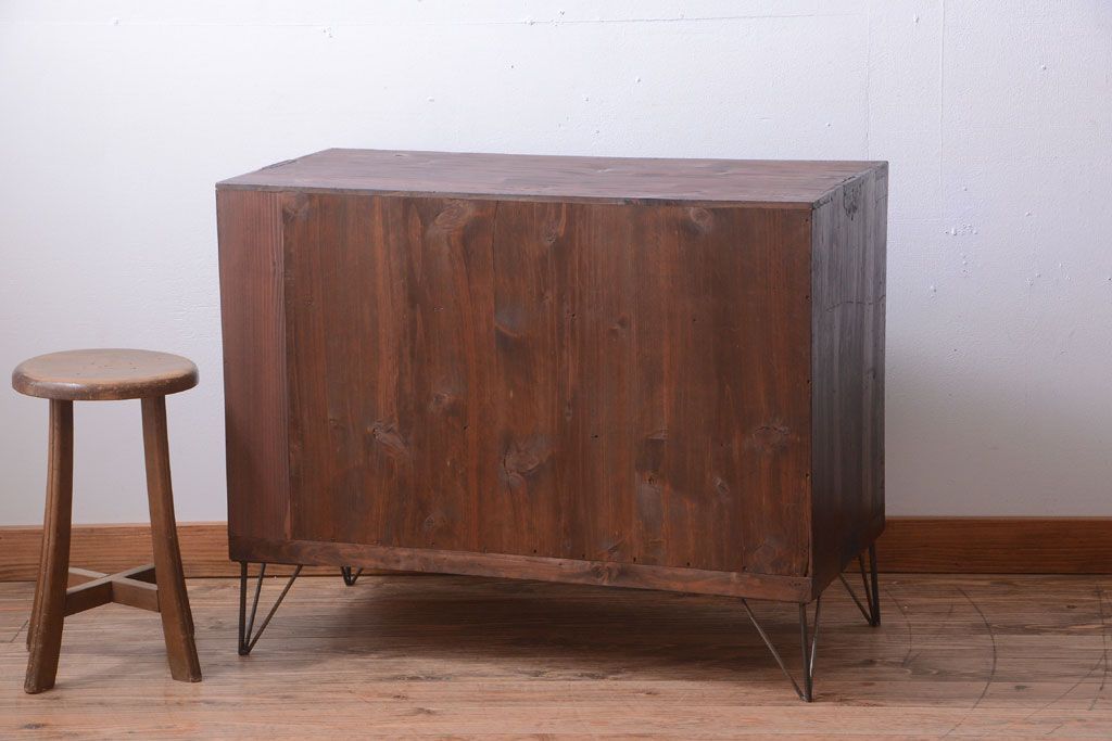 ラフジュ工房> キャビネット・戸棚> テレビ台・ローボード > アンティーク家具 和製アンティーク 前面栗材の鉄脚付き時代箪笥ローボード(2)