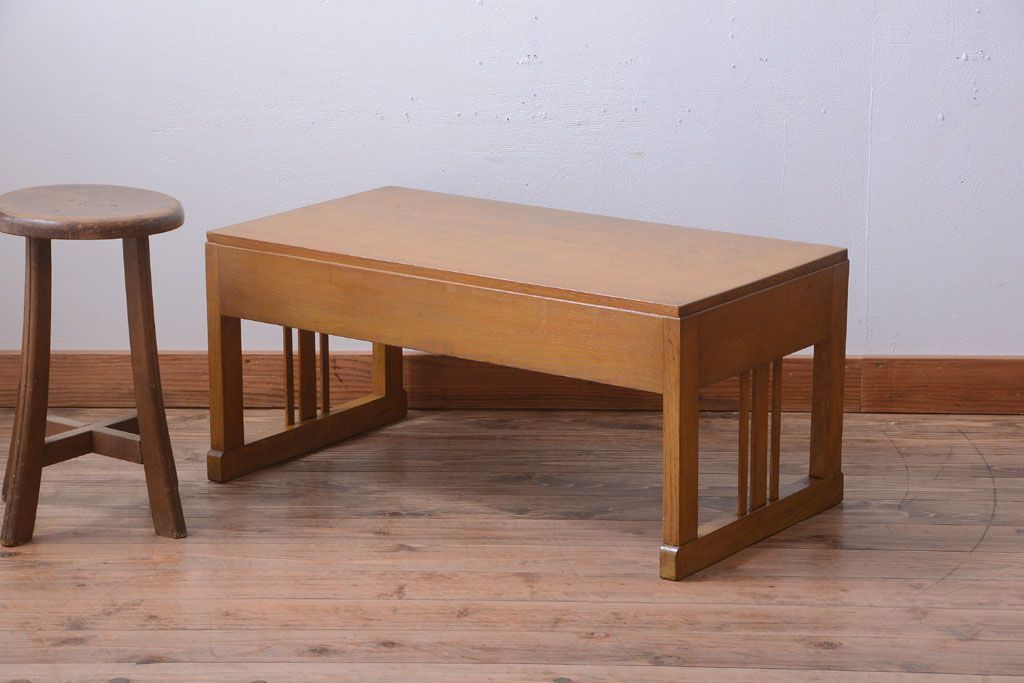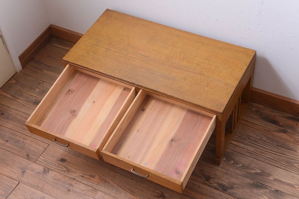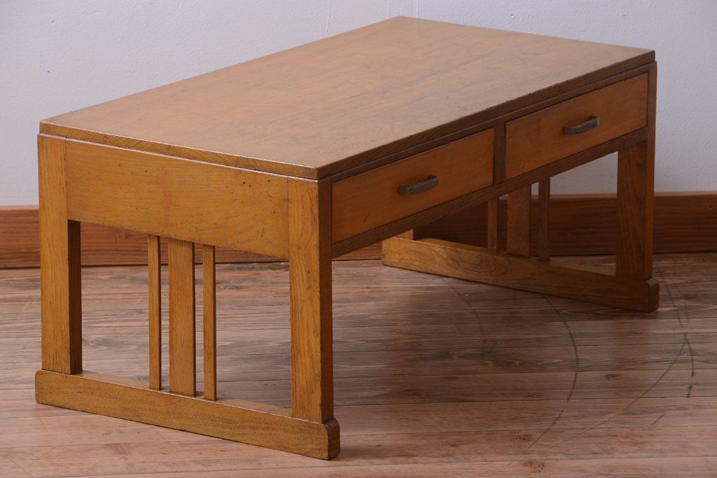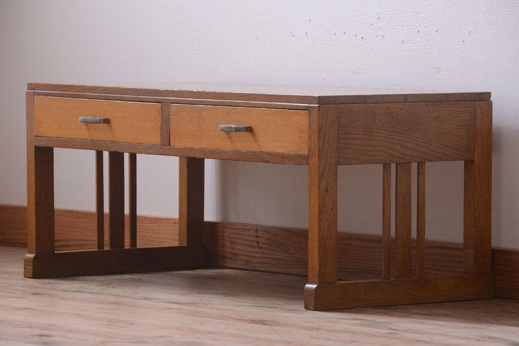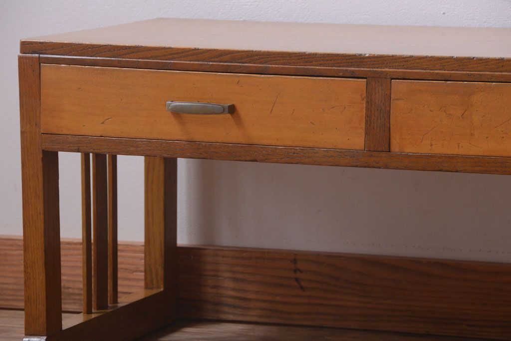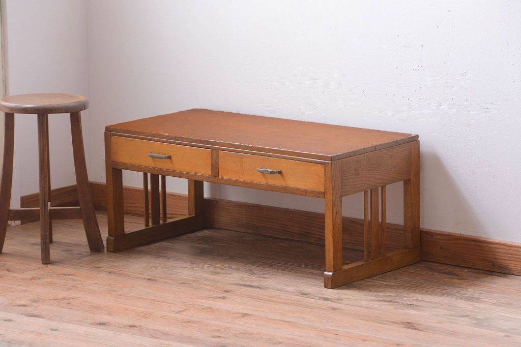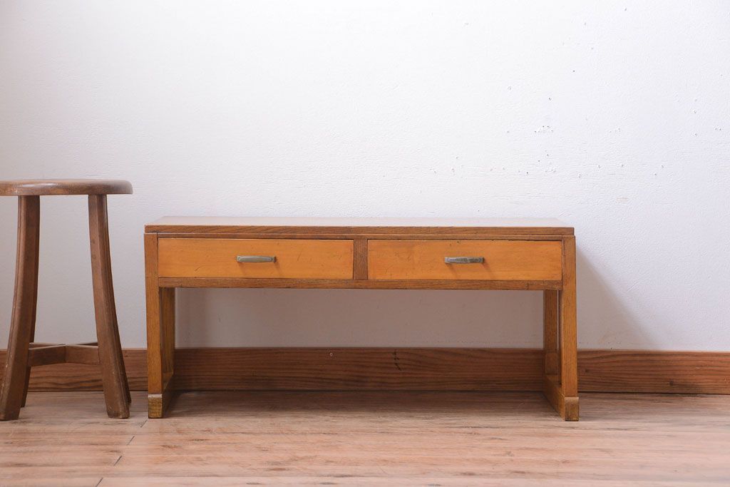 レトロ家具 和製アンティーク 引き出し2杯付きのレトロな文机