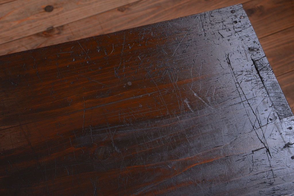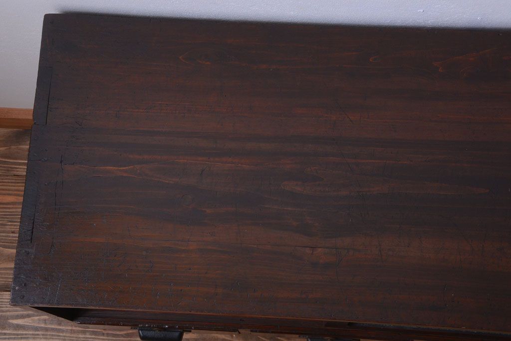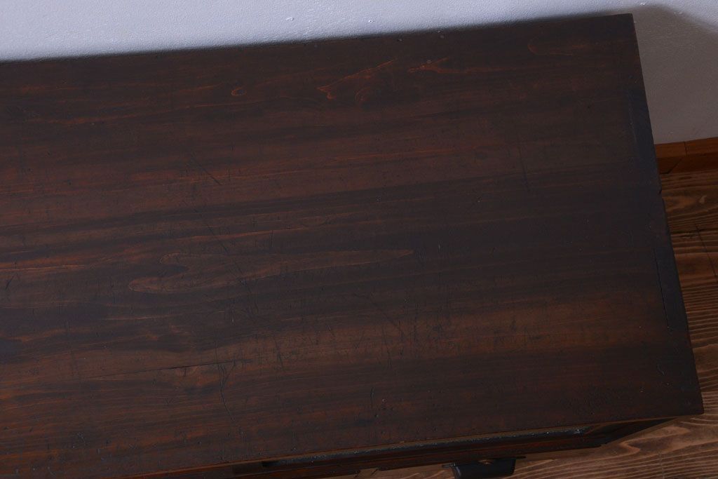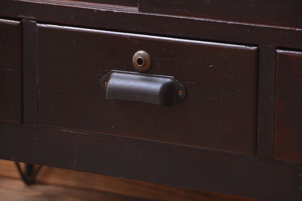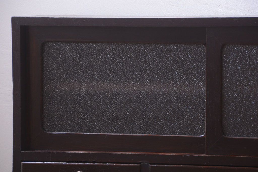 アンティーク家具 アンティーク 前面栗材のダイヤガラス引き戸鉄脚ローボード